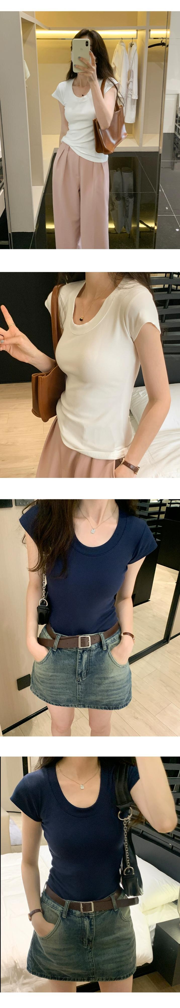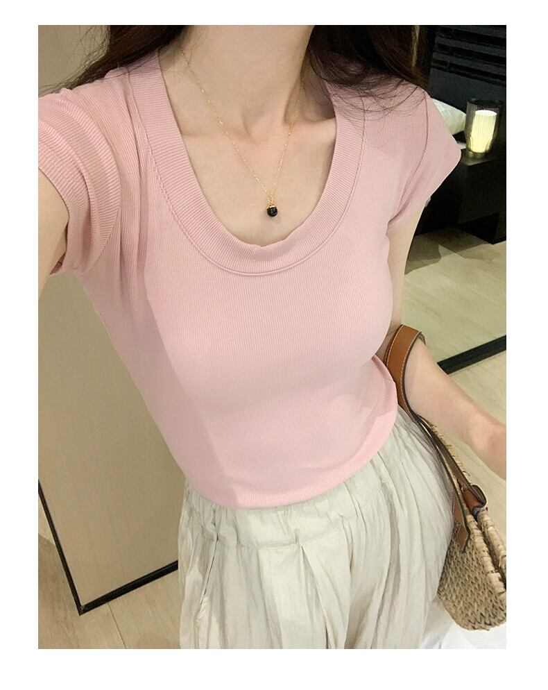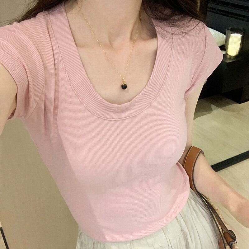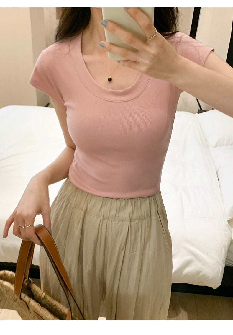 アプリコットスレッド右肩半袖 Tシャツ女性 2024 新しい夏の痩身ファッショナブルなラウンドネックショートトップ サマー 夏物 Oネック 7460095638848294 | framboise21