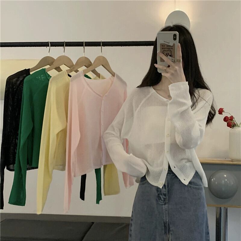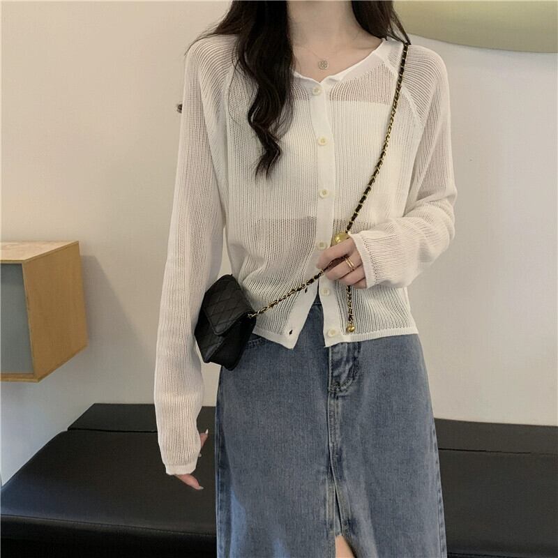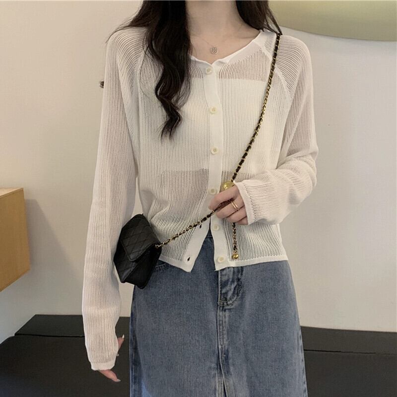白いアイスシルクニット日焼け止めカーディガン女性夏の薄いルーズサスペンダートップハーフショールブラウス小さなジャケット ホワイト サマー 夏物 746007115328176 | framboise21