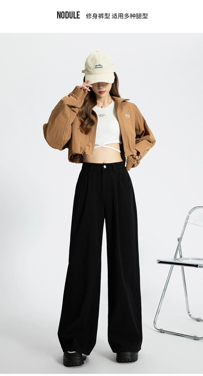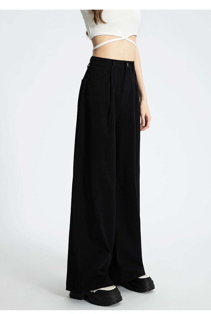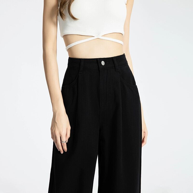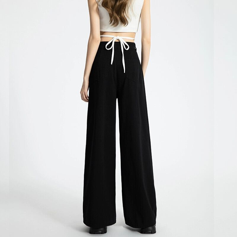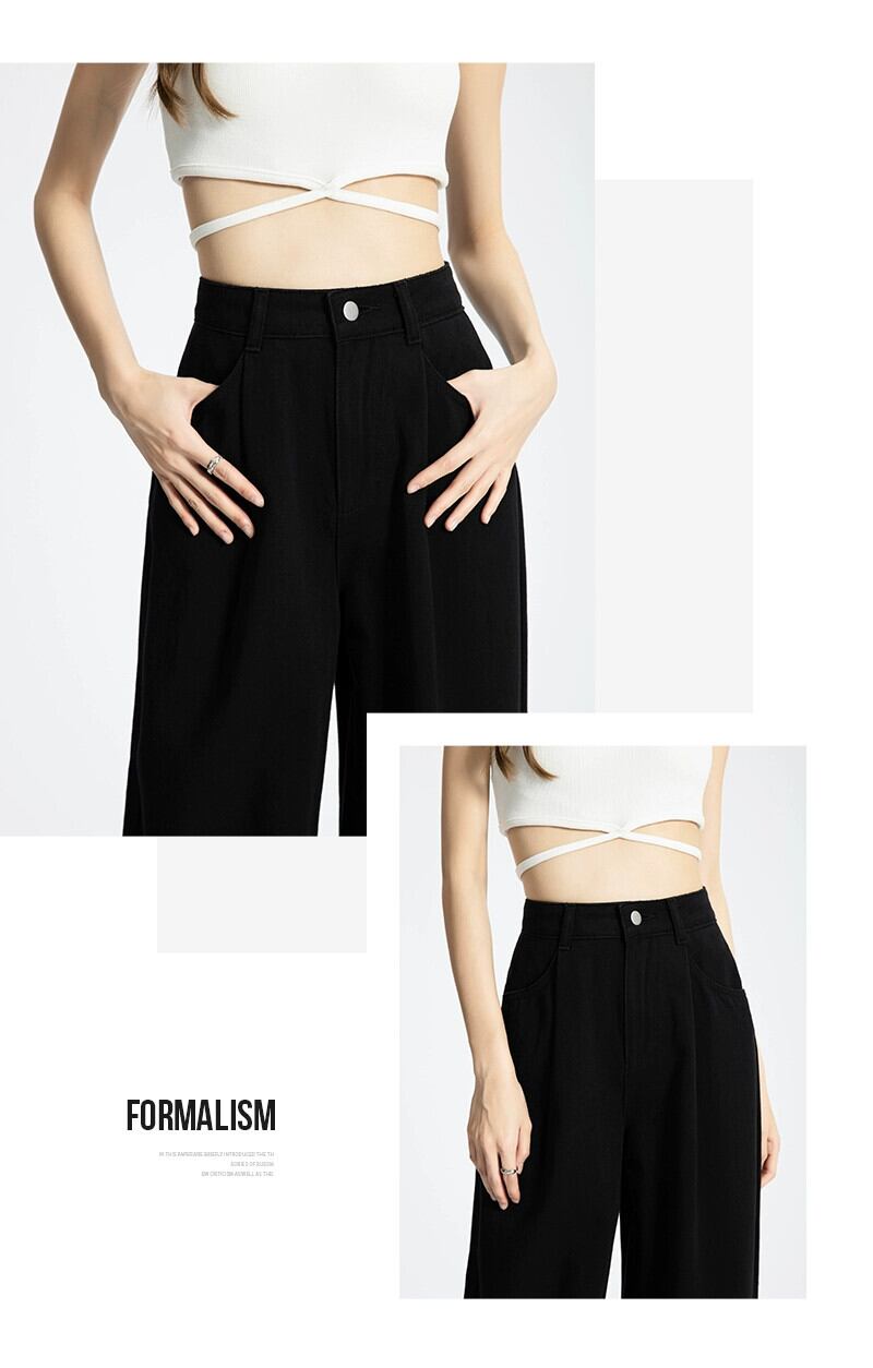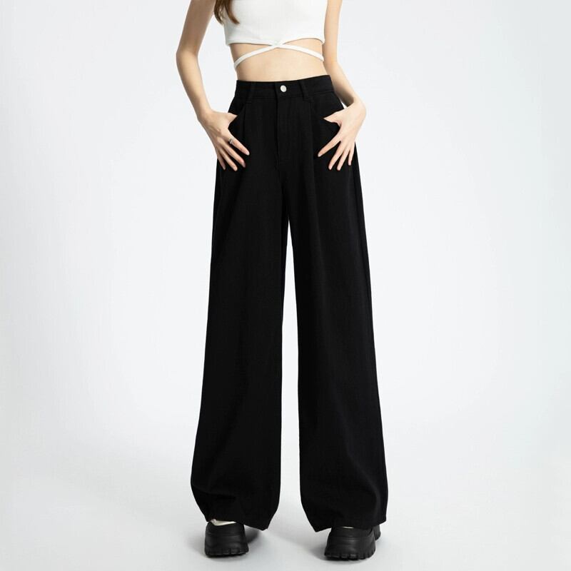 -ウエストストレートレッグジーンズレディース2024新しい夏ルーズスリミングドレープフロアレングスブラックワイドレッグパンツ サマー 夏物 7460059937541765 | framboise21