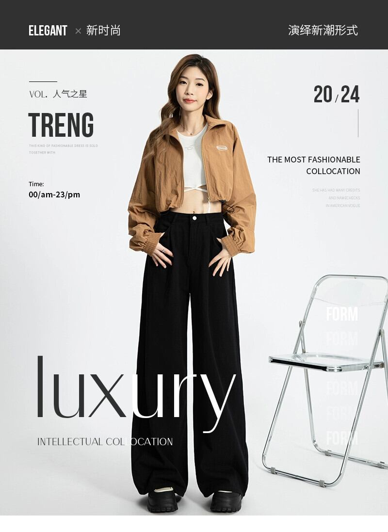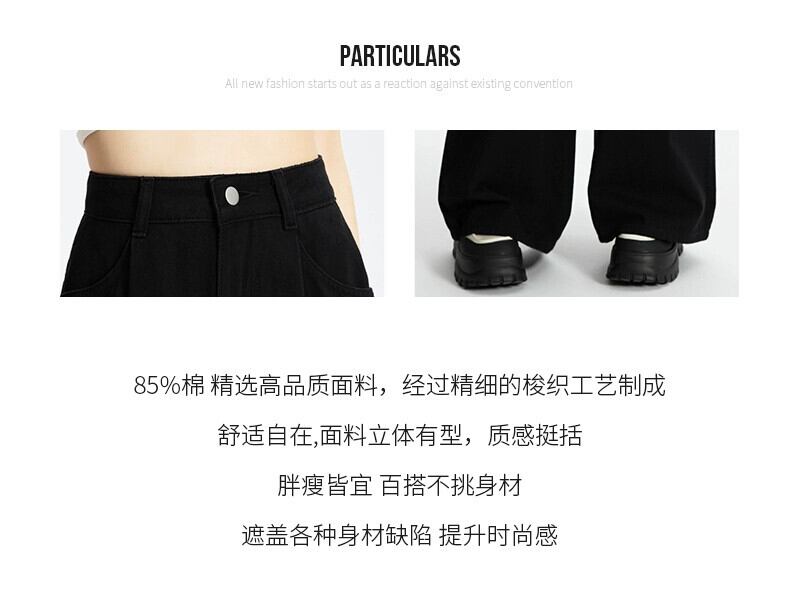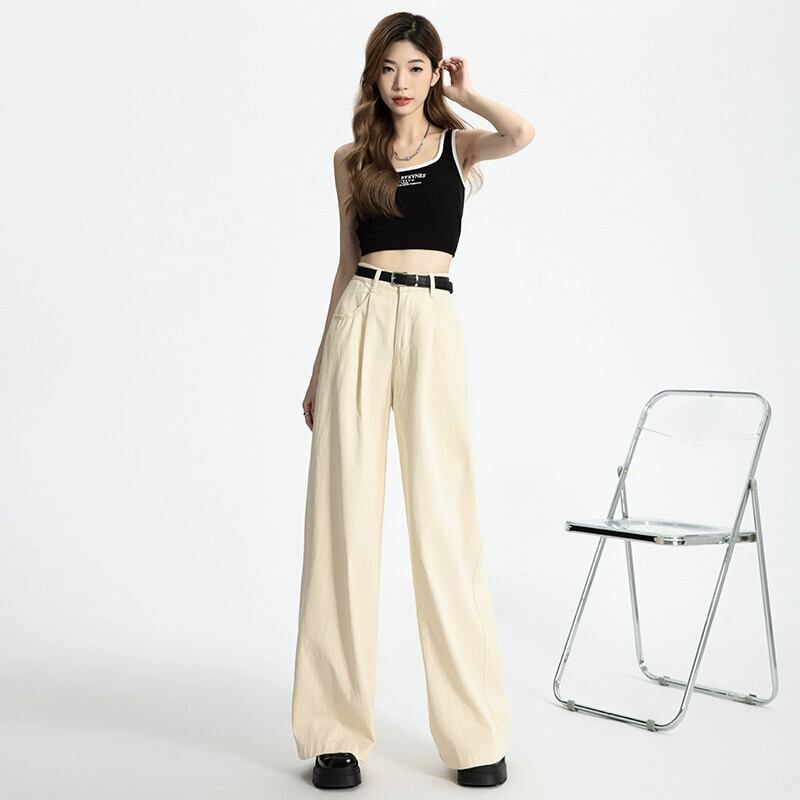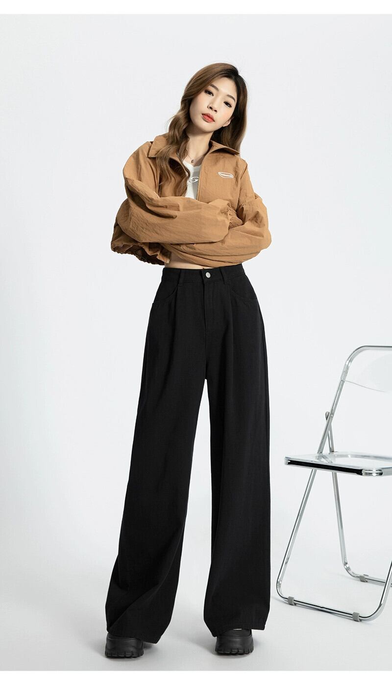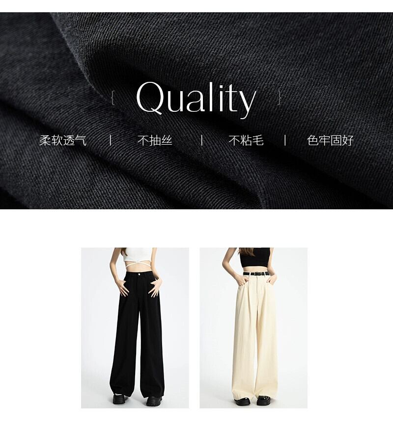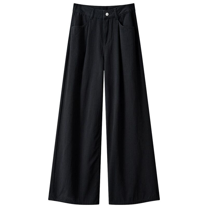 -ウエストストレートレッグジーンズレディース2024新しい夏ルーズスリミングドレープフロアレングスブラックワイドレッグパンツ サマー 夏物 7460059937541765 | framboise21