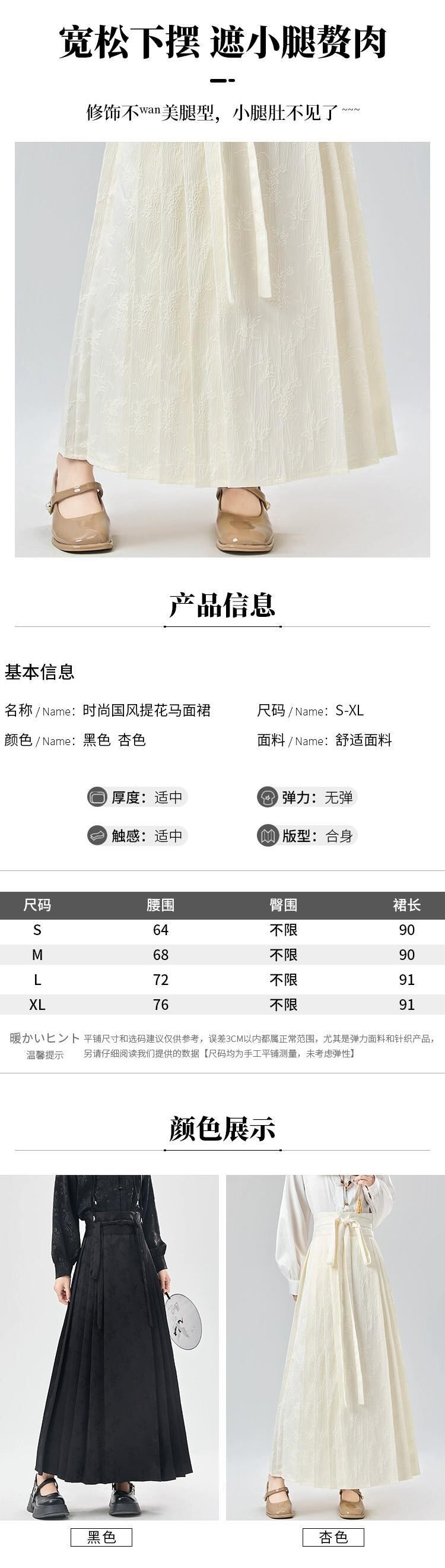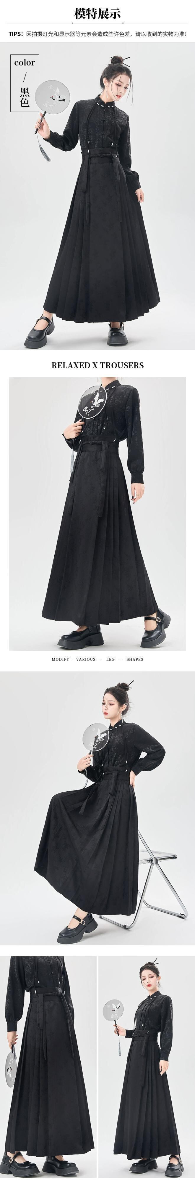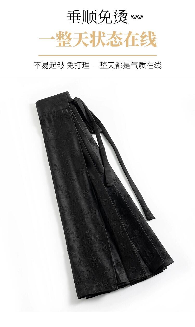 中国風の国民風のジャカードスカートの女性の春と秋の黒のプリーツスカートハイウエスト a ラインロング修正された馬の顔のスカート ハイウェスト ブラック スプリング 春物 オータム 秋物 Aライン 7460030762349989 | framboise21