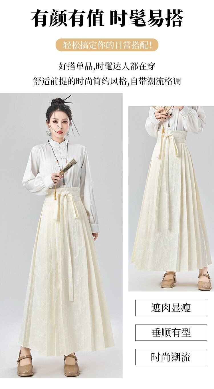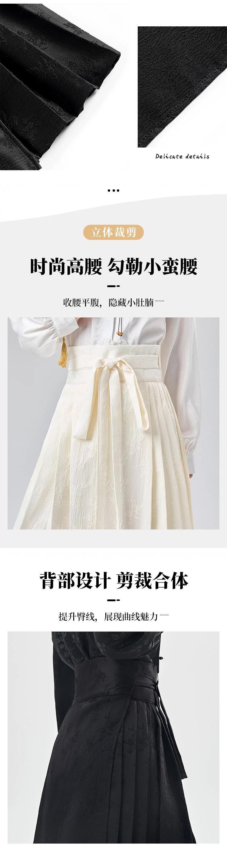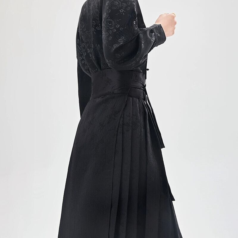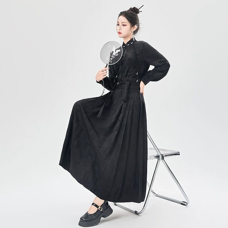 中国風の国民風のジャカードスカートの女性の春と秋の黒のプリーツスカートハイウエスト a ラインロング修正された馬の顔のスカート ハイウェスト ブラック スプリング 春物 オータム 秋物 Aライン 7460030762349989 | framboise21