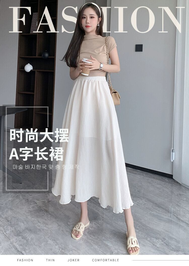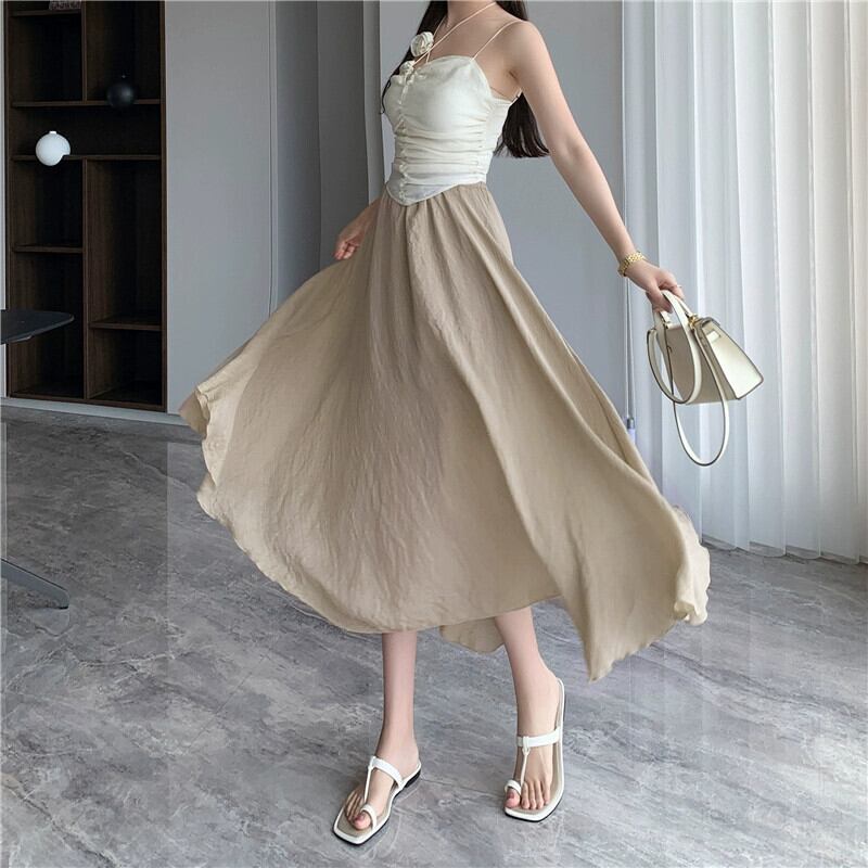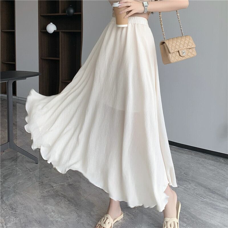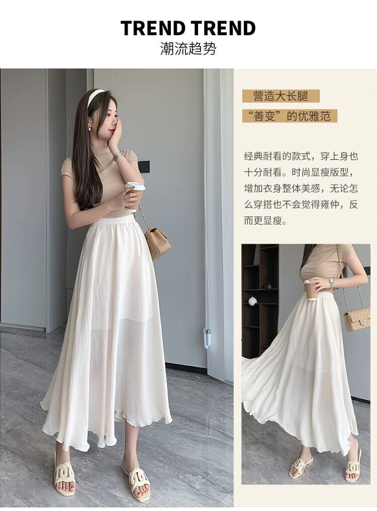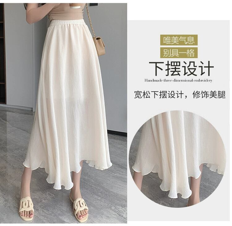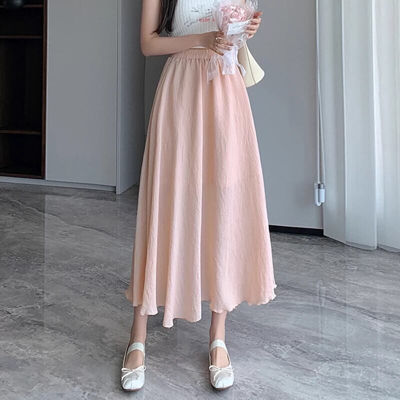 伸縮性のあるハイウエストメッシュスカートレディース夏、ハイエンド、ヒップカバー、痩身、フリルミッドレングスAラインガーゼスカートピンク エラスティック サマー 夏物 746008924931825 | framboise21