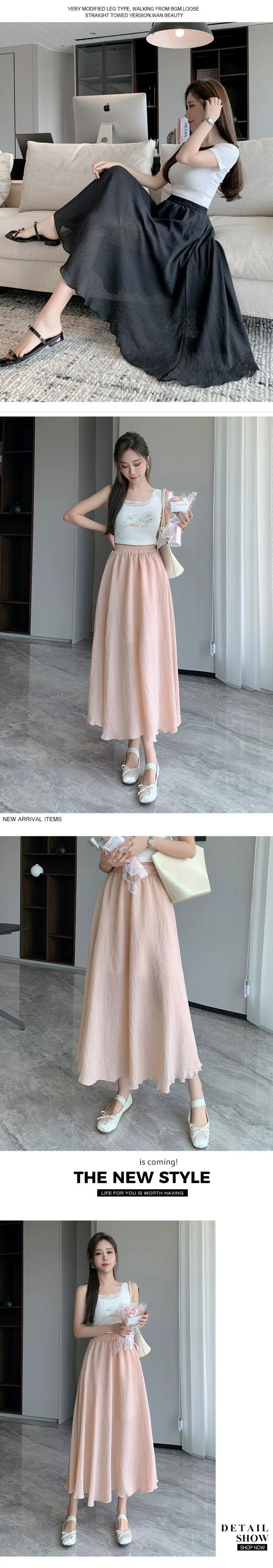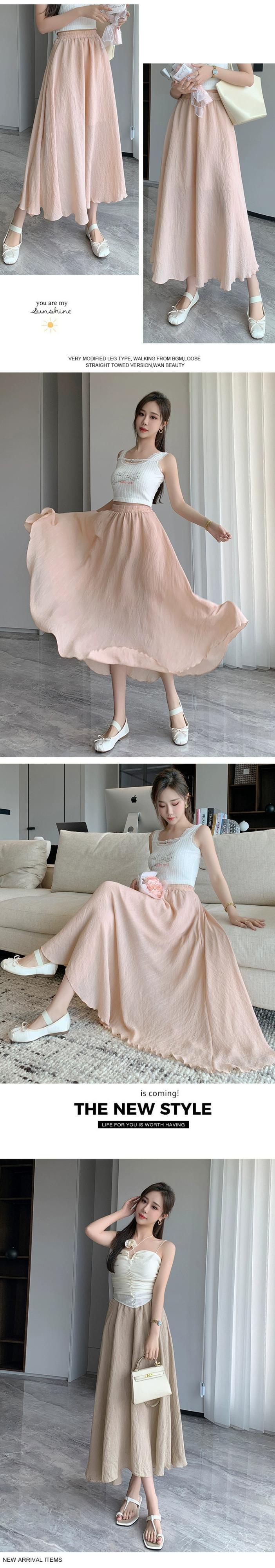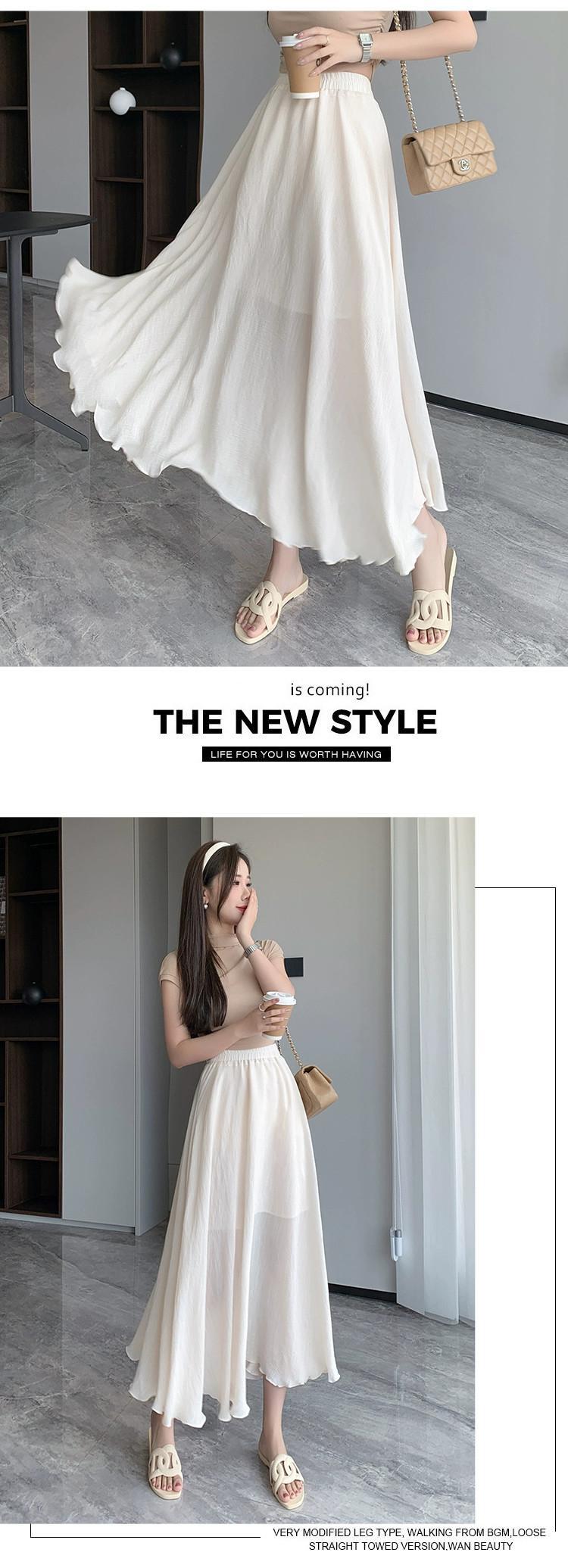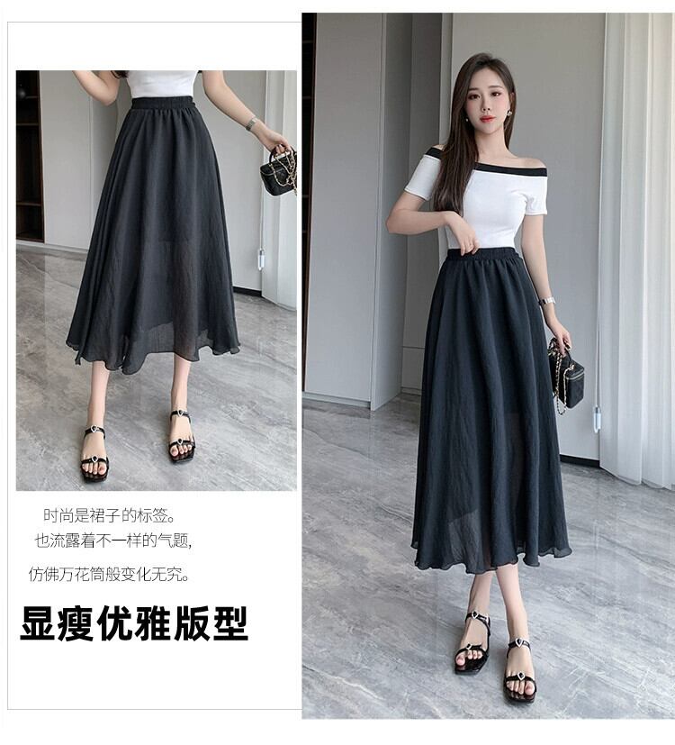 伸縮性のあるハイウエストメッシュスカートレディース夏、ハイエンド、ヒップカバー、痩身、フリルミッドレングスAラインガーゼスカートピンク エラスティック サマー 夏物 746008924931825 | framboise21