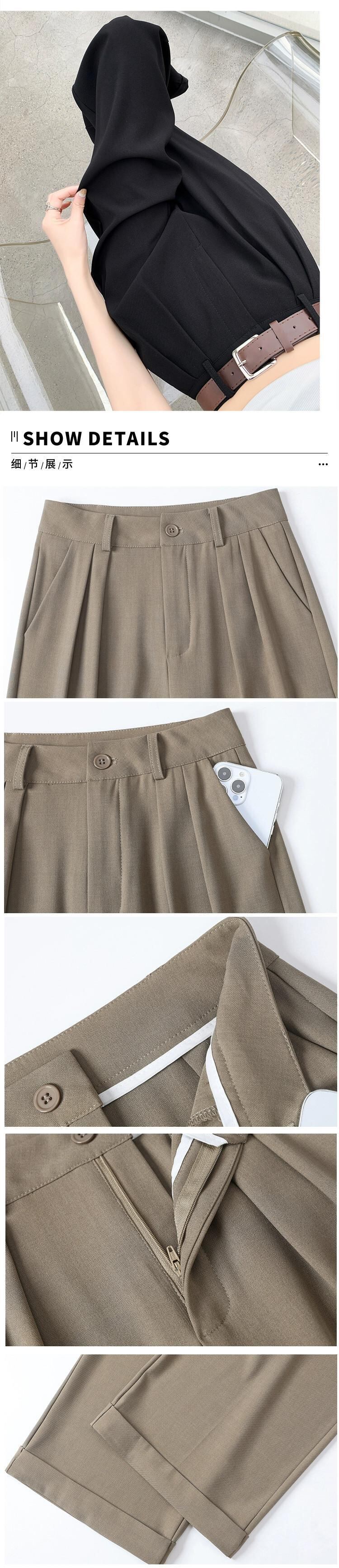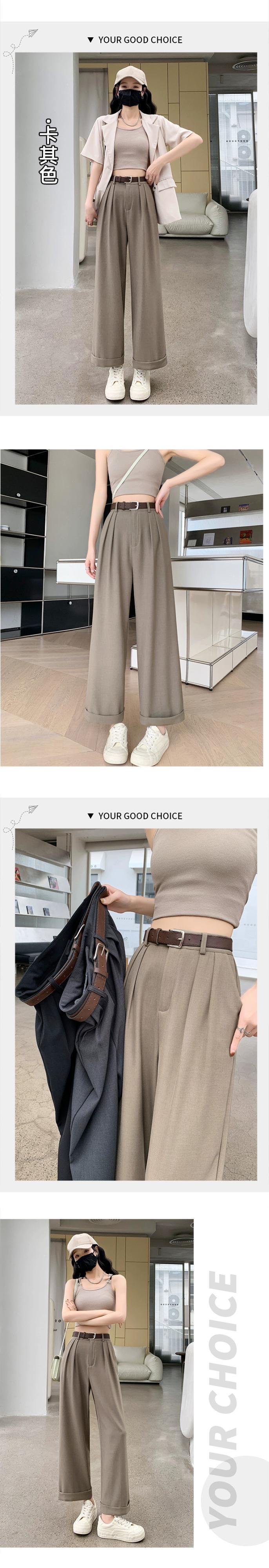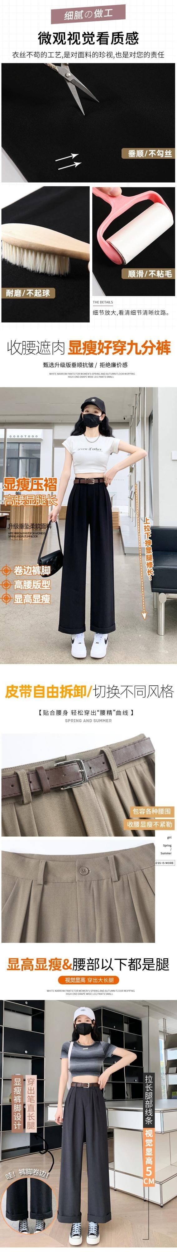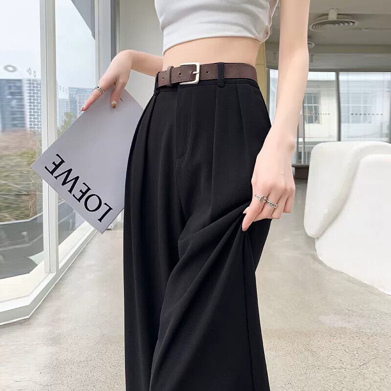 -夏の女性の黒のスーツパンツ、ハイウエスト、ルーズでカジュアル、9ポイントストレートワイドレッグパンツ、小柄な人向け ブラック サマー 夏物 7460053385640219 | framboise21