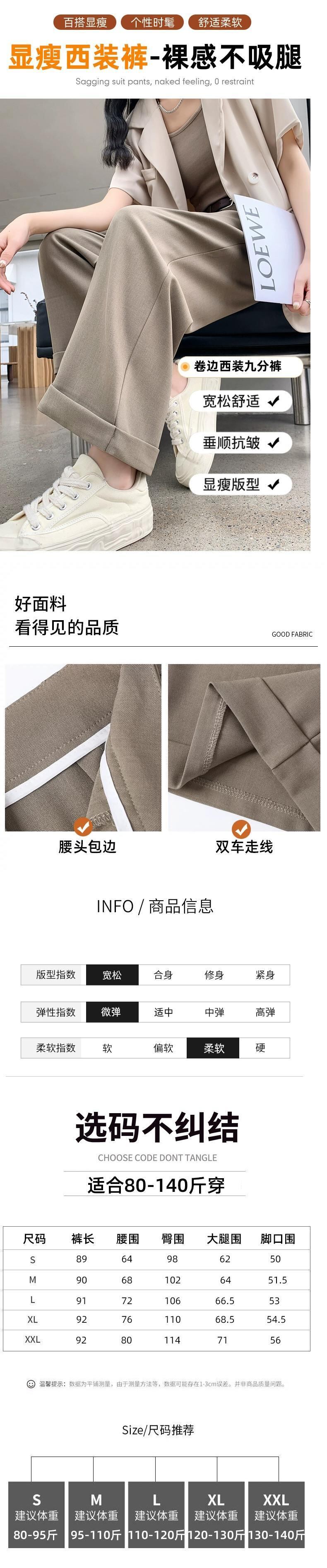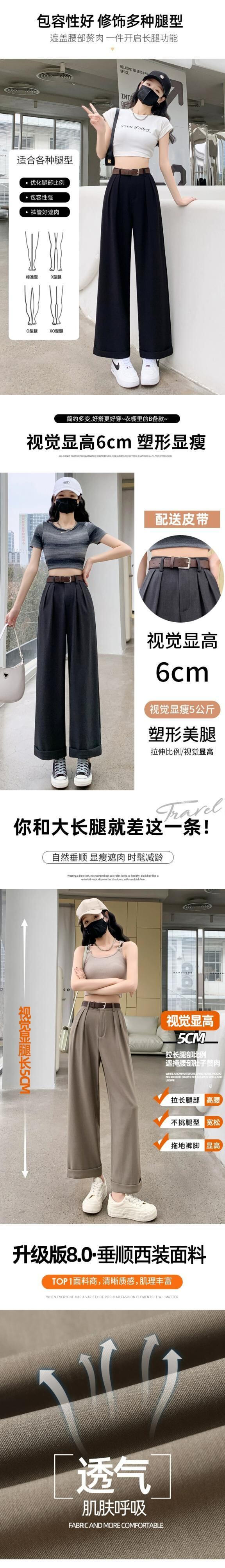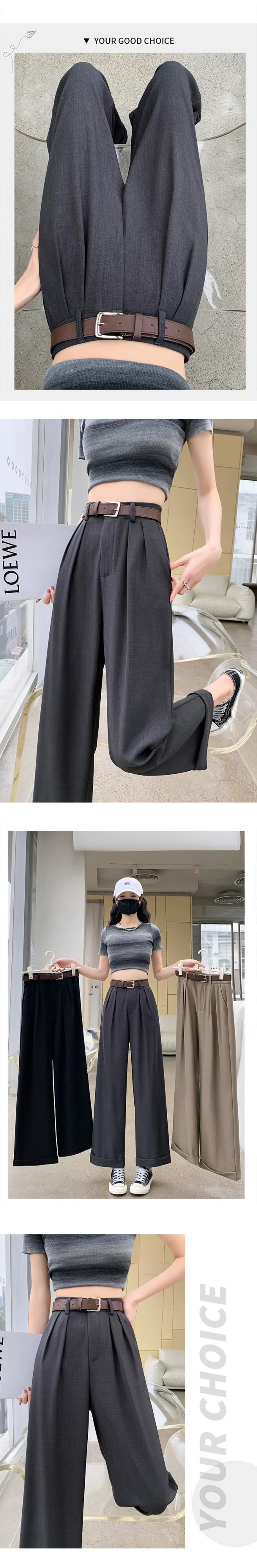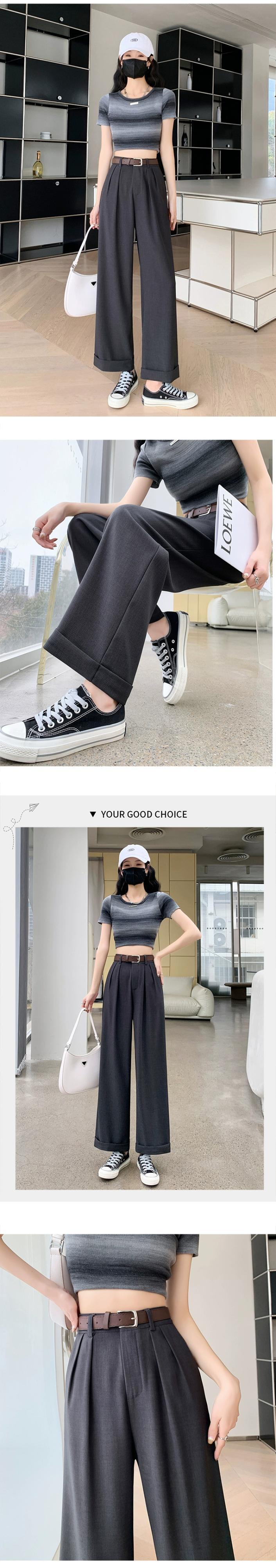 -夏の女性の黒のスーツパンツ、ハイウエスト、ルーズでカジュアル、9ポイントストレートワイドレッグパンツ、小柄な人向け ブラック サマー 夏物 7460053385640219 | framboise21