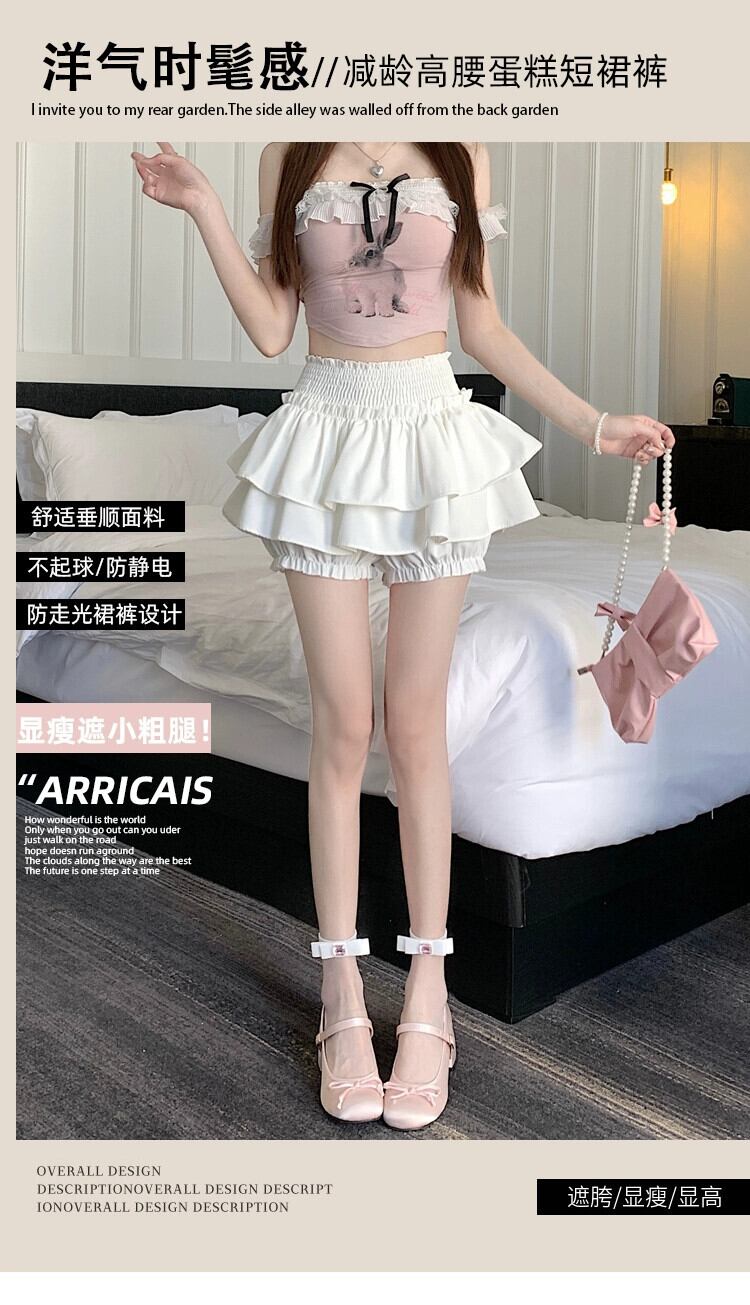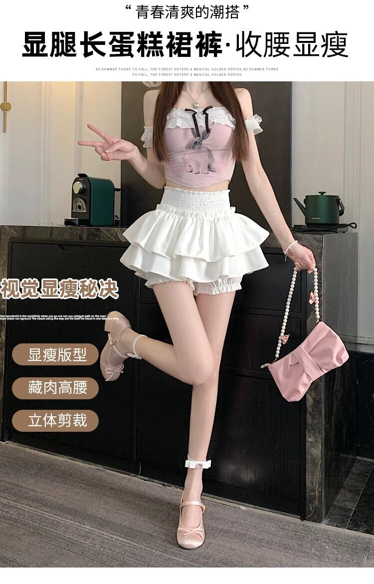 バレエスタイルふわふわケーキスカート女性の夏のデザインハイウエスト痩身フリルエッジ露出防止 A ラインスカート ハイウェスト サマー 夏物 Aライン 7460020634932472 | framboise21