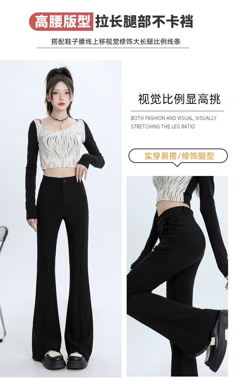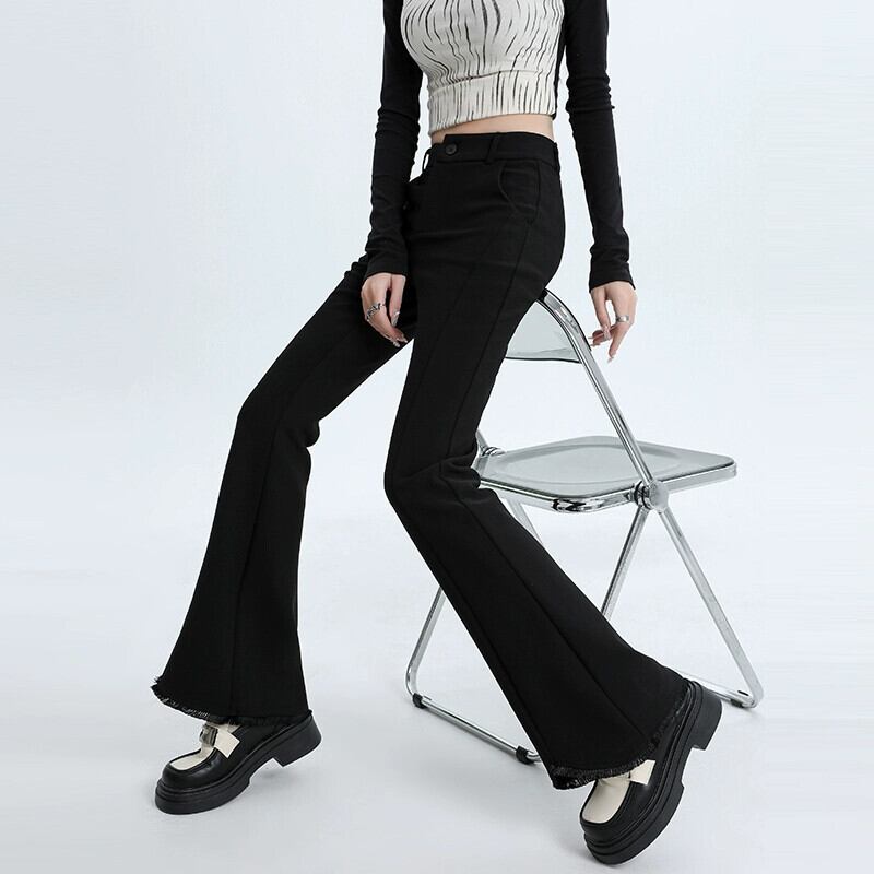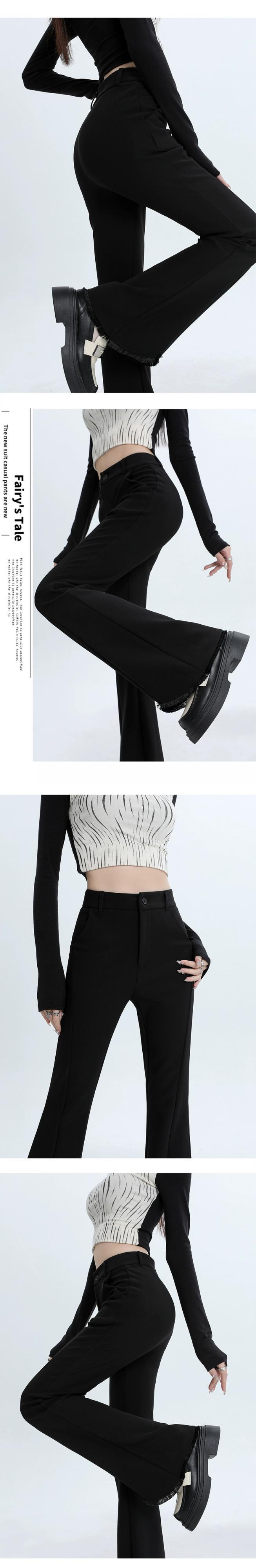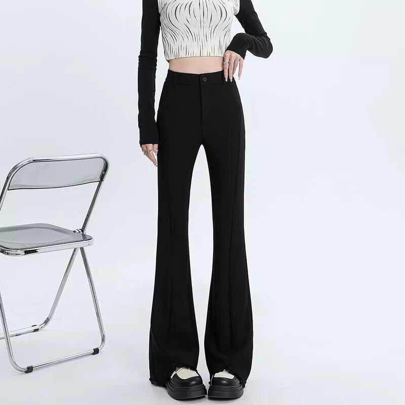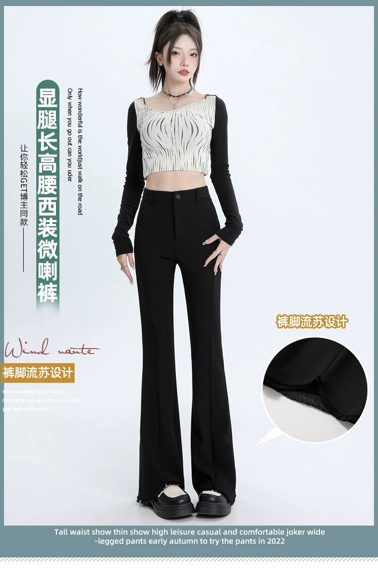 ブラックテルわずかフレアスーツパンツレディース、春と秋のデザイン、ハイウエスト、スリム、カジュアル、狭いストレートレッグフロアレングスフレアパンツ レッド スプリング 春物 オータム 秋物 7460052307726183 | framboise21