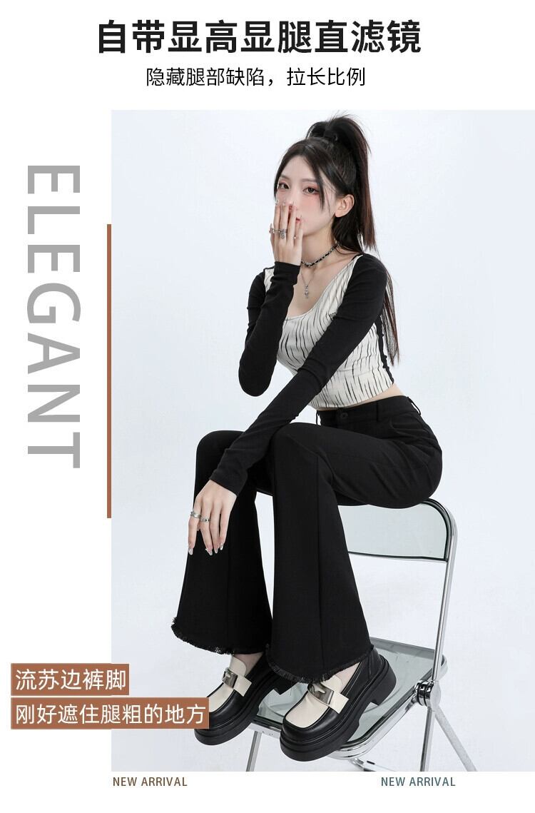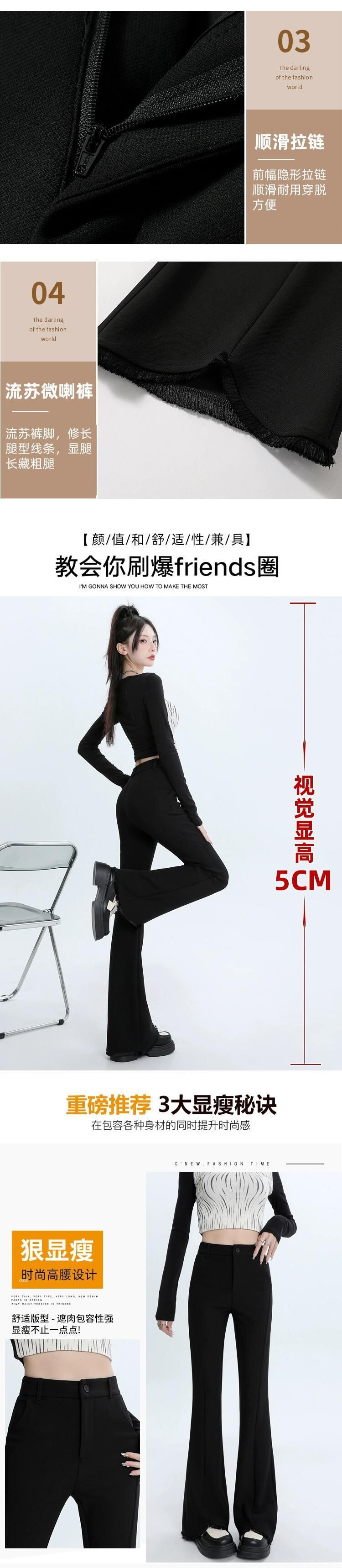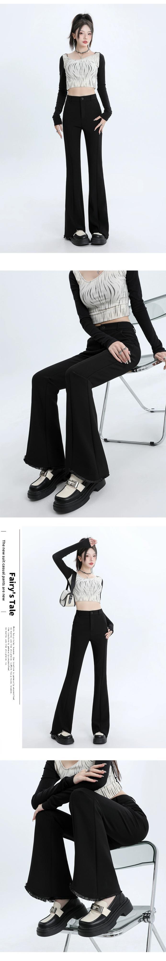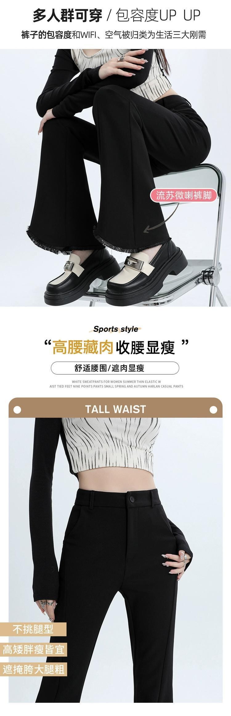 ブラックテルわずかフレアスーツパンツレディース、春と秋のデザイン、ハイウエスト、スリム、カジュアル、狭いストレートレッグフロアレングスフレアパンツ レッド スプリング 春物 オータム 秋物 7460052307726183 | framboise21