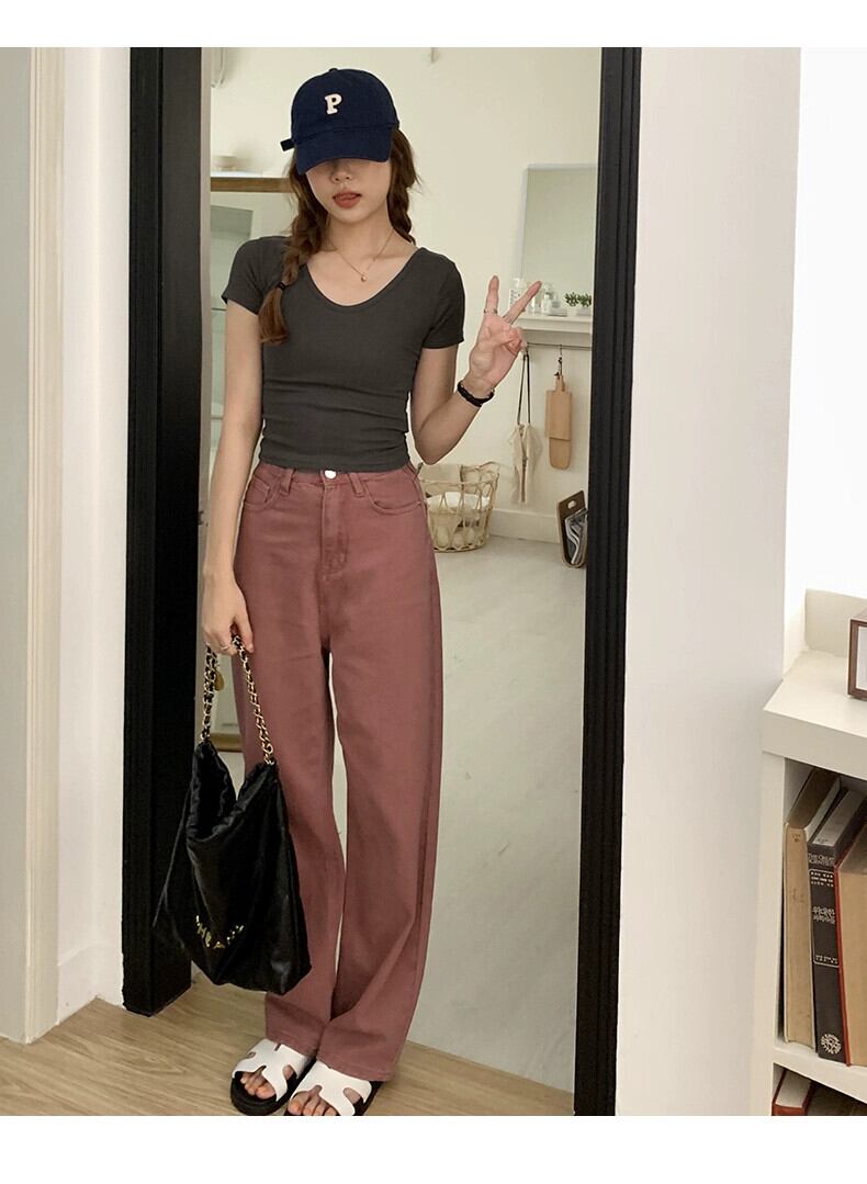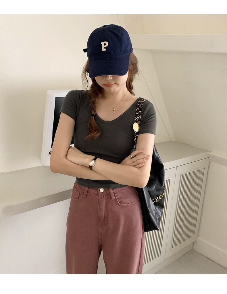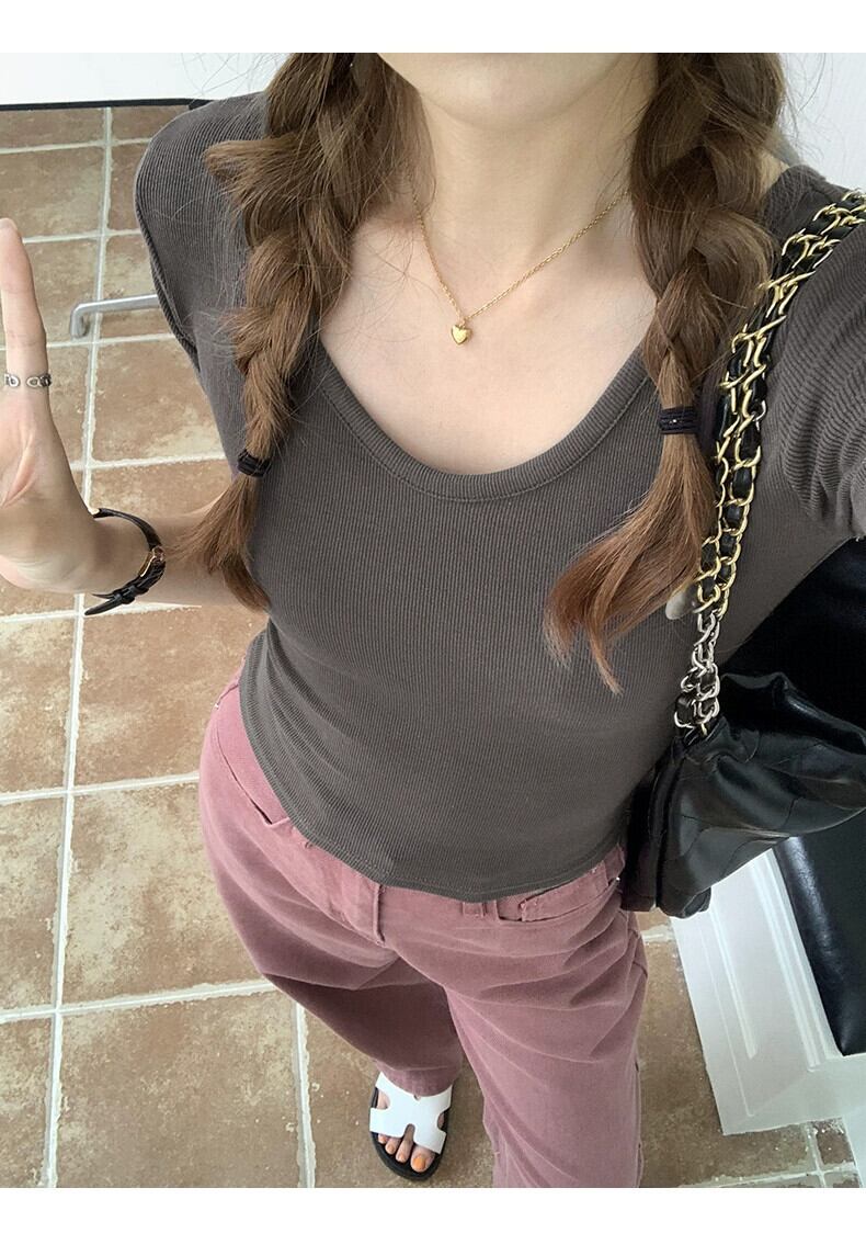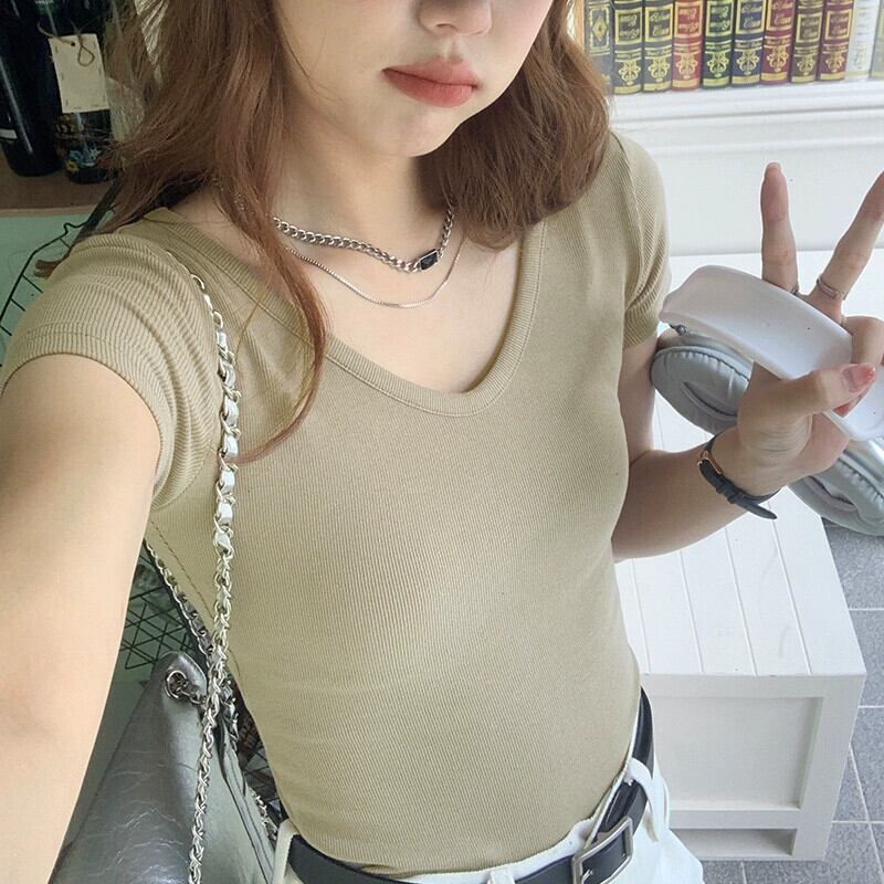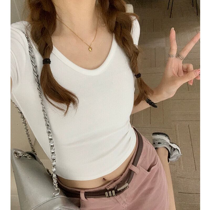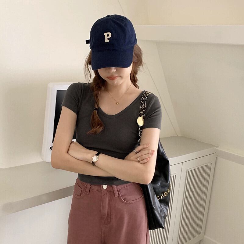 ホワイトコットン半袖 Tシャツ女性 2024 夏の新作スリムでファッショナブルなおへそ出しショート V ネックトップ サマー 夏物 Vネック 7460032120784033 | framboise21