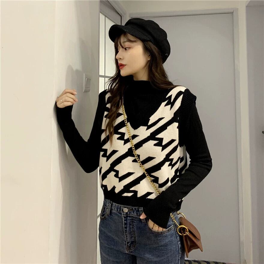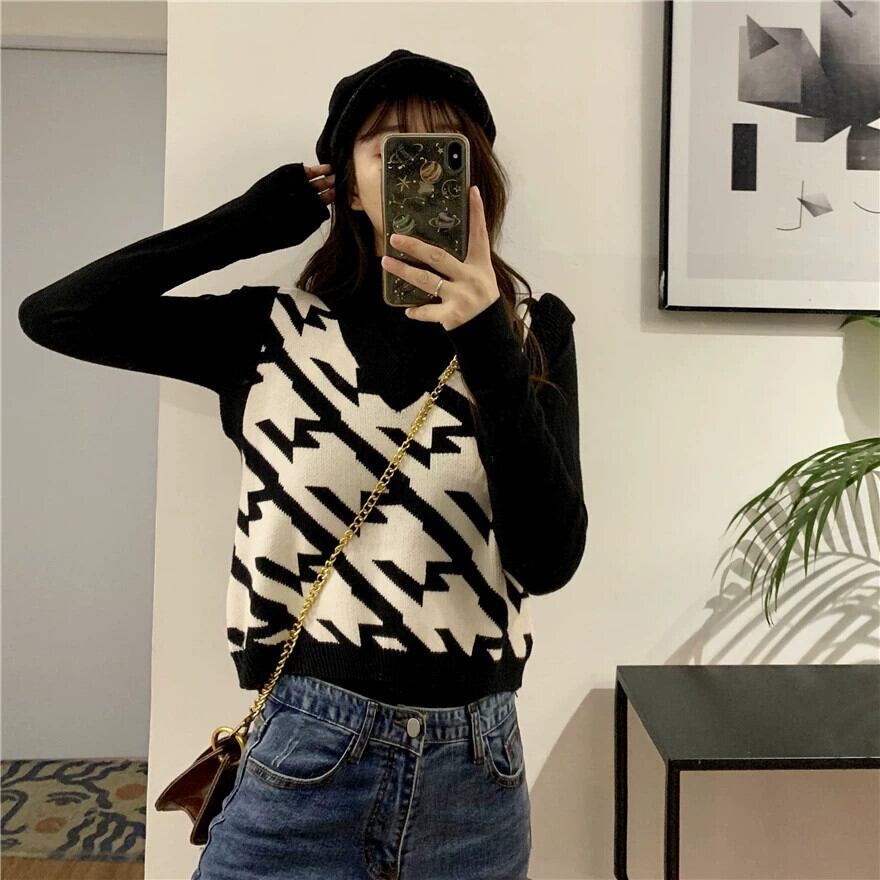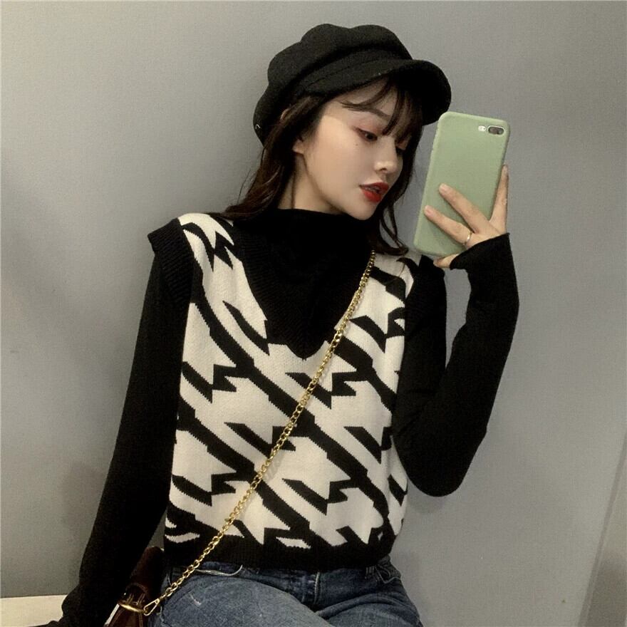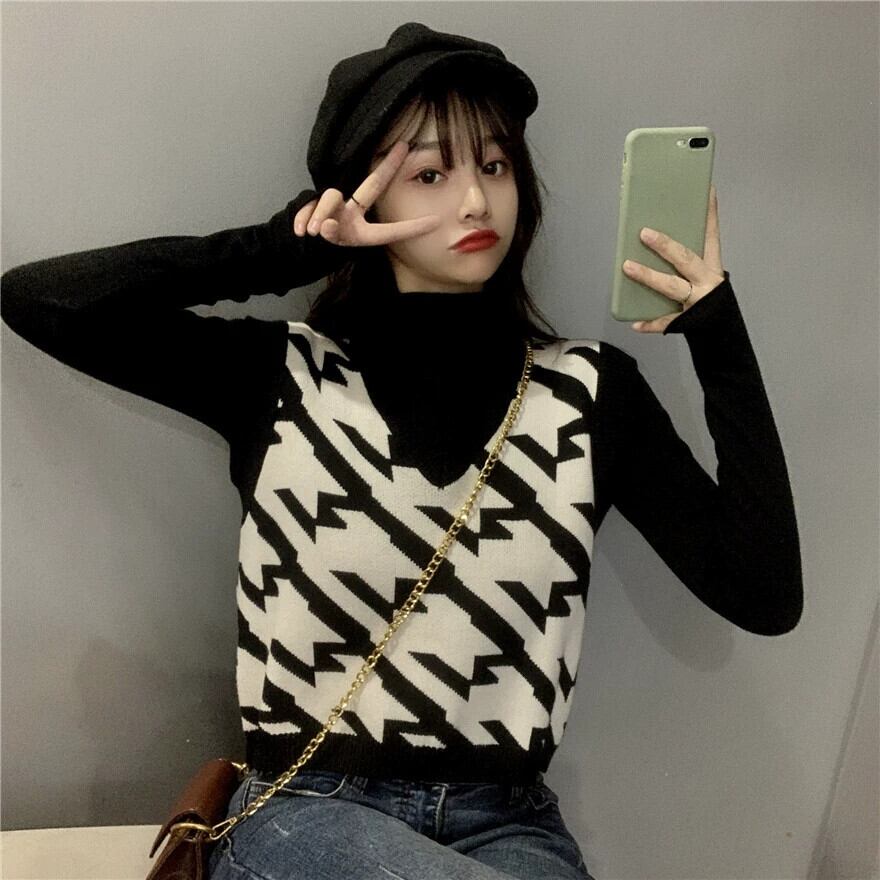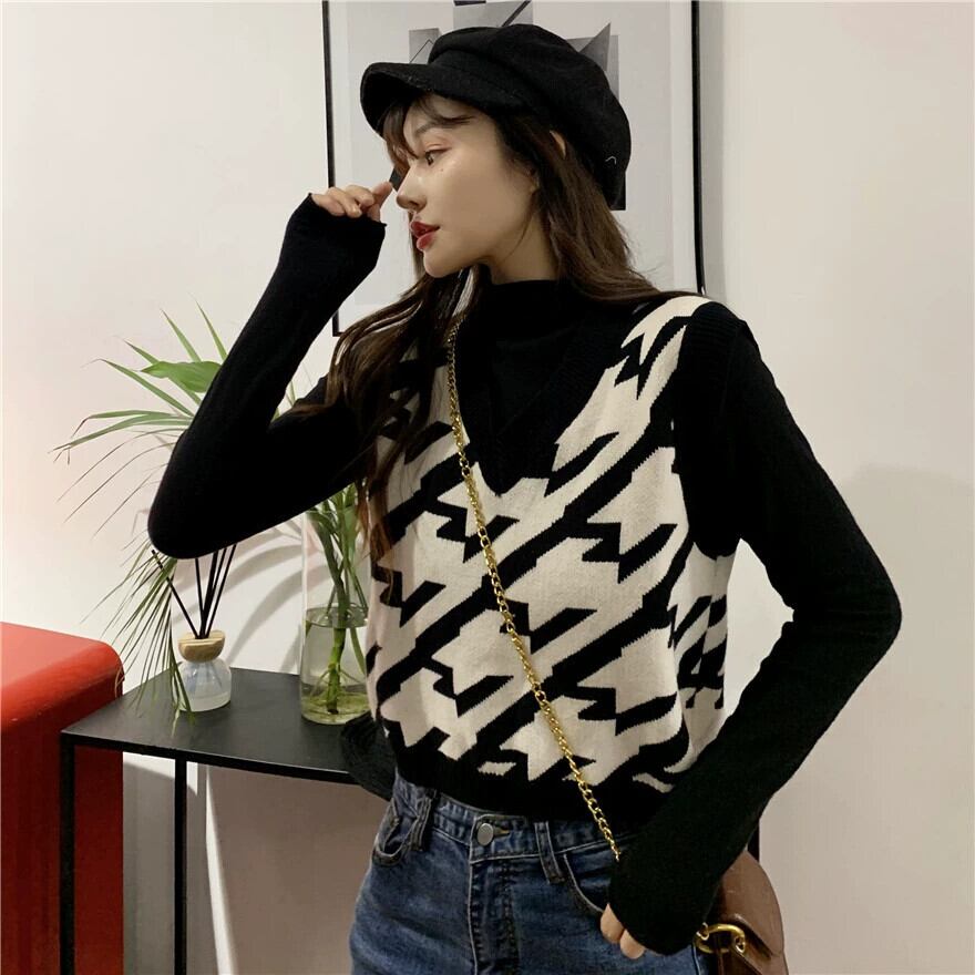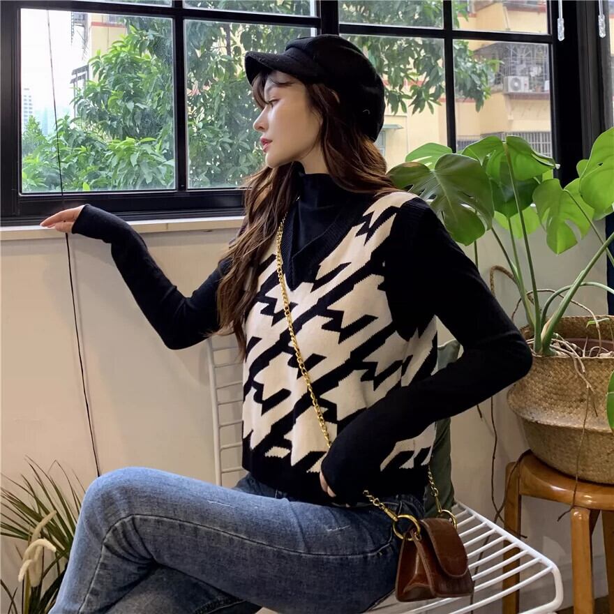 黒ニットベスト女性春と秋のアウターストライプベストセーターベスト層状ショートチョッキノースリーブトップ冬 レッド ブラック スプリング 春物 オータム 秋物 ウィンター 冬物 7460029962561043 | framboise21