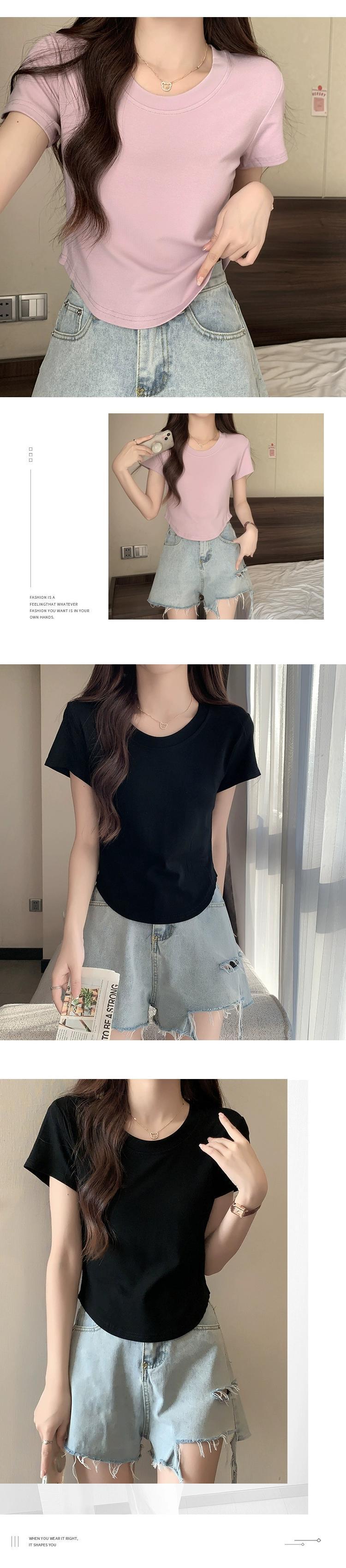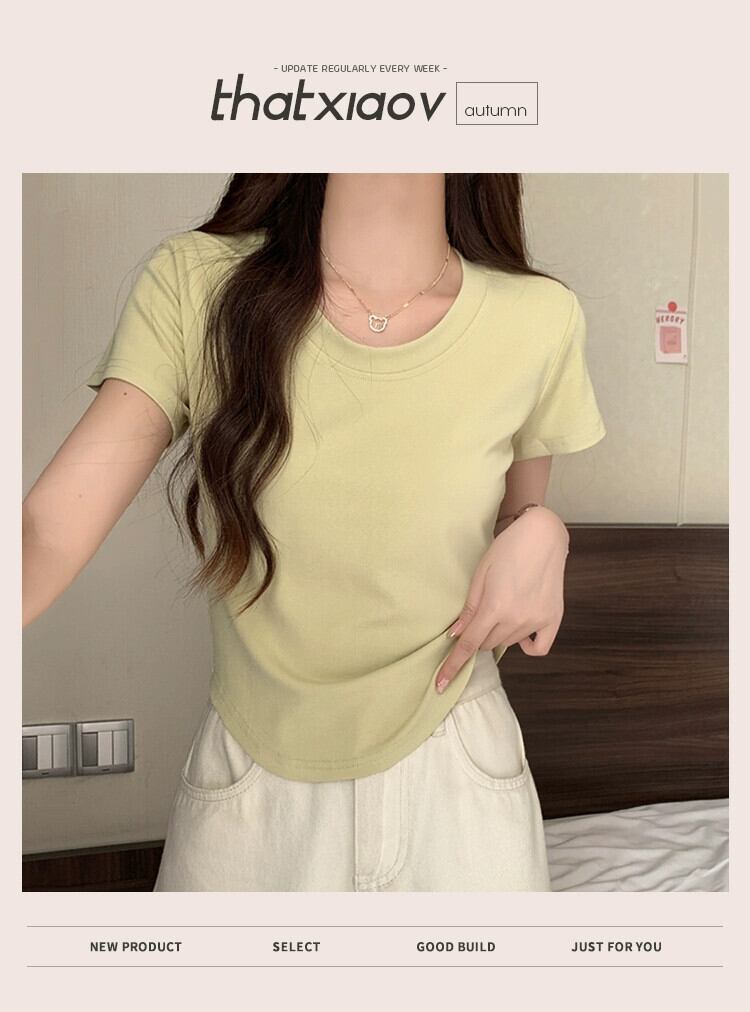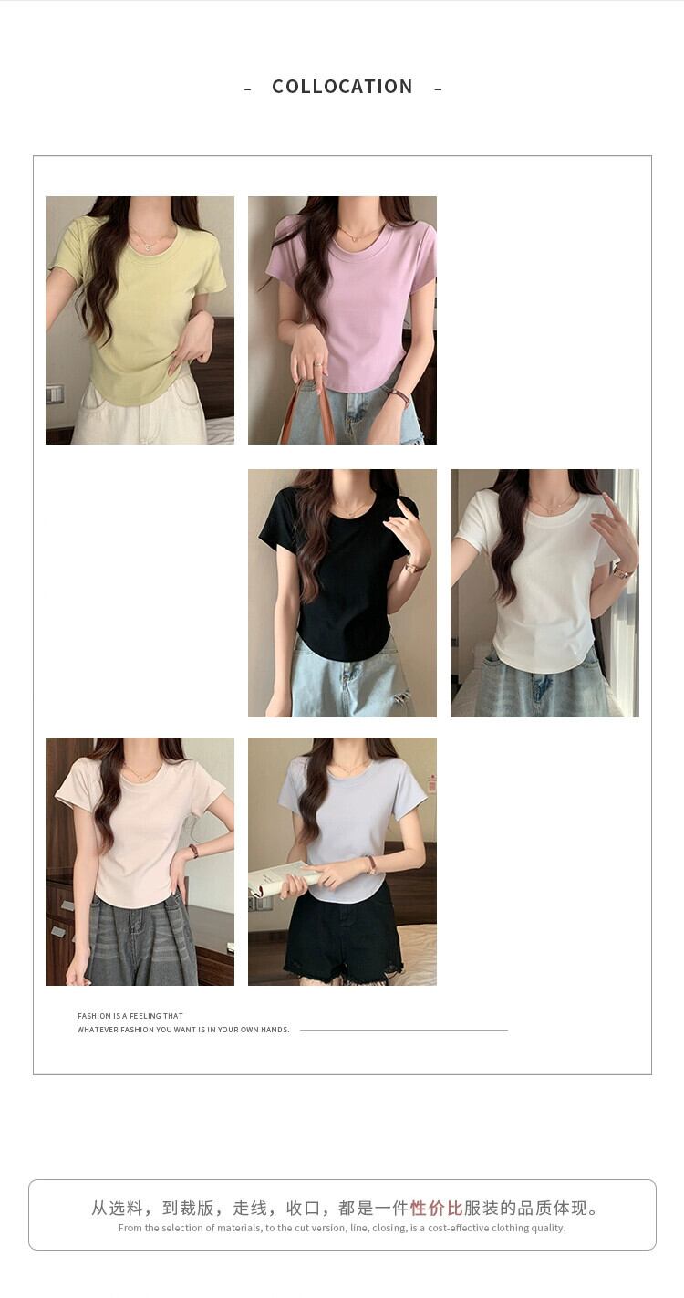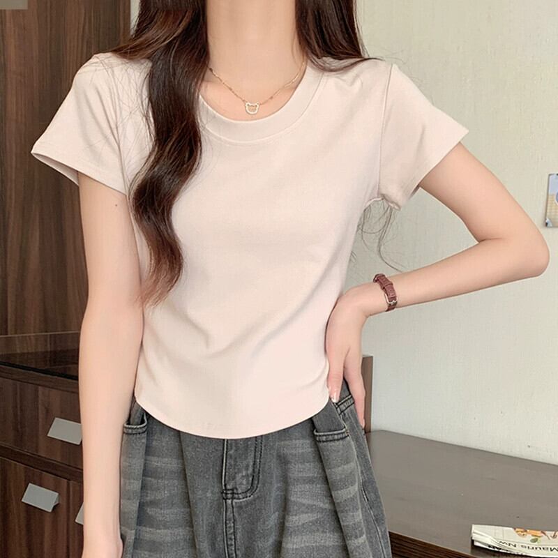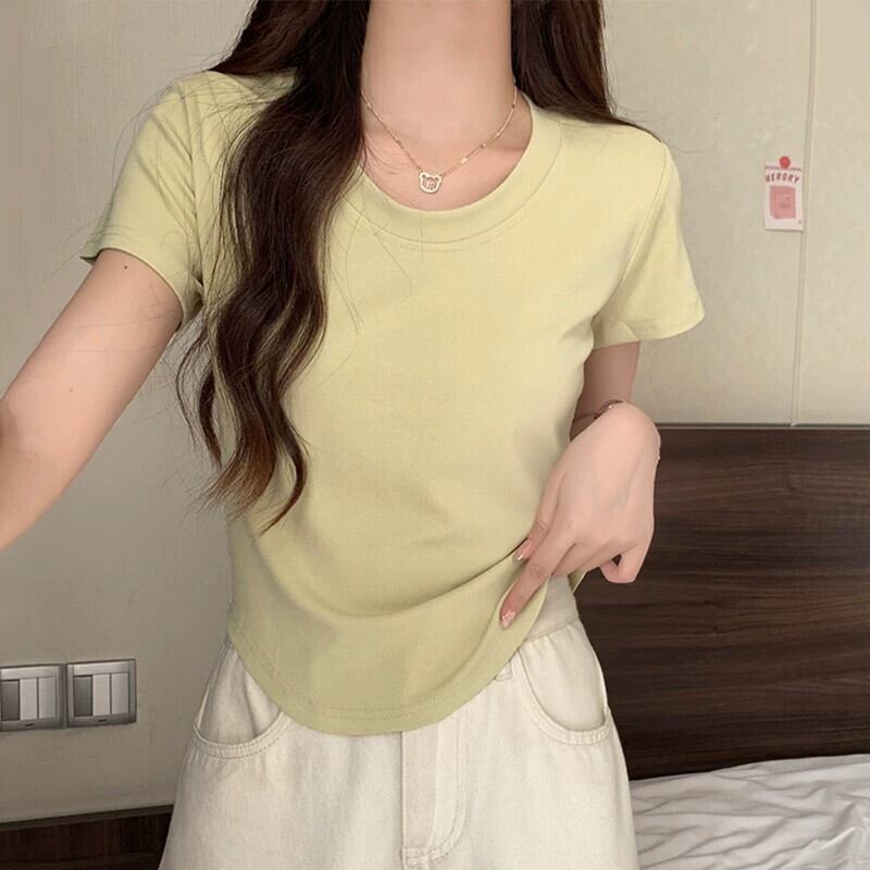夏の白い右肩半袖 T シャツの女性。スリムでファッショナブルで多用途であることを目指します。イレギュラーなショートトップスがトレンドです。 ホワイト サマー 夏物 Tシャツ 7460022267737297 | framboise21