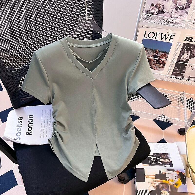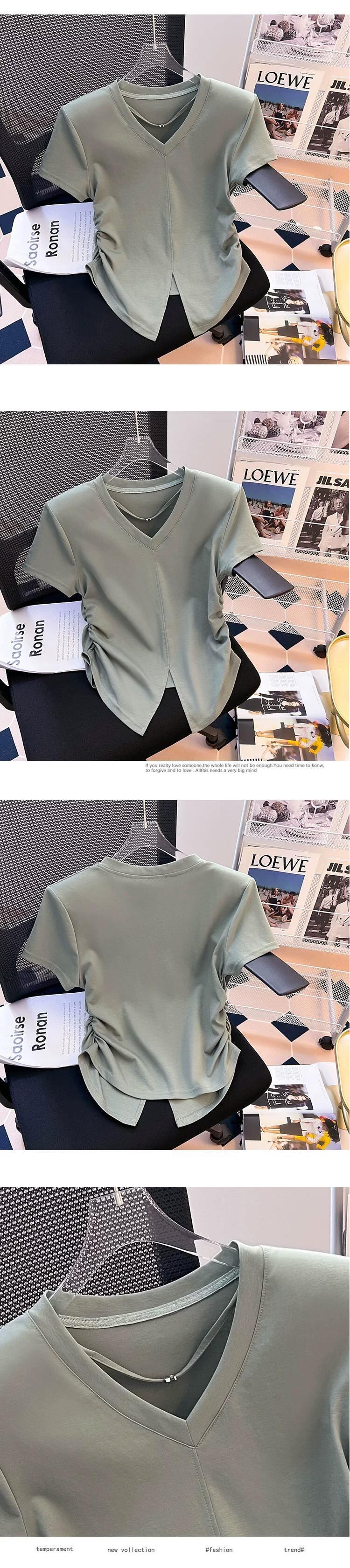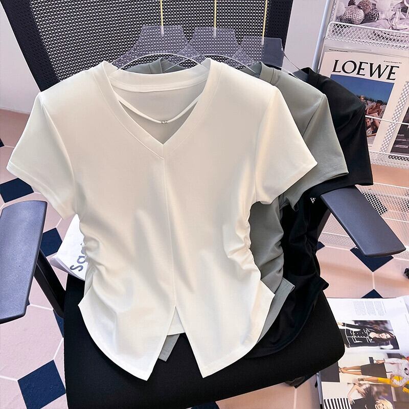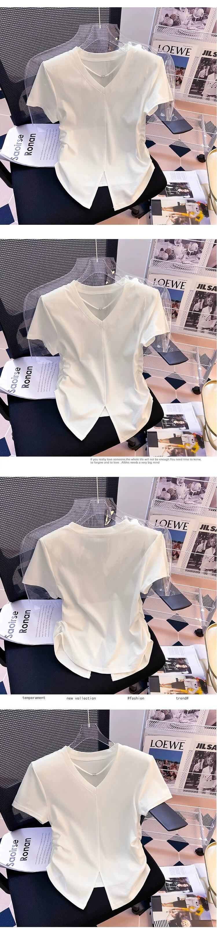 純綿右肩半袖 tシャツ女性の夏のデザインスリムファッション不規則なプリーツスリットショートトップ白 ホワイト コットン ハーフスリーブ サマー 夏物 7460051627688751 | framboise21