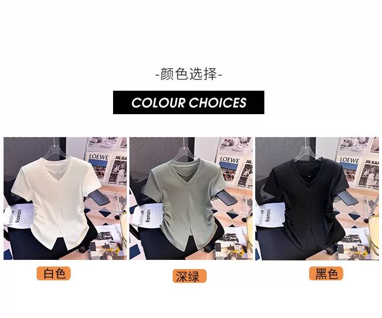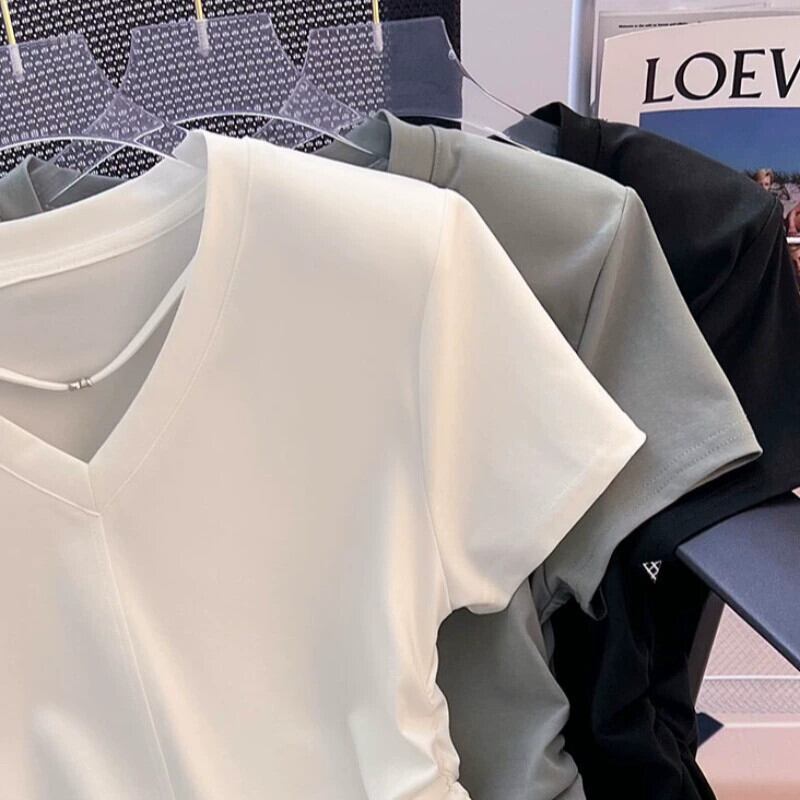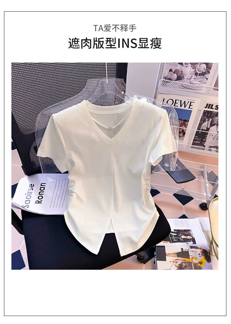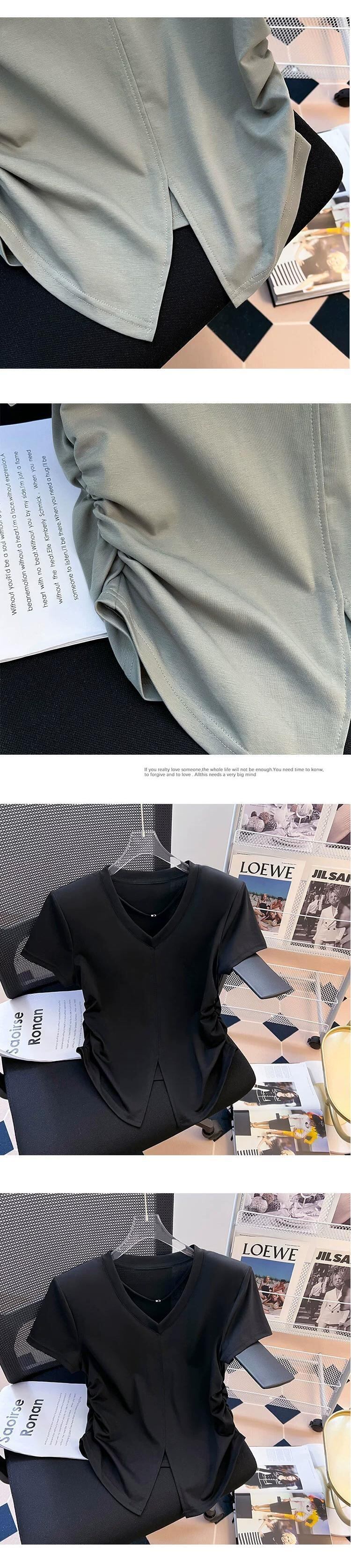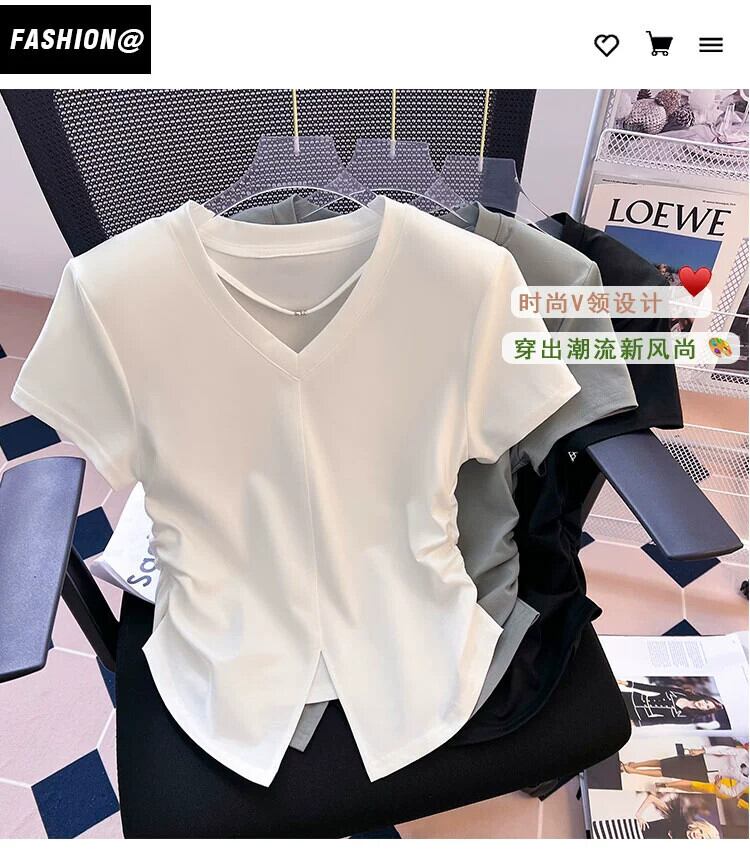純綿右肩半袖 tシャツ女性の夏のデザインスリムファッション不規則なプリーツスリットショートトップ白 ホワイト コットン ハーフスリーブ サマー 夏物 7460051627688751 | framboise21