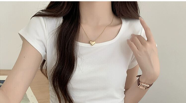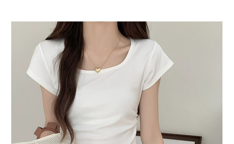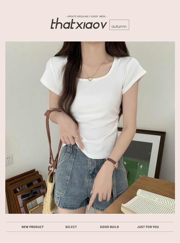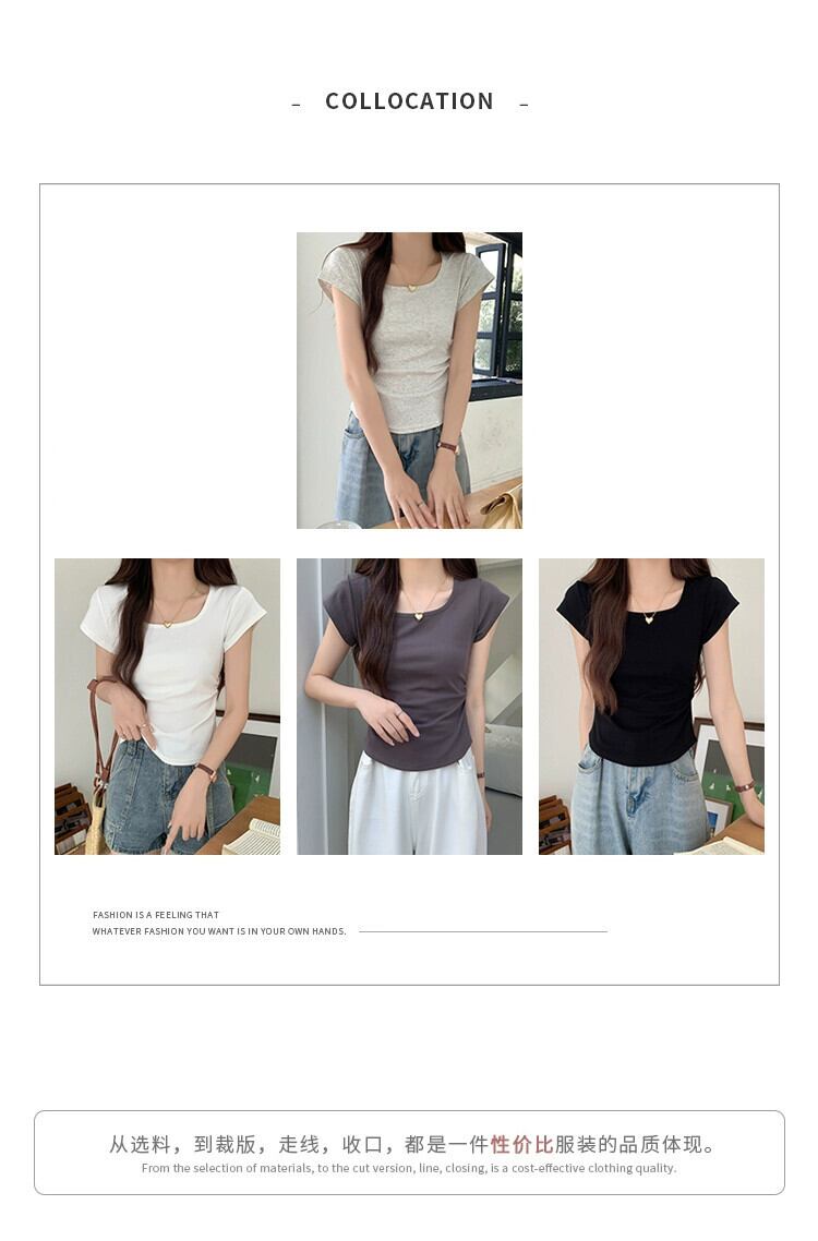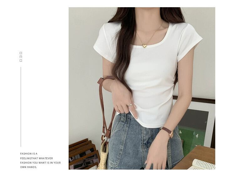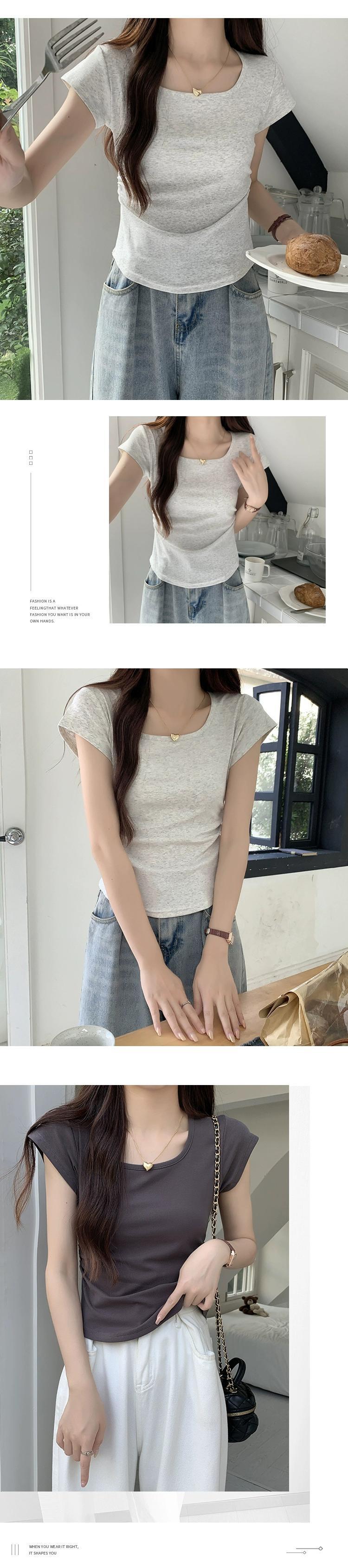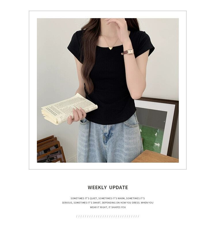 夏のイレギュラーショルダー半袖Tシャツレディース、スリムでファッショナブル、カーブした裾、プリーツスクエアネックショートトップ サマー 夏物 スクウェア 7460045285446261 | framboise21