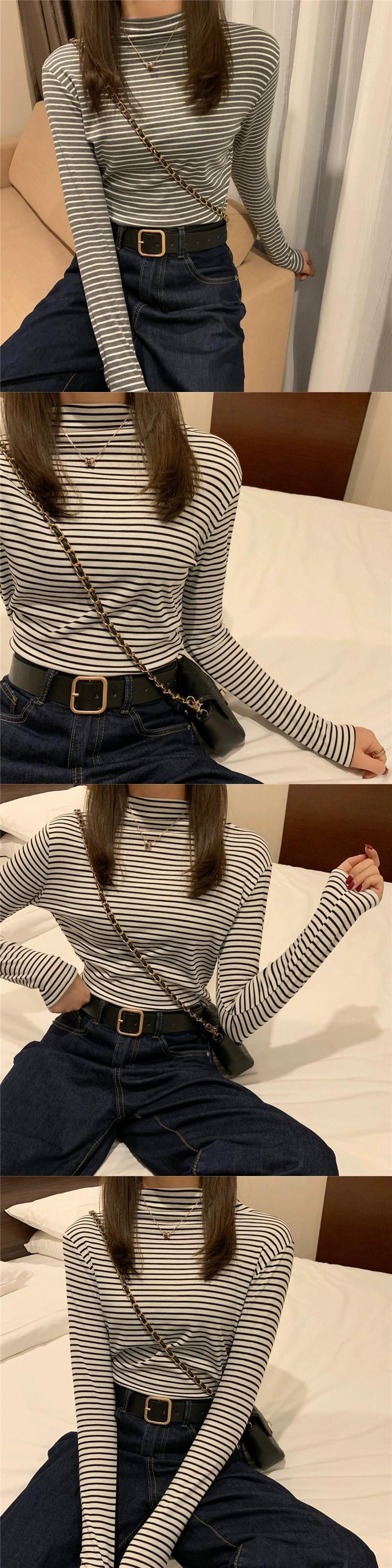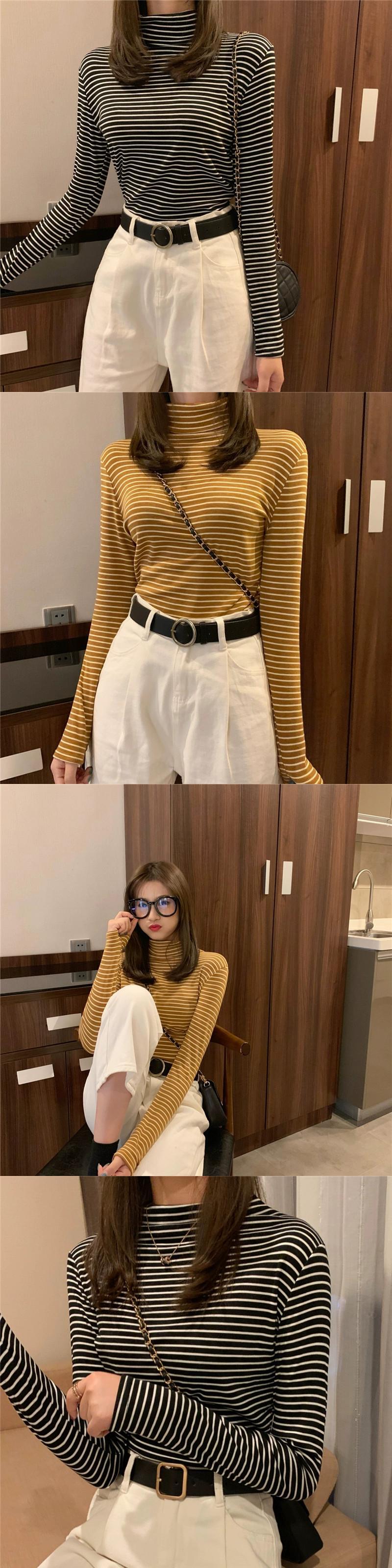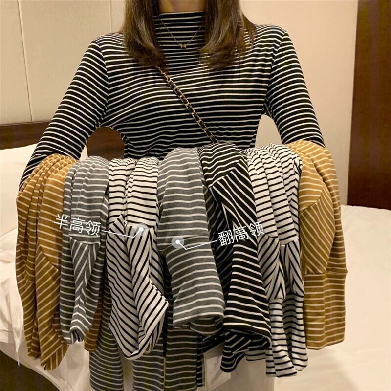 春と秋のベルベットハーフタートルネックボトムシャツレディース、起毛暖かいトップ、ファッショナブルでスリムフィット、ストライプ長袖Tシャツ、トレンディ ロング スプリング 春物 オータム 秋物 7460096366298950 | framboise21