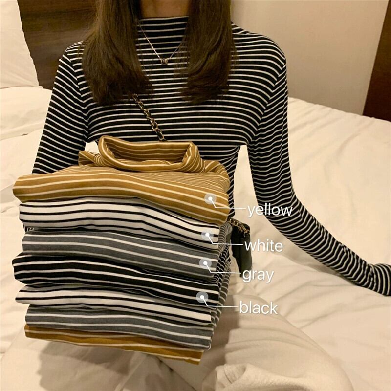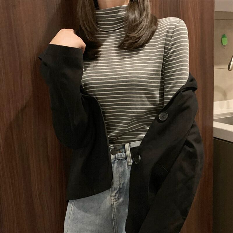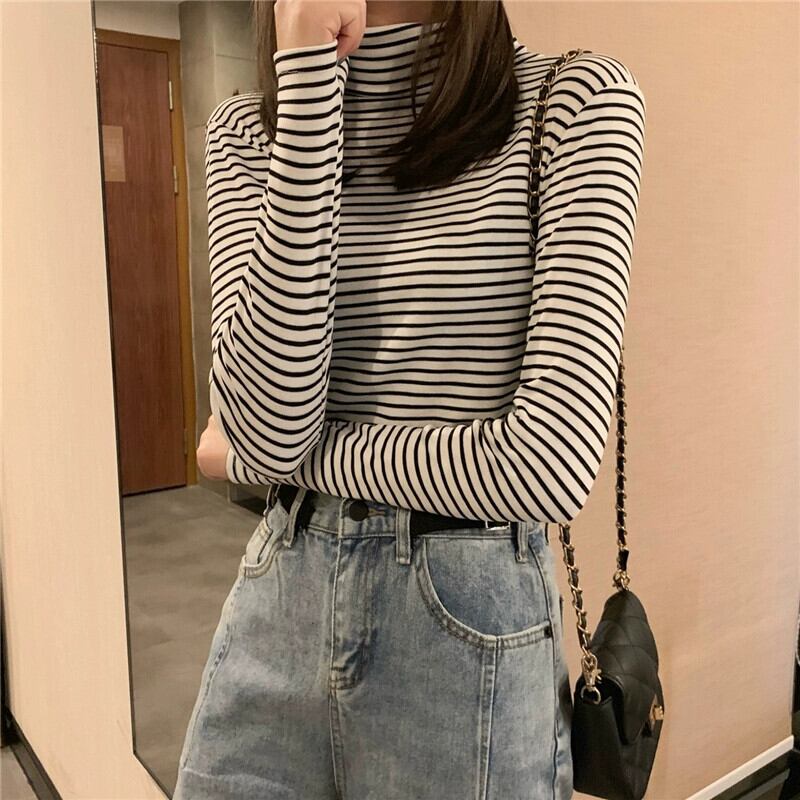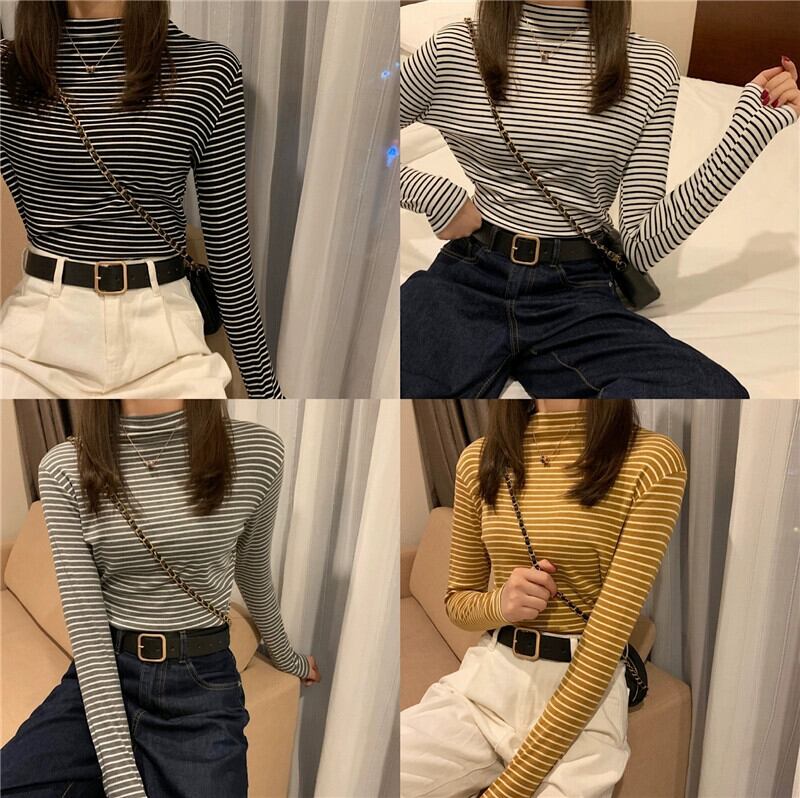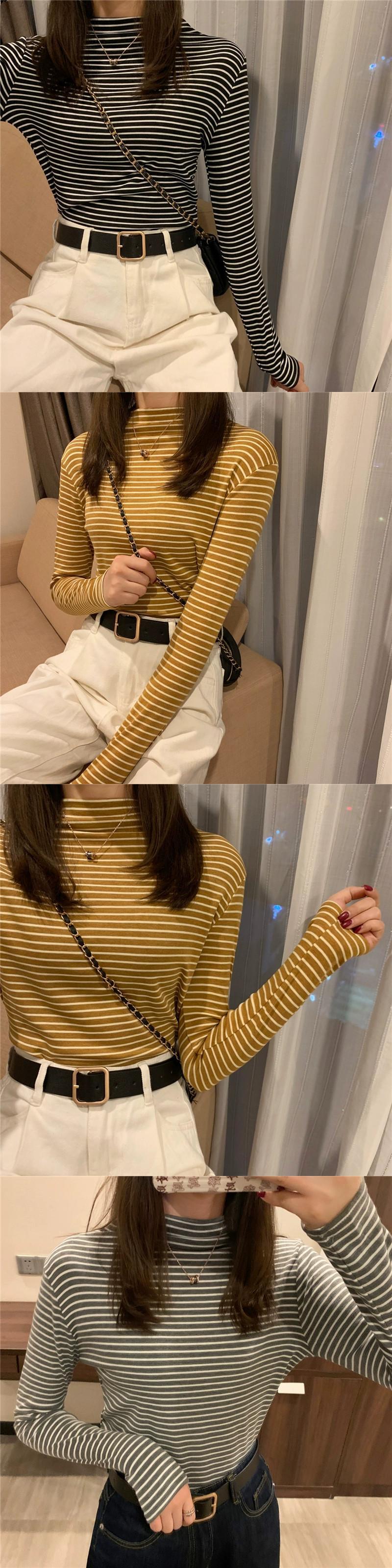 春と秋のベルベットハーフタートルネックボトムシャツレディース、起毛暖かいトップ、ファッショナブルでスリムフィット、ストライプ長袖Tシャツ、トレンディ ロング スプリング 春物 オータム 秋物 7460096366298950 | framboise21
