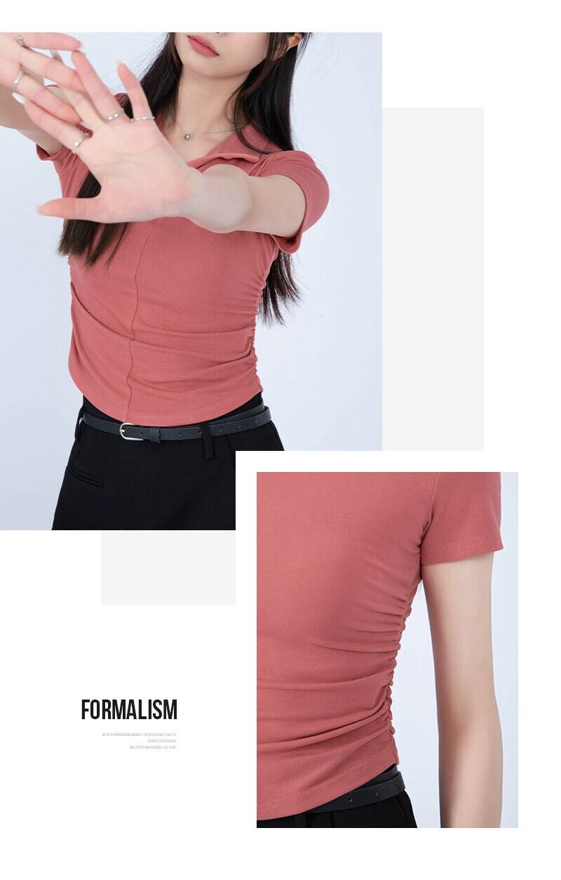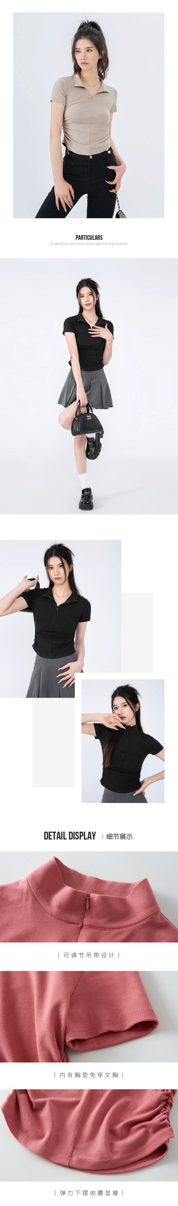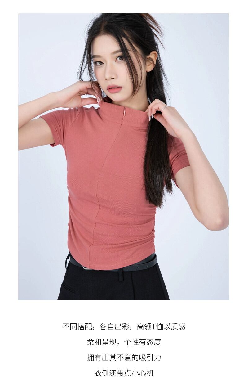 夏用のジッパー付きハーフハイカラー半袖Tシャツ、ファッショナブルでシックなデザイン、スリムで不規則なショートショルダートップ レッド サマー 夏物 7460011327574702 | framboise21