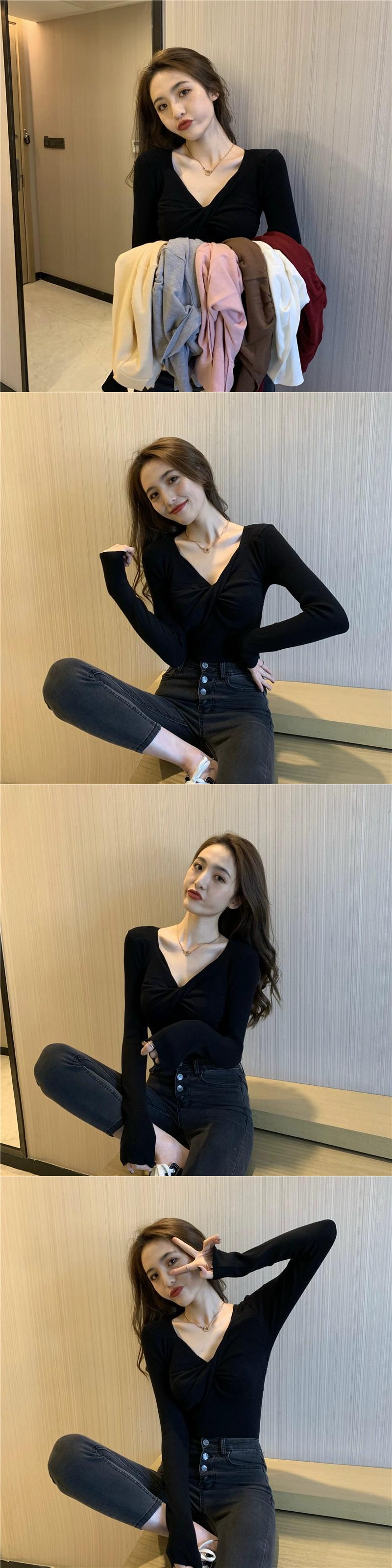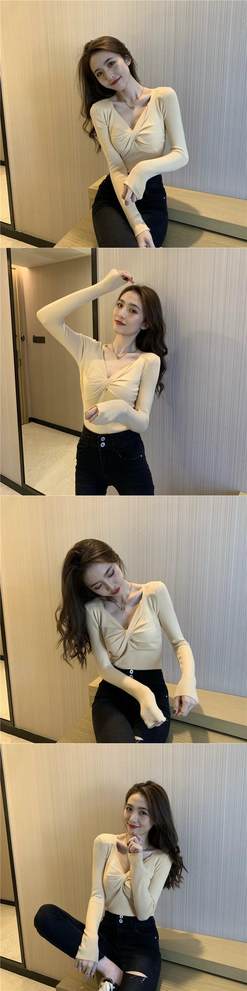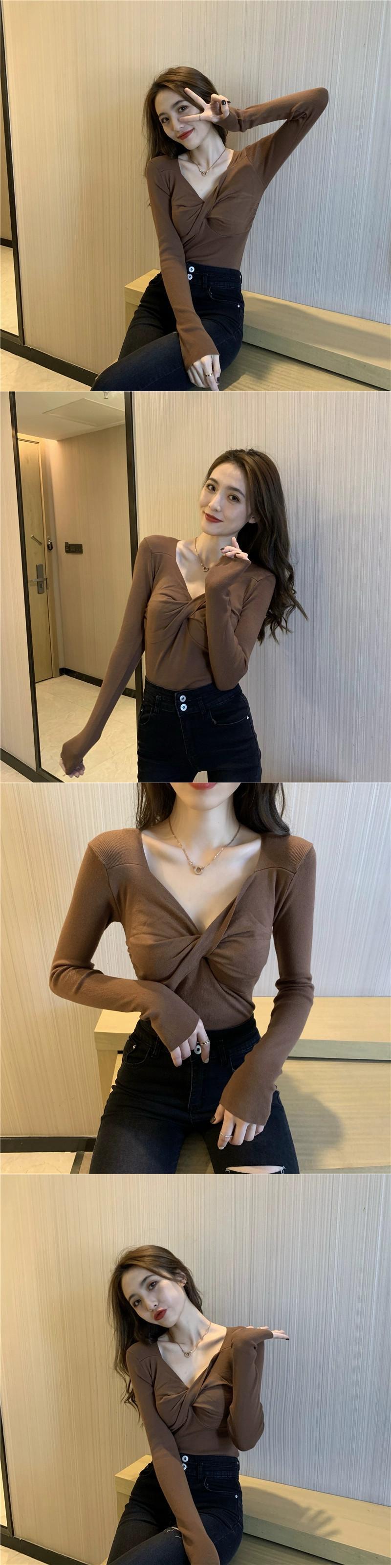 春と秋の V ネック ボトリング シャツ女性、ニット セーター、茶色のデザイン、ファッショナブルなクロス、セクシーなトップ スプリング 春物 オータム 秋物 Vネック 7460083926863478 | framboise21