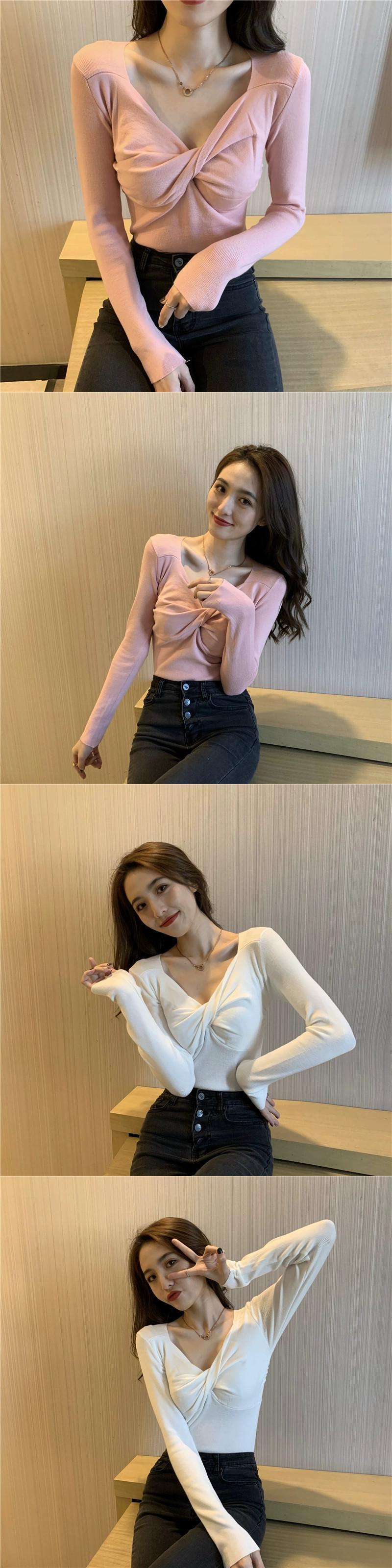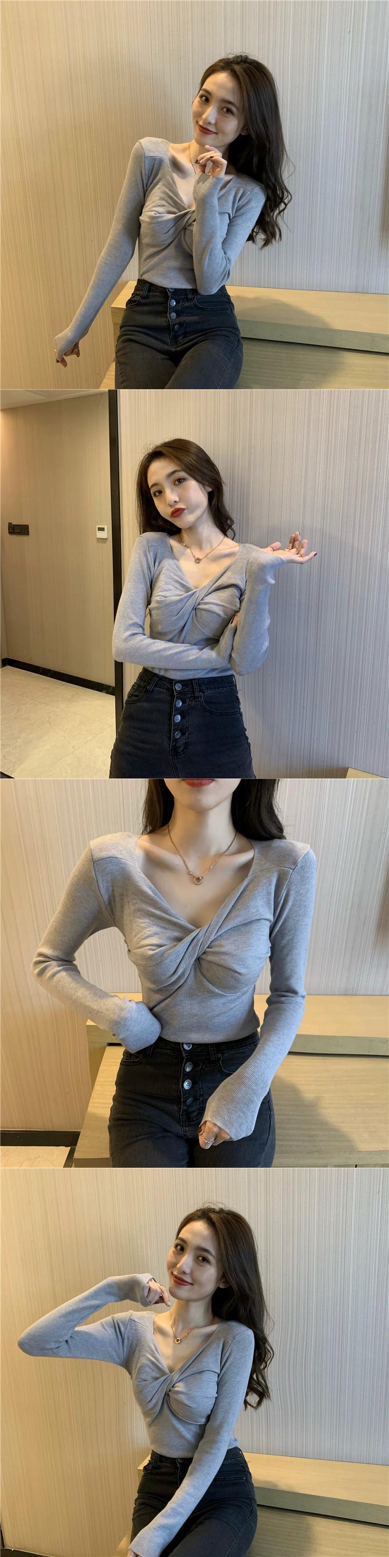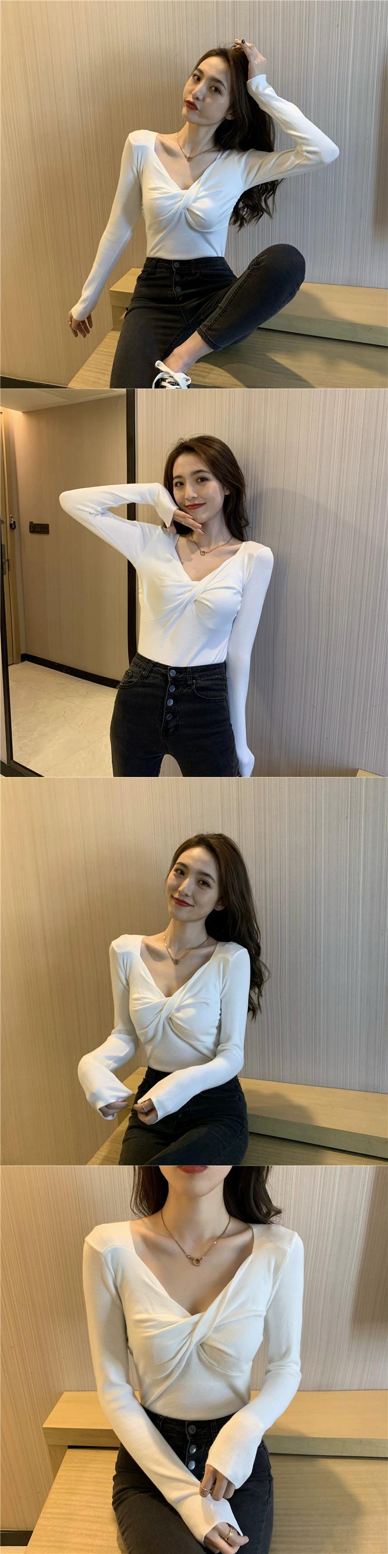 春と秋の V ネック ボトリング シャツ女性、ニット セーター、茶色のデザイン、ファッショナブルなクロス、セクシーなトップ スプリング 春物 オータム 秋物 Vネック 7460083926863478 | framboise21