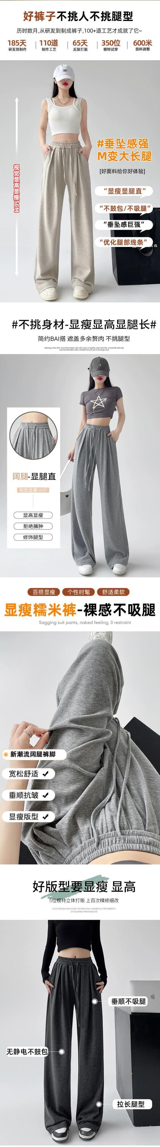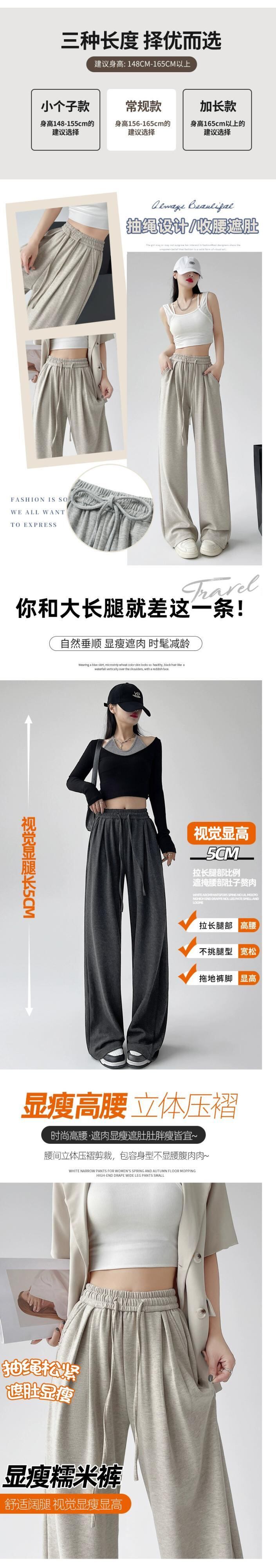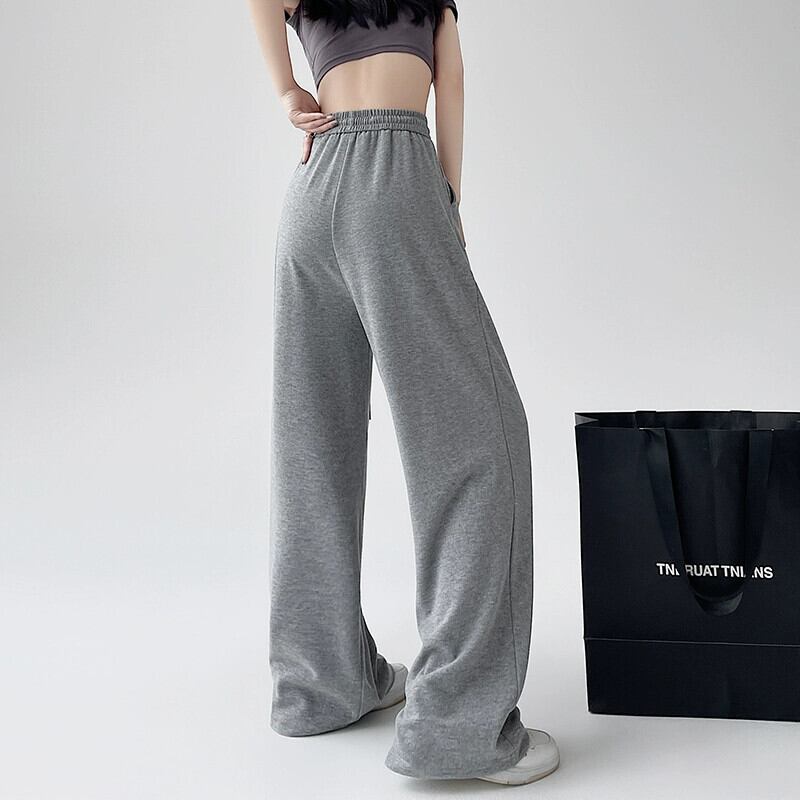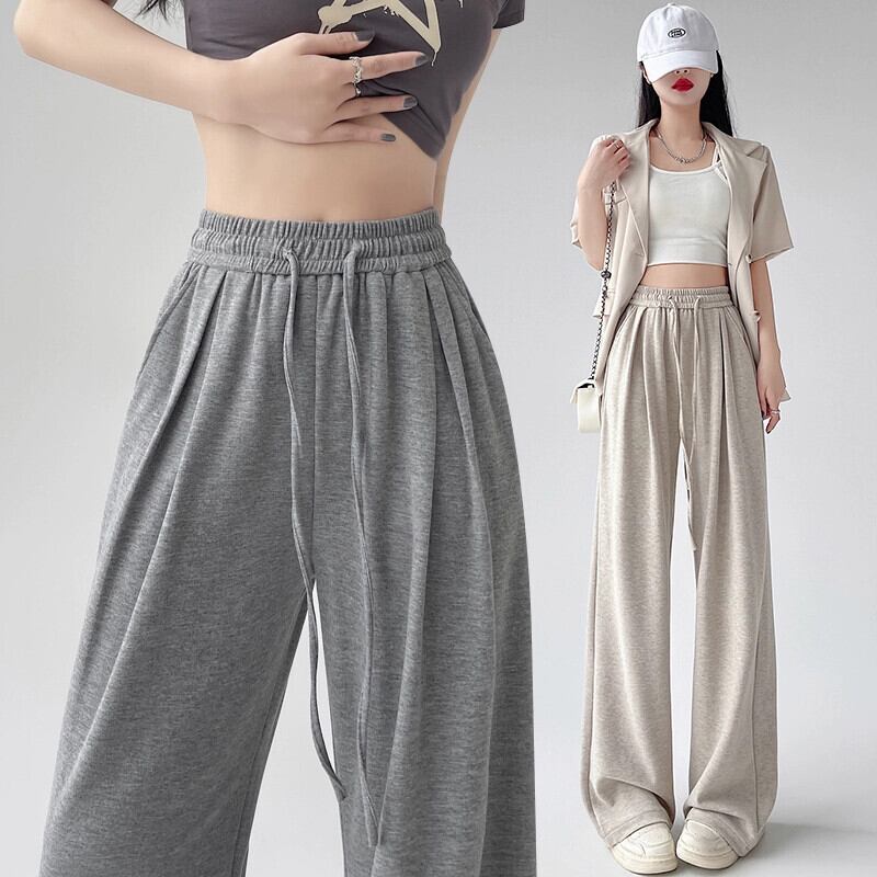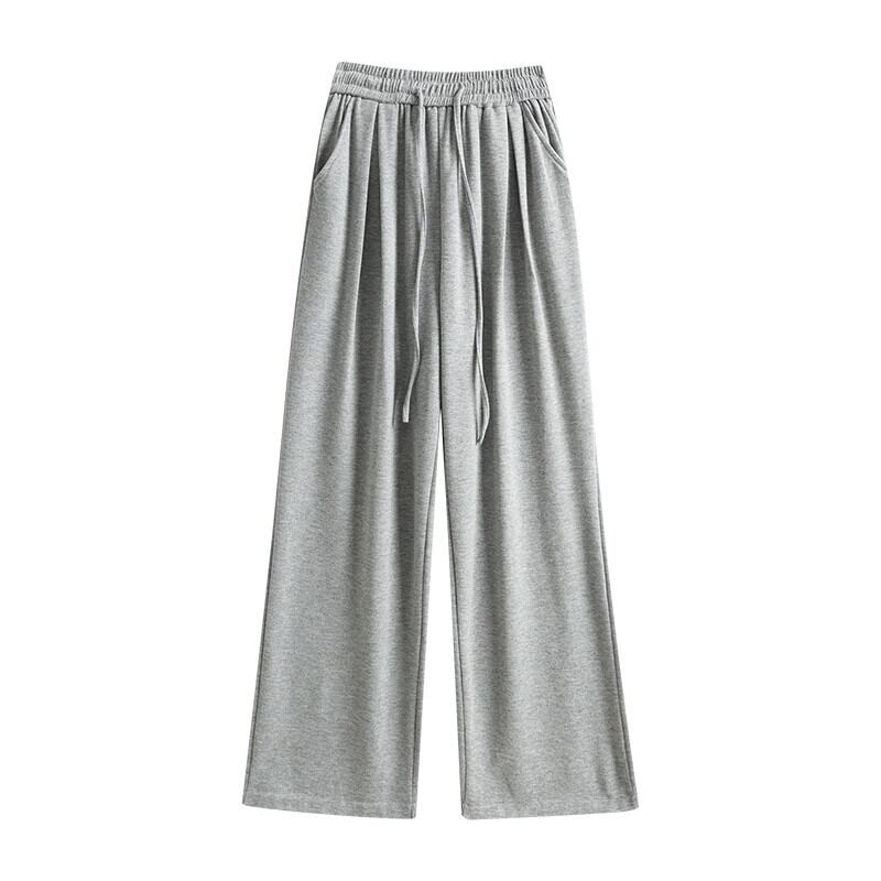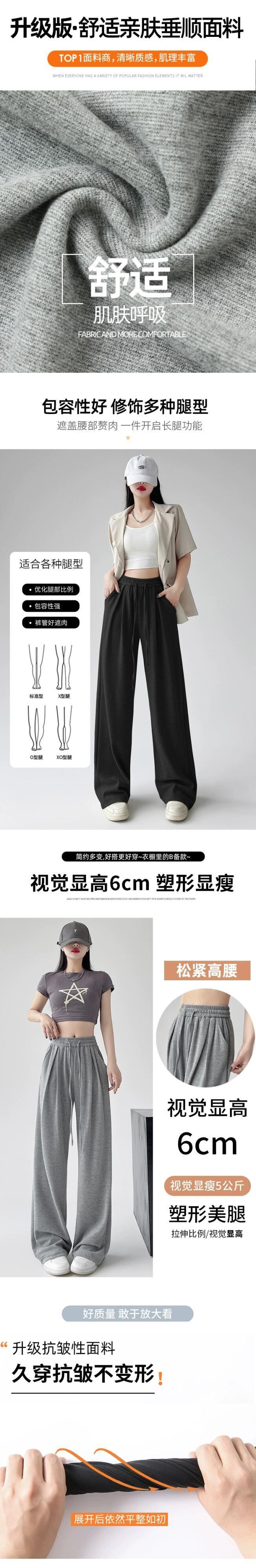 グレーの狭いストレートレッグワイドレッグパンツの女性の春と夏の弾性ハイウエストドレープルーズスリムファッションフロアレングスカジュアルパンツ エラスティック 伸縮 スプリング 春物 サマー 夏物 7460094727108918 | framboise21