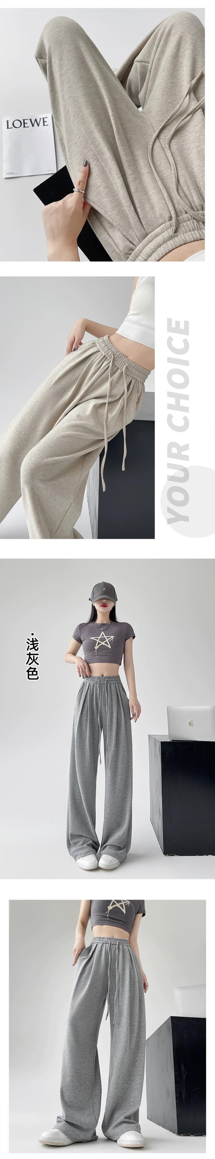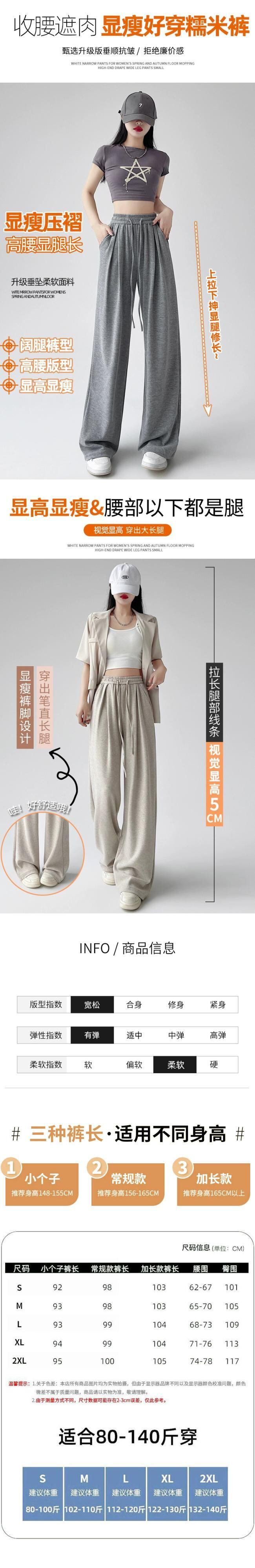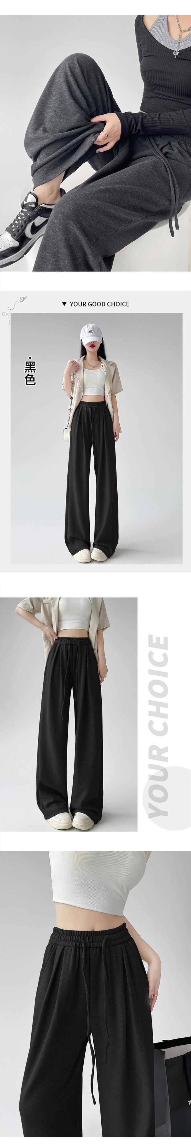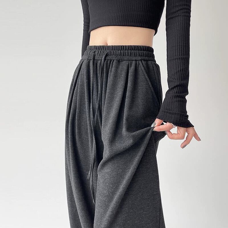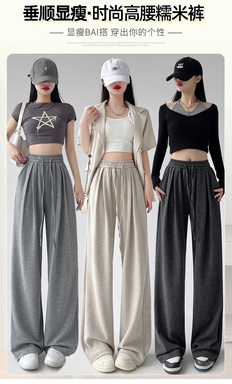 グレーの狭いストレートレッグワイドレッグパンツの女性の春と夏の弾性ハイウエストドレープルーズスリムファッションフロアレングスカジュアルパンツ エラスティック 伸縮 スプリング 春物 サマー 夏物 7460094727108918 | framboise21