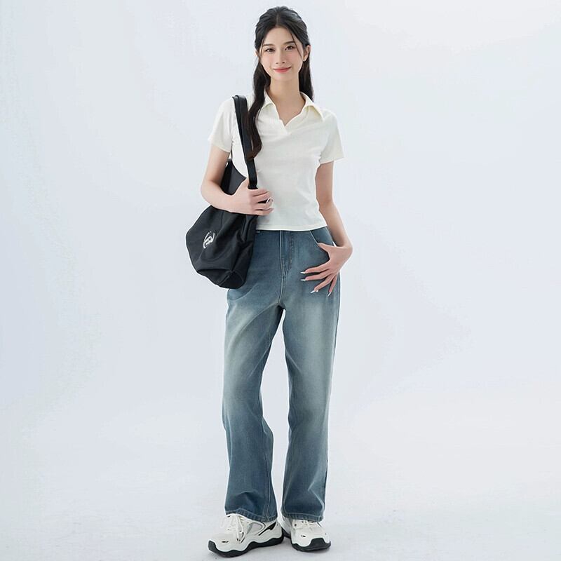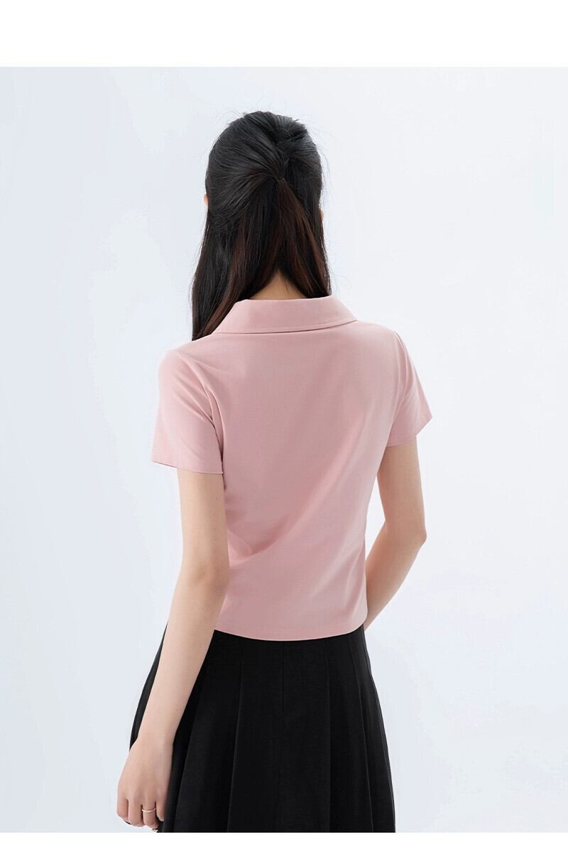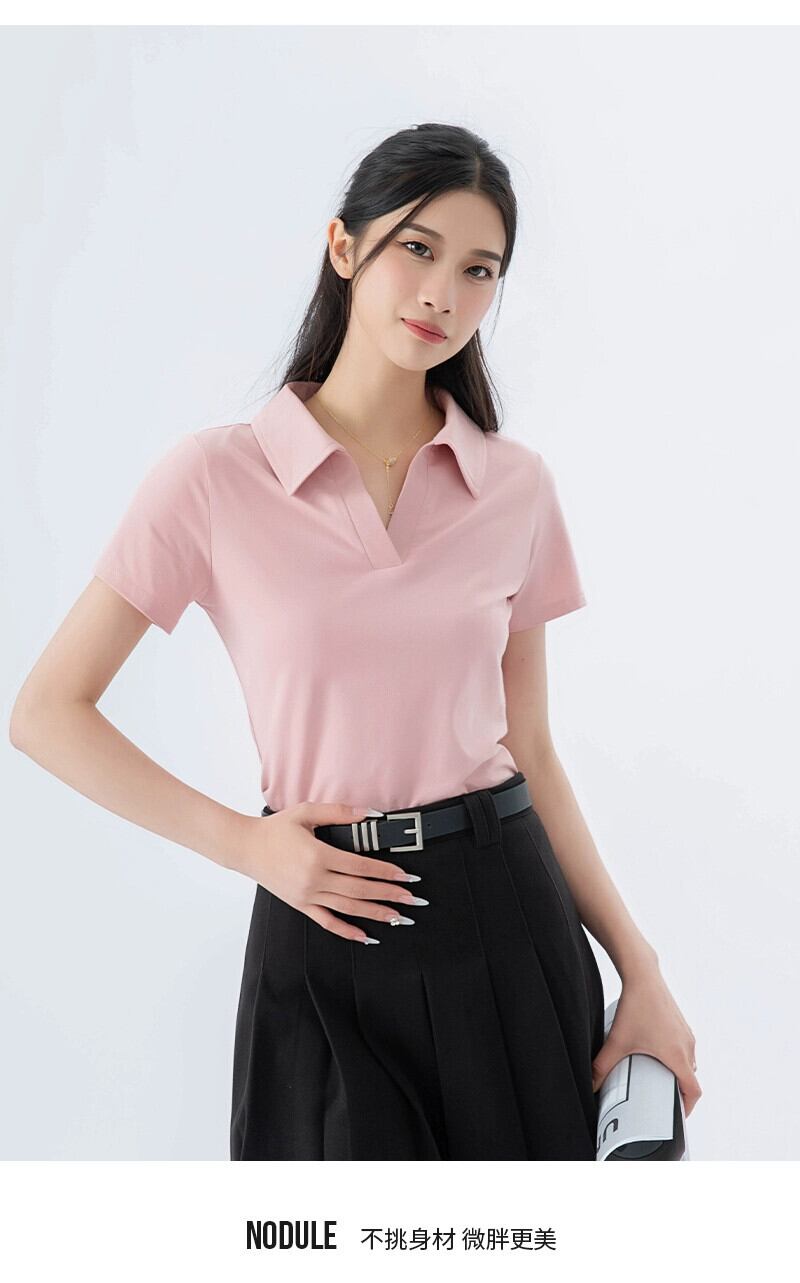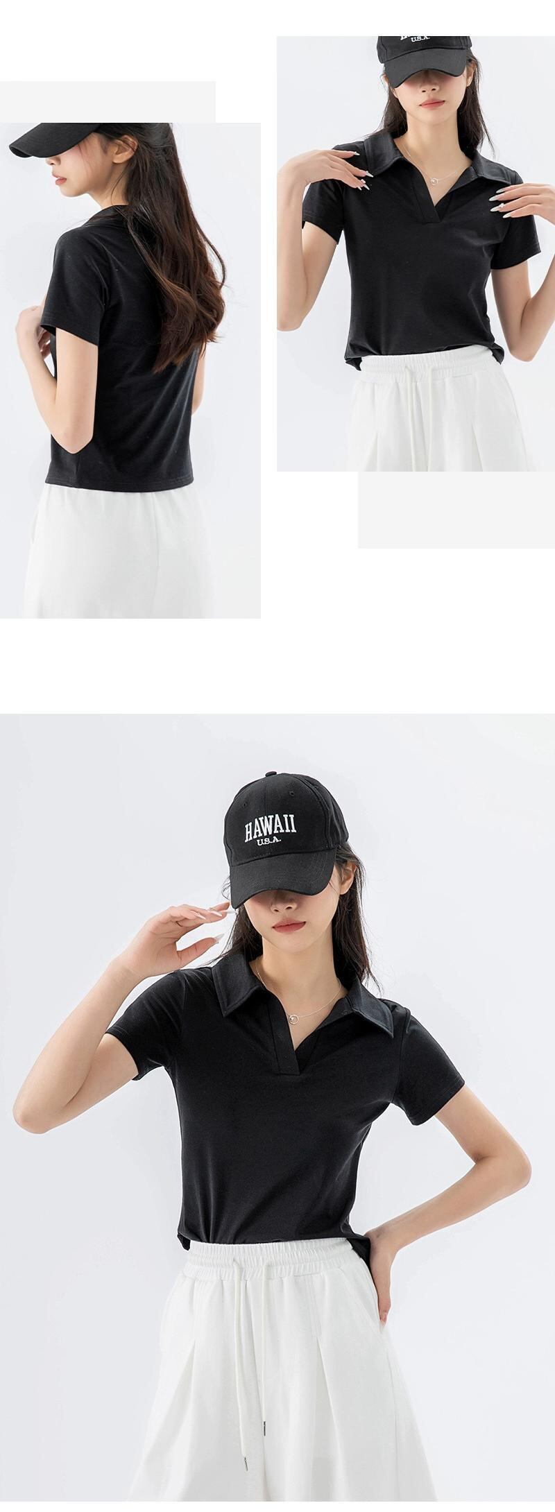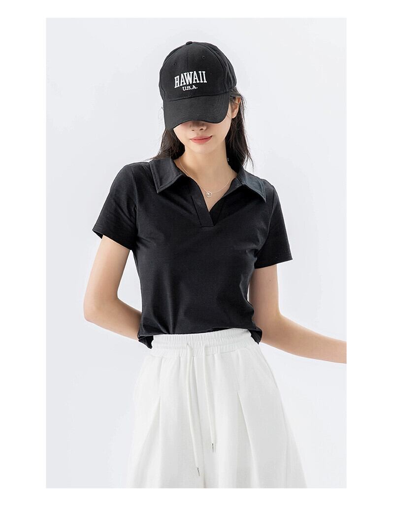 純粋な綿半袖 tシャツ女性の夏の新しいスタイル白ラペルポロカラーデザインスリムショート右肩トップトレンディ ホワイト コットン サマー 夏物 7460075092620114 | framboise21