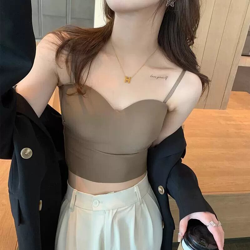 シームレスなアイスシルクキャミソール女性の夏のインナーウェア美しいサスペンダー胸パッド下着セクシーなアウターウェアショートボトミングトップ サマー 夏物 7460097457957340 | framboise21