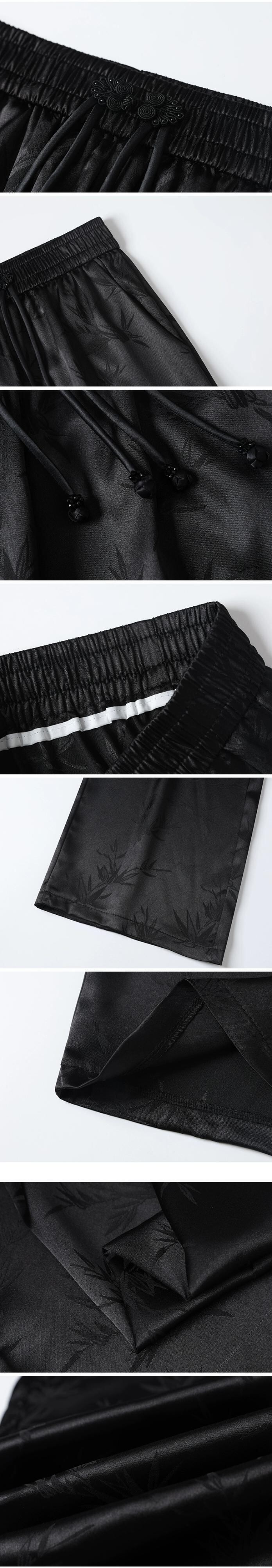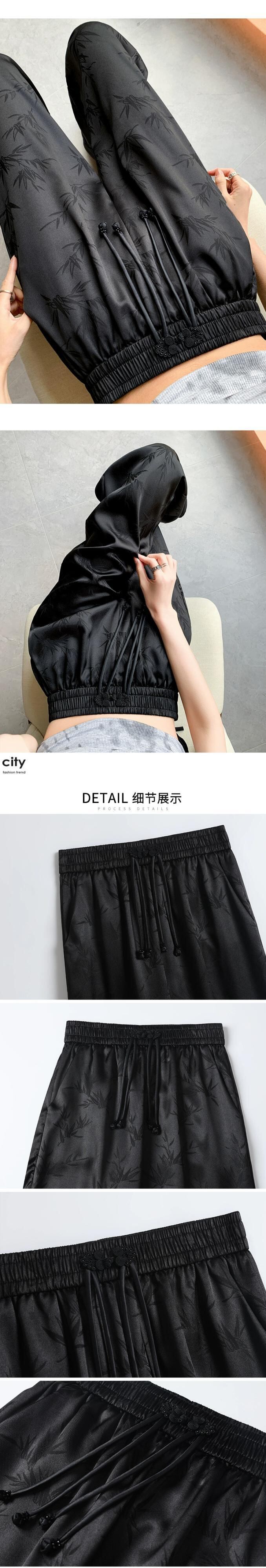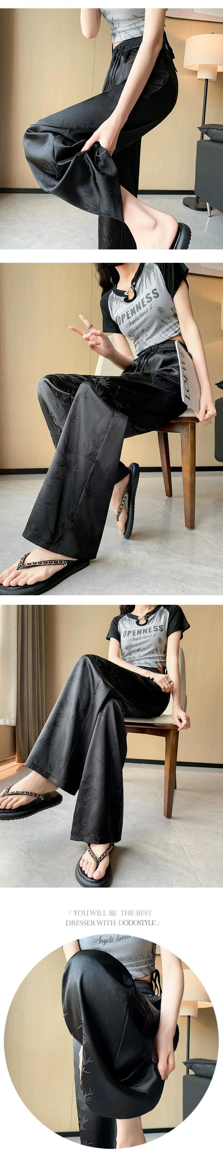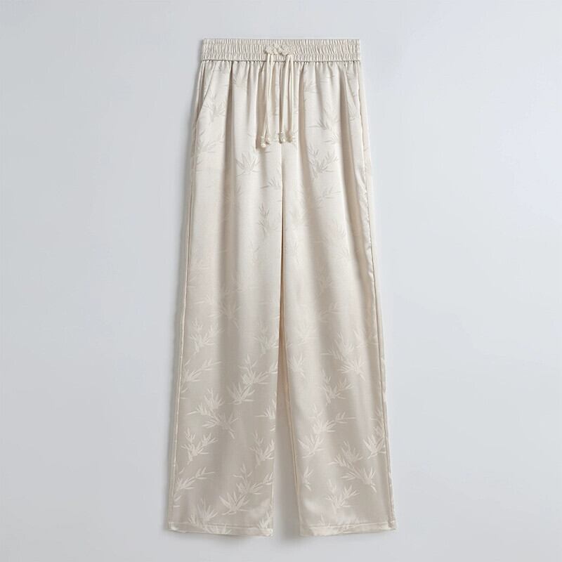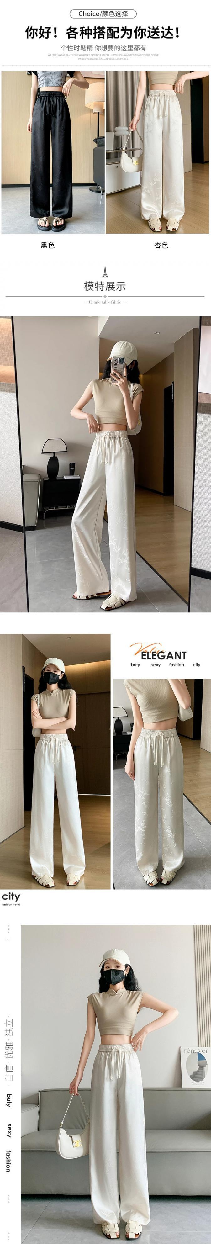 中国風の中国風のボタンアップパンツの女性の夏、薄いジャカードシルクのワイドレッグパンツ、ハイウエストのドレープストレートカジュアルパンツ サマー 夏物 7460025208524515 | framboise21