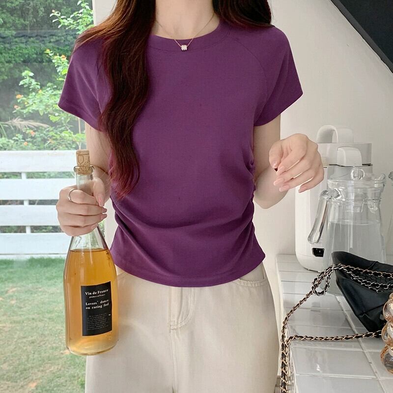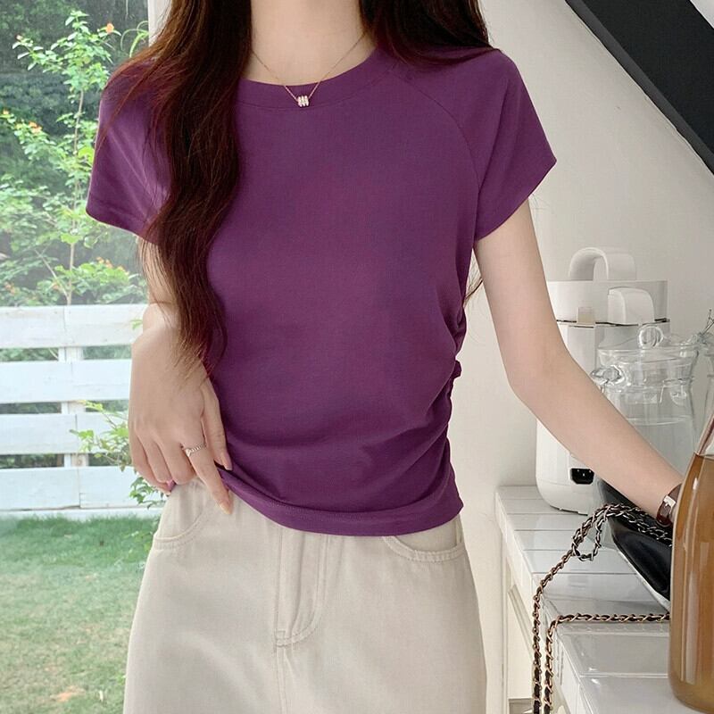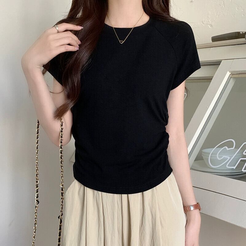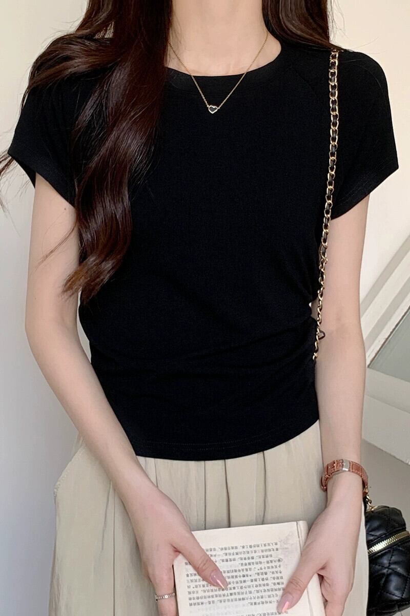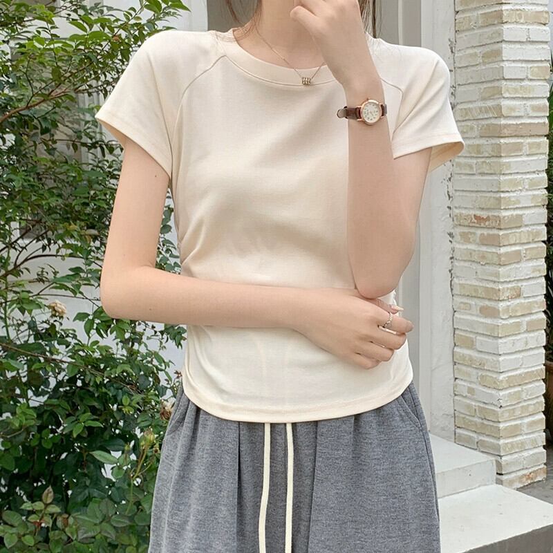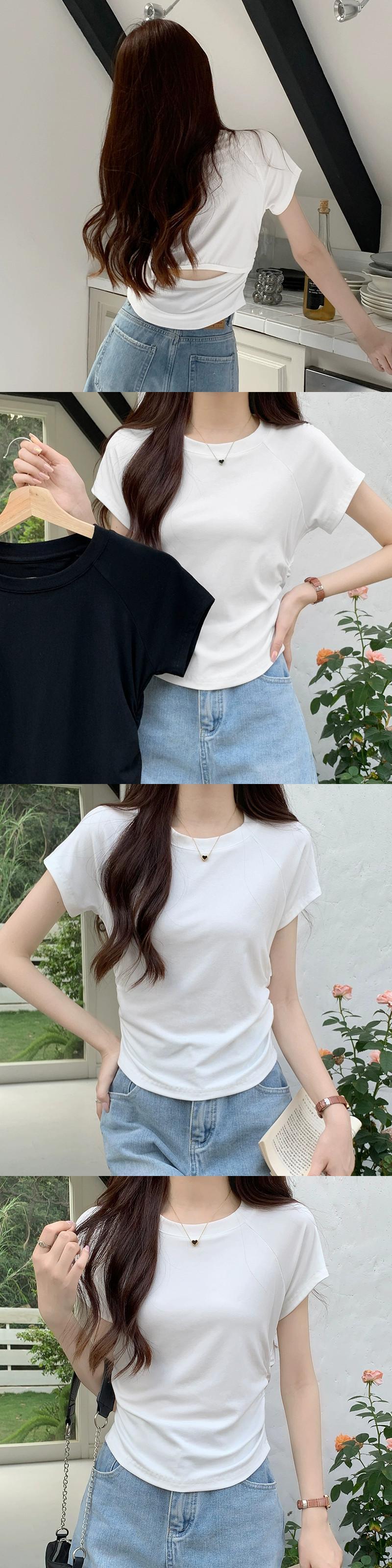 夏の不規則な半袖コットン T シャツの女性、ファッショナブルでユニークなデザイン、中空バック ショート ラグラン スリーブ トップ サマー 夏物 Tシャツ 746004883288280 | framboise21
