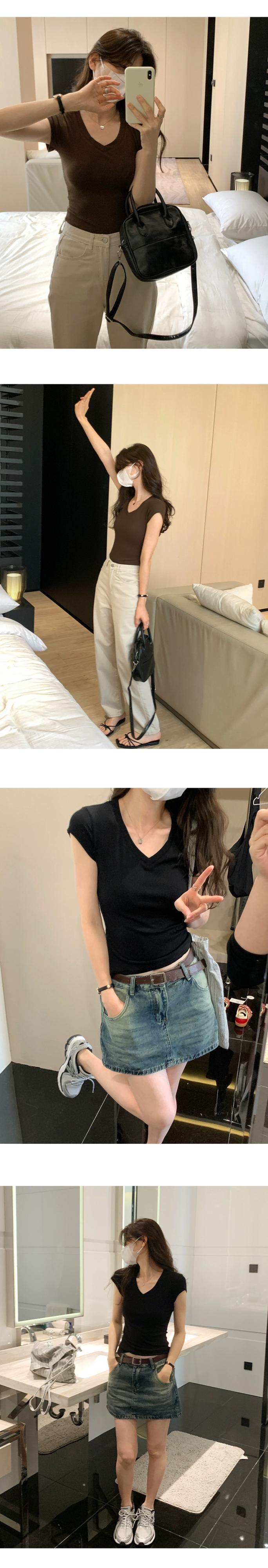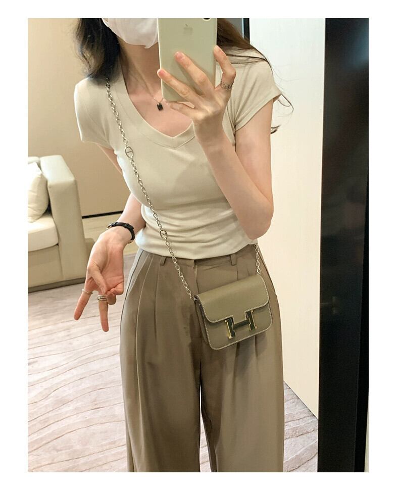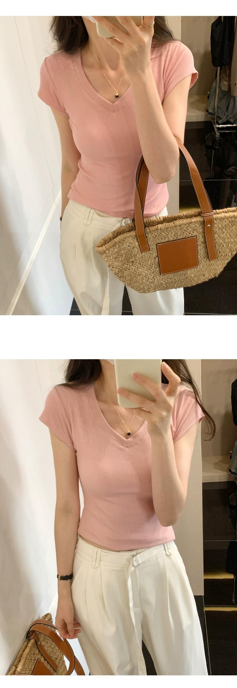純粋な綿の右肩半袖 T シャツの女性の夏、ハイエンド、スリムで多用途、基本的なロー V ネック トップ グレー コットン サマー 夏物 Vネック Tシャツ 7460050657604333 | framboise21