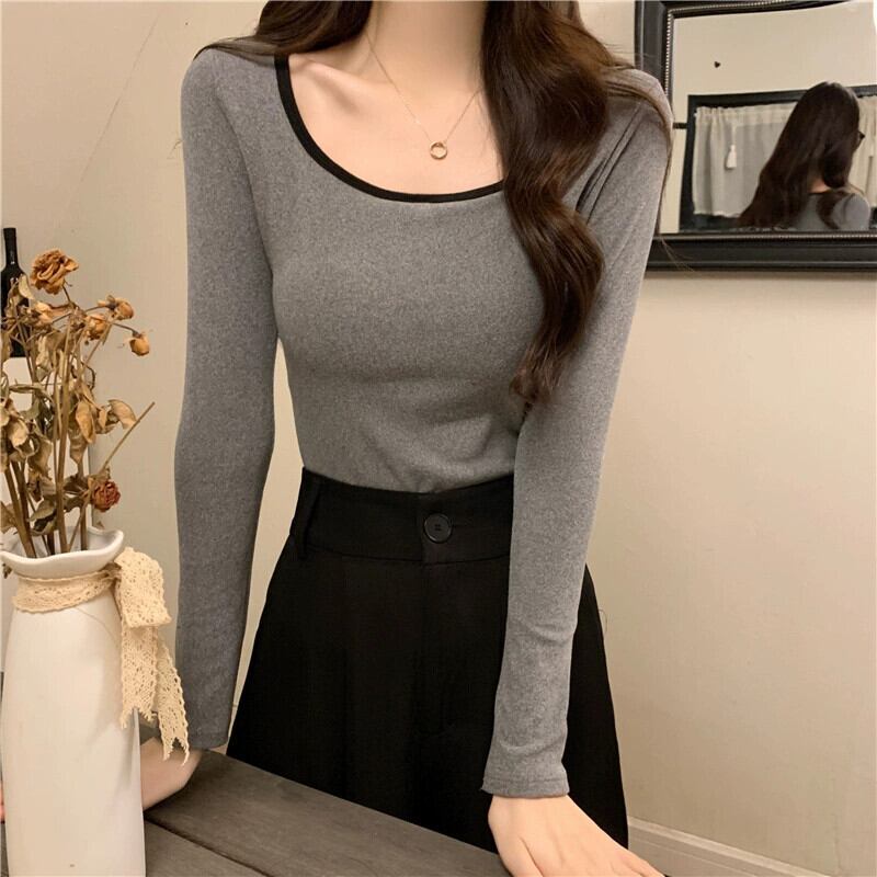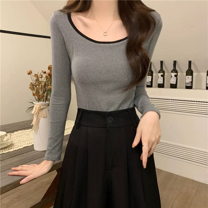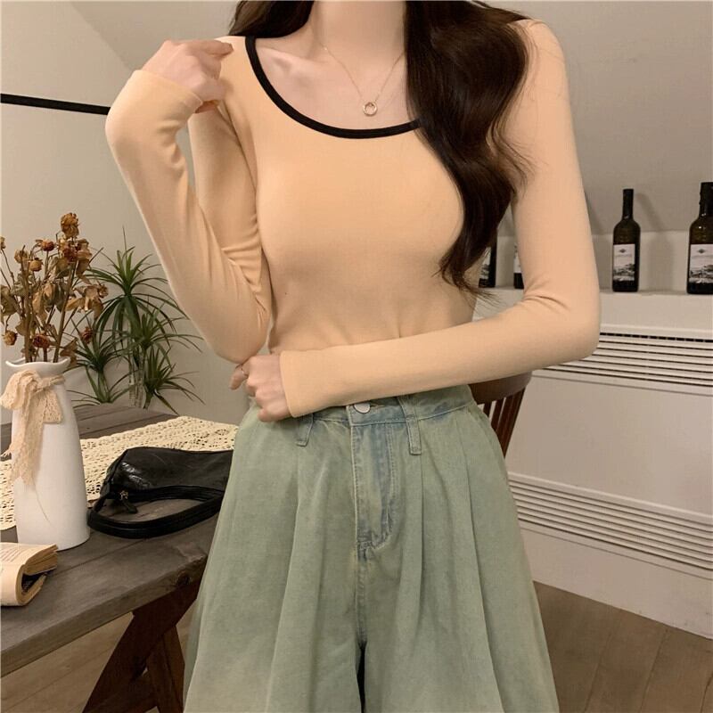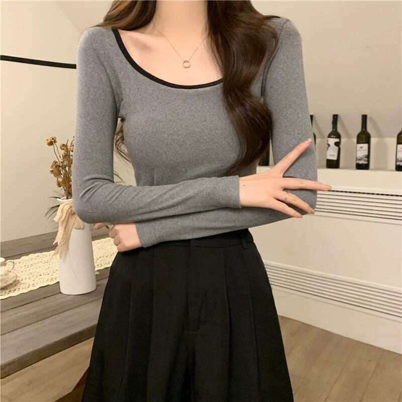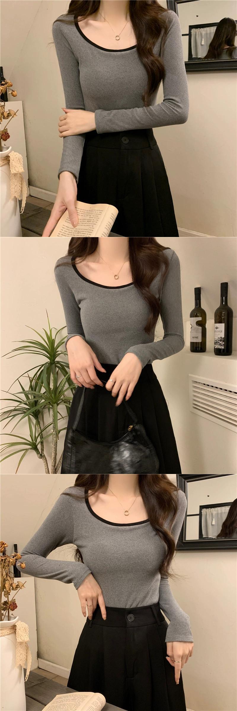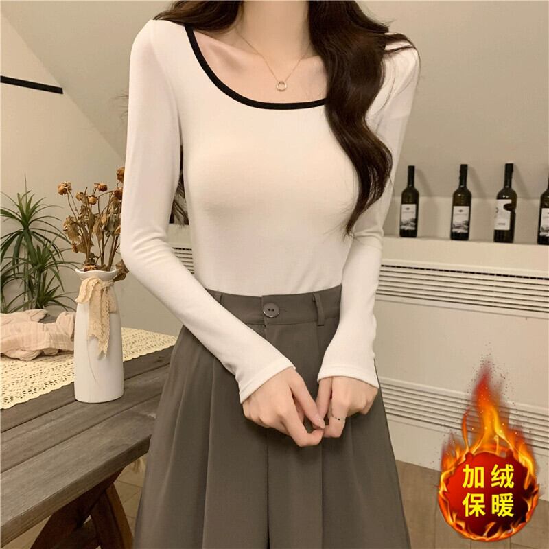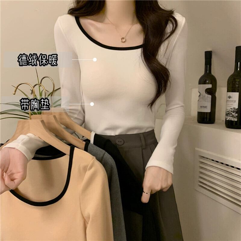 冬用の厚みのあるベルベットのボトムシャツ、胸パッド付きの体にぴったりとフィットする暖かい衣類、スリムフィットの首の低い長袖Tシャツ ロング ウィンター 冬物 7460020210240478 | framboise21