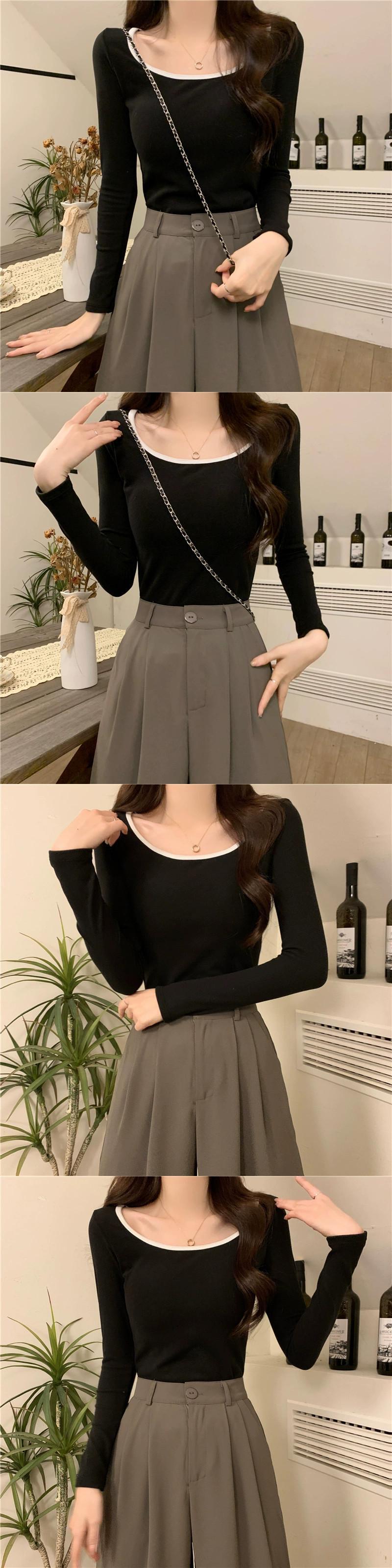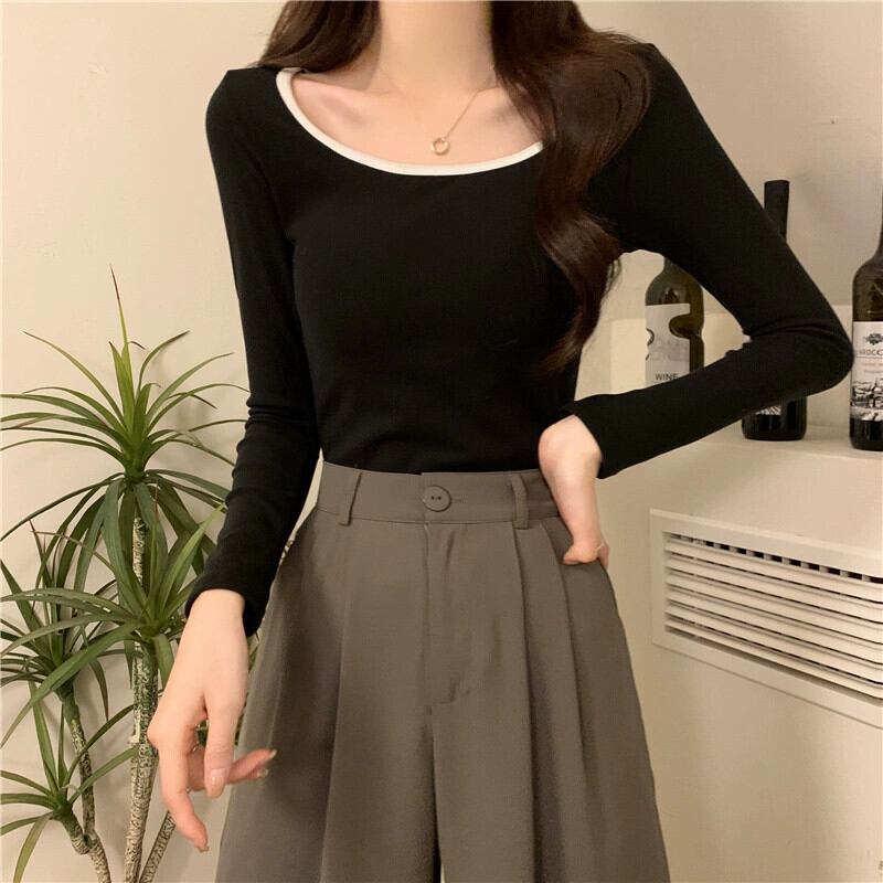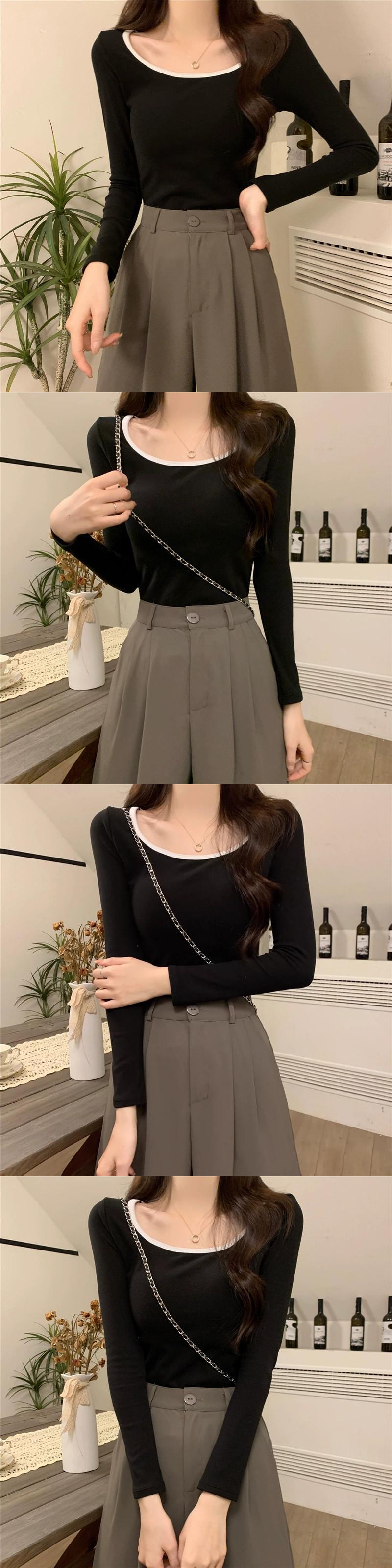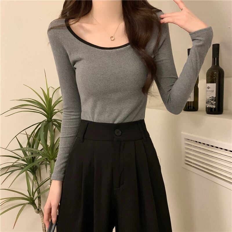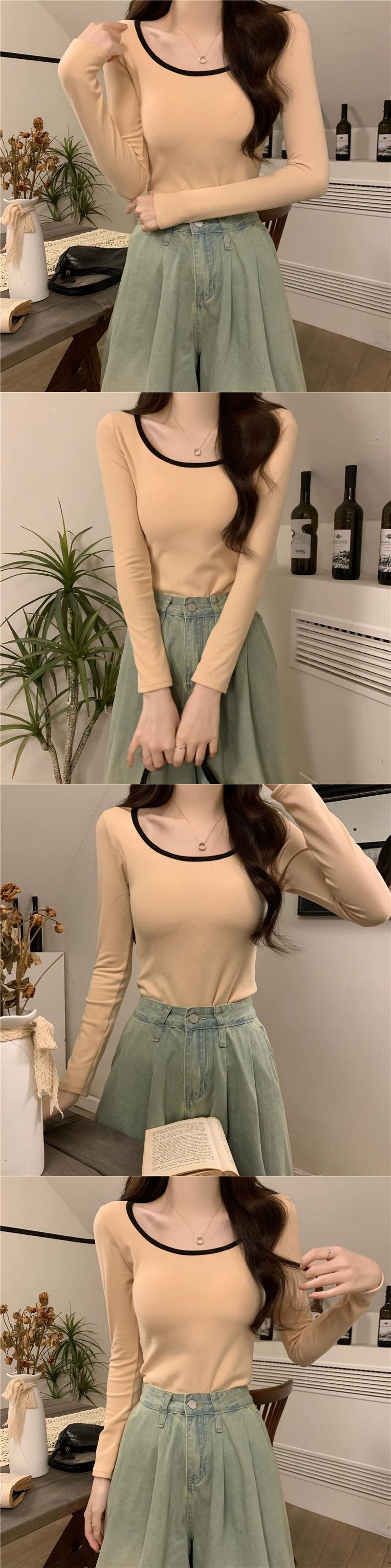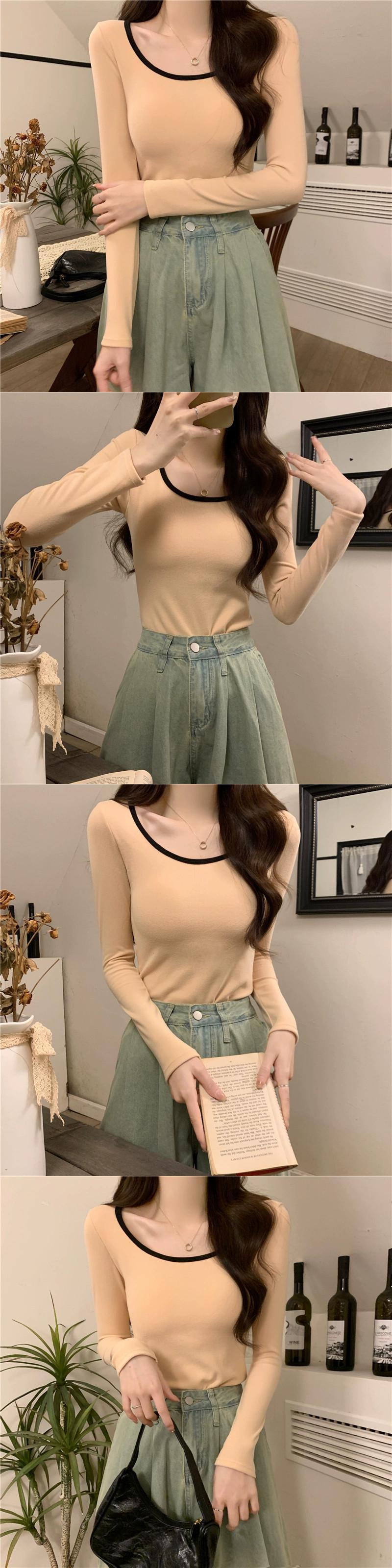 冬用の厚みのあるベルベットのボトムシャツ、胸パッド付きの体にぴったりとフィットする暖かい衣類、スリムフィットの首の低い長袖Tシャツ ロング ウィンター 冬物 7460020210240478 | framboise21