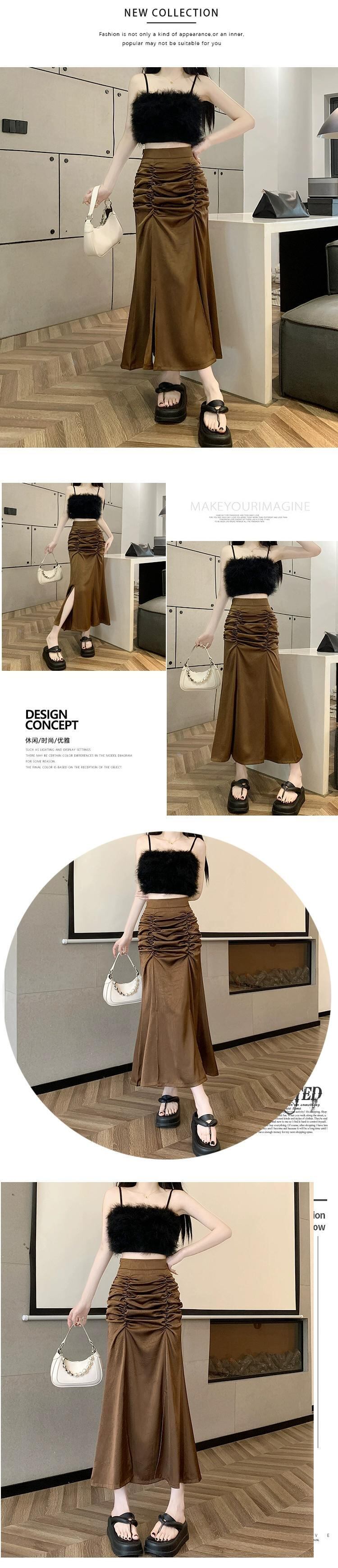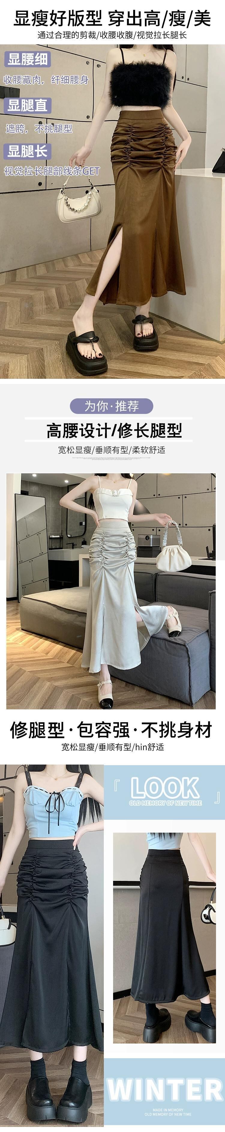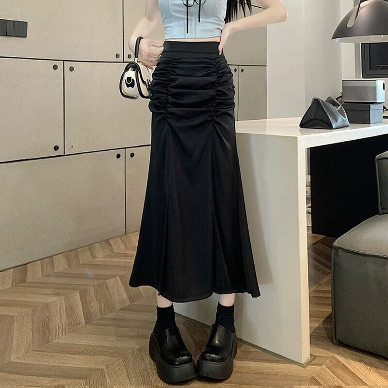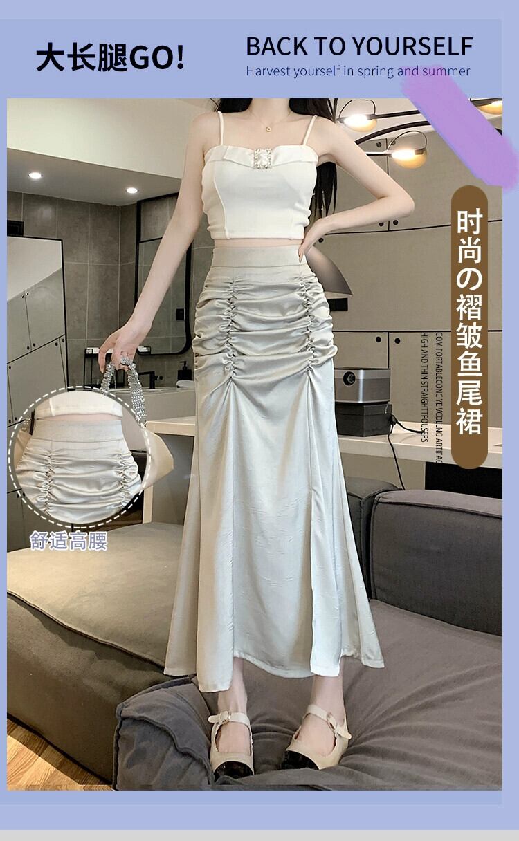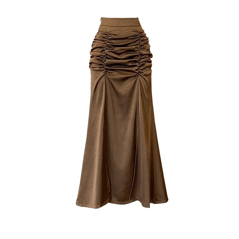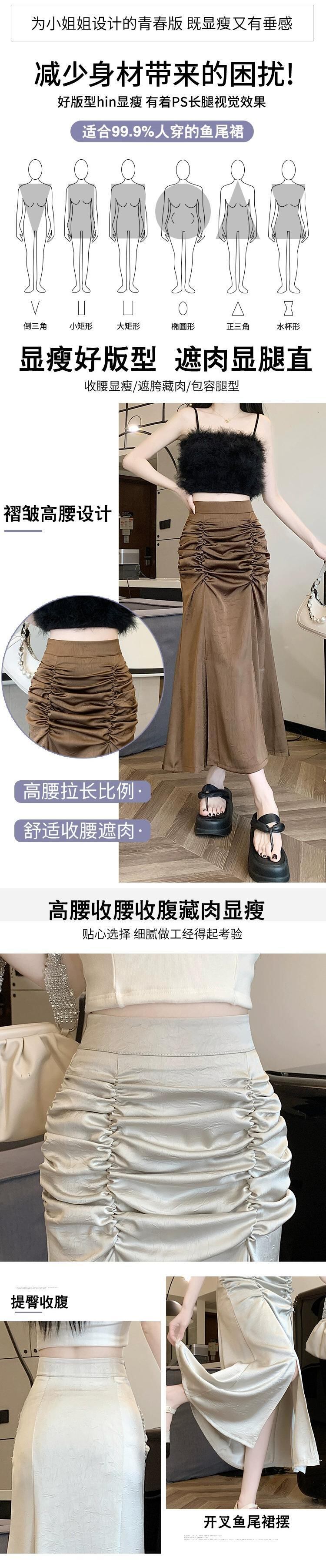 中国風の国民風ジャカードサテンスカート女性の夏のハイウエスト痩身Aラインプリーツスリットヒップカバーフィッシュテールスカート ハイウェスト サマー 夏物 7460074493266786 | framboise21