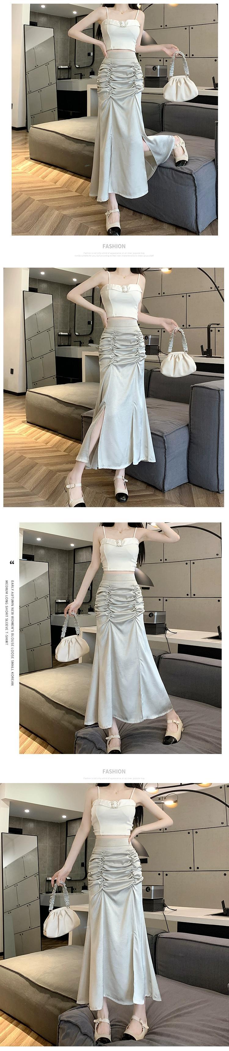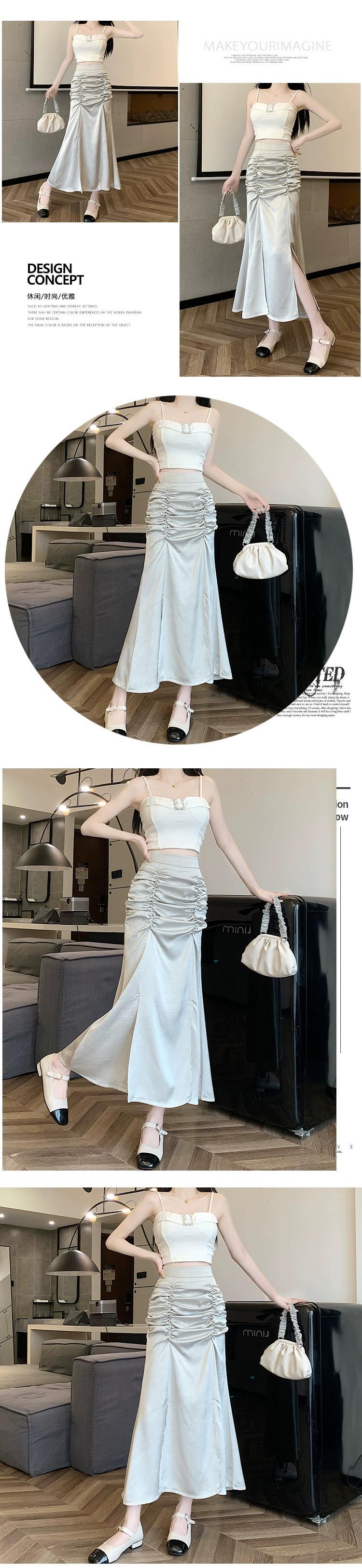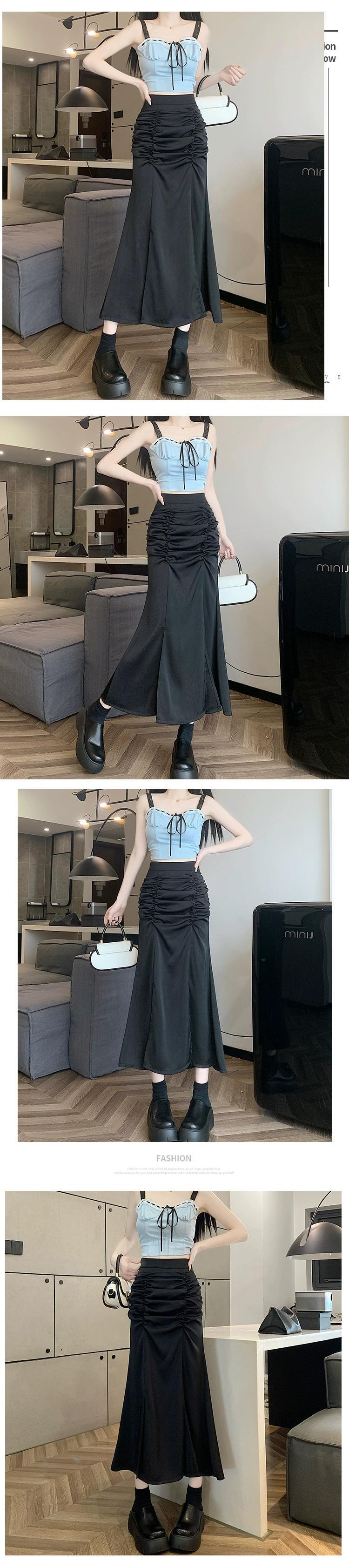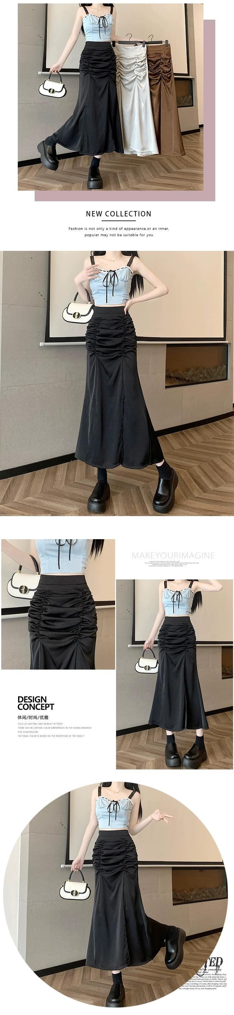 中国風の国民風ジャカードサテンスカート女性の夏のハイウエスト痩身Aラインプリーツスリットヒップカバーフィッシュテールスカート ハイウェスト サマー 夏物 7460074493266786 | framboise21