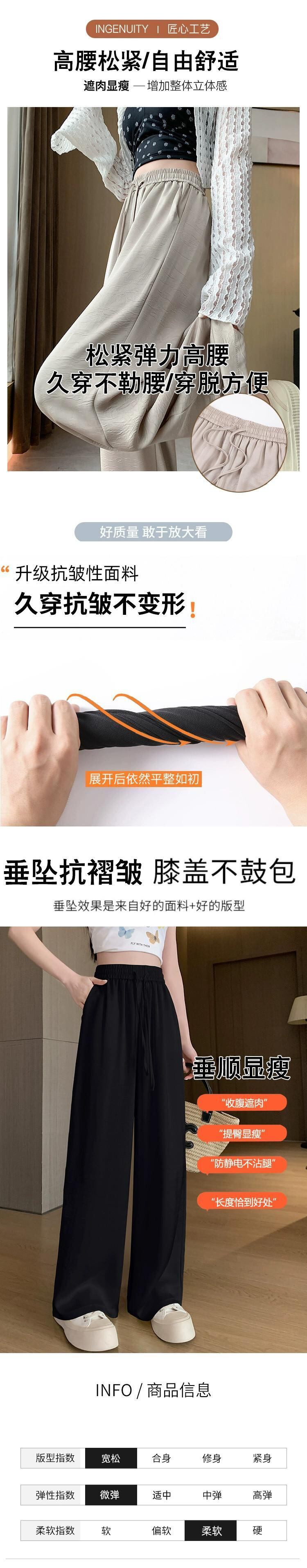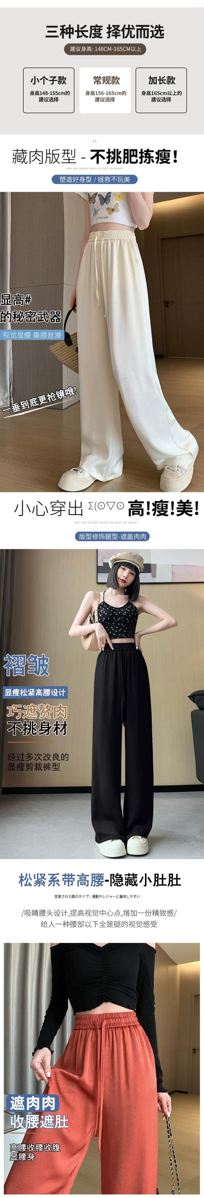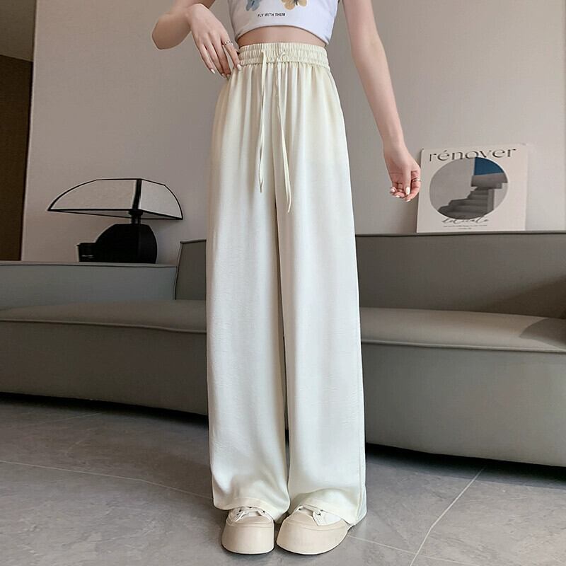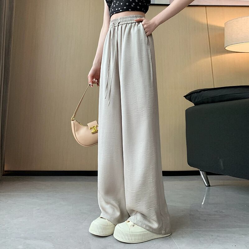 アイスシルクアセテートワイドレッグパンツレディース、夏の日焼け止めパンツ、ハイウエスト、スリム、ルーズ、フロアレングス、薄手、ストレートカジュアルパンツ サマー 夏物 7460088373091094 | framboise21