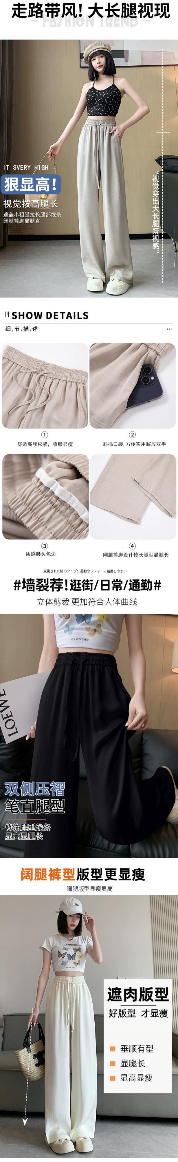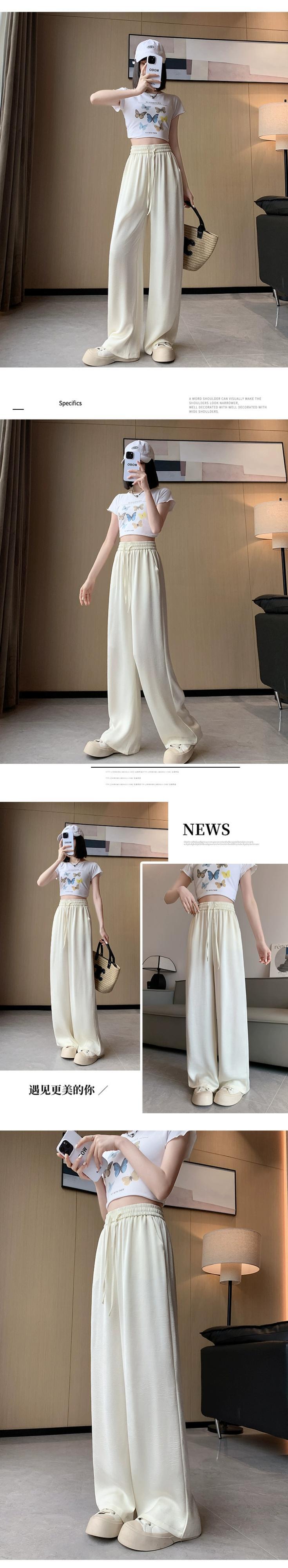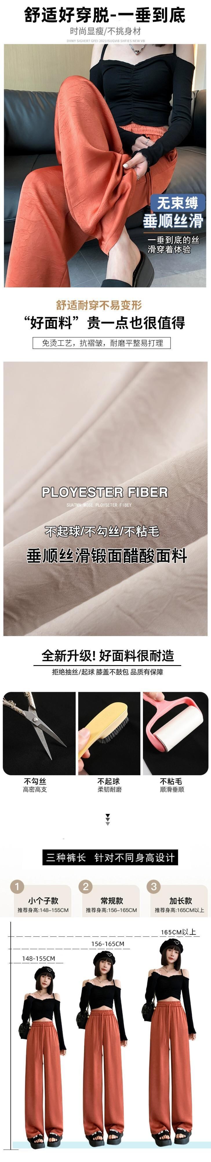アイスシルクアセテートワイドレッグパンツレディース、夏の日焼け止めパンツ、ハイウエスト、スリム、ルーズ、フロアレングス、薄手、ストレートカジュアルパンツ サマー 夏物 7460088373091094 | framboise21