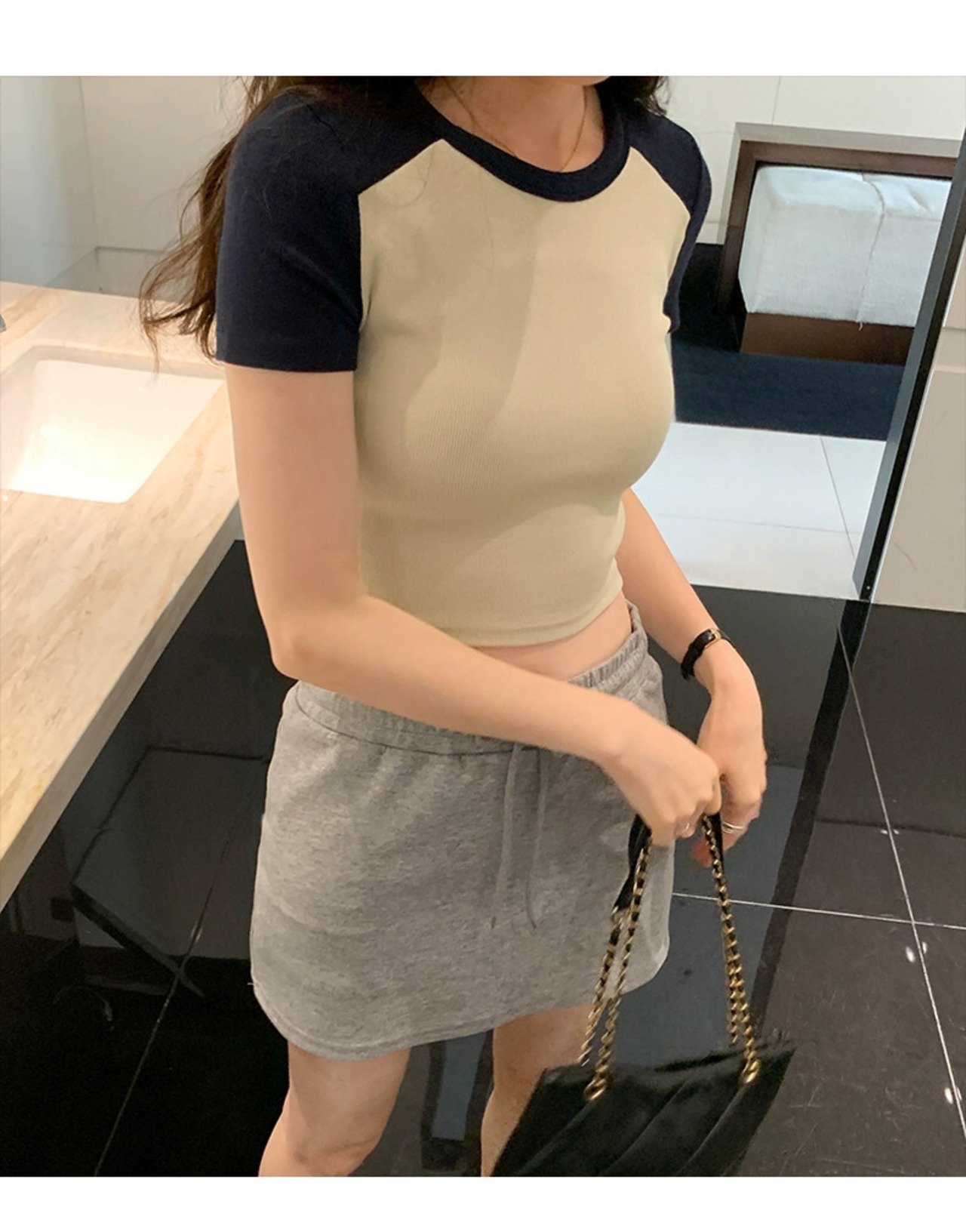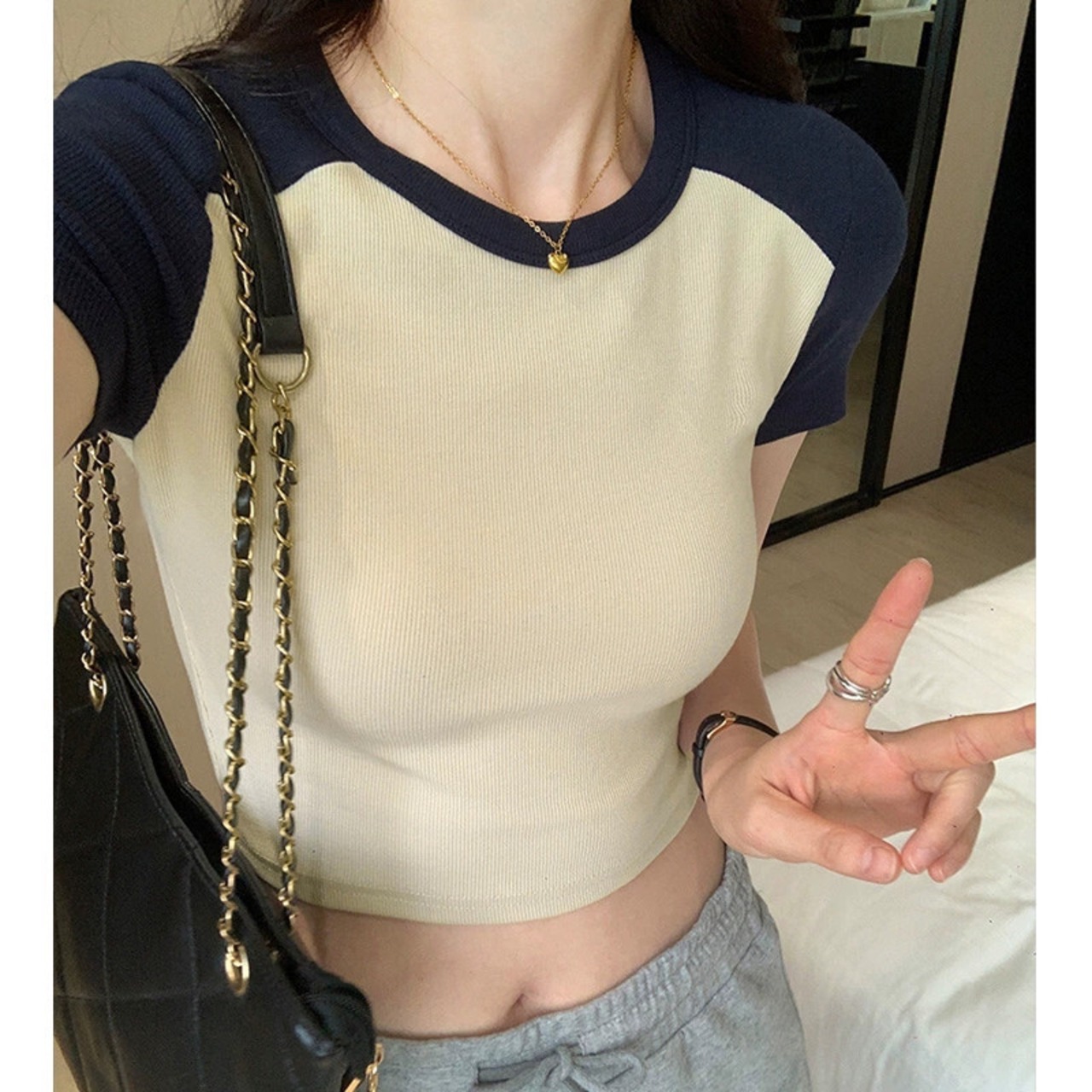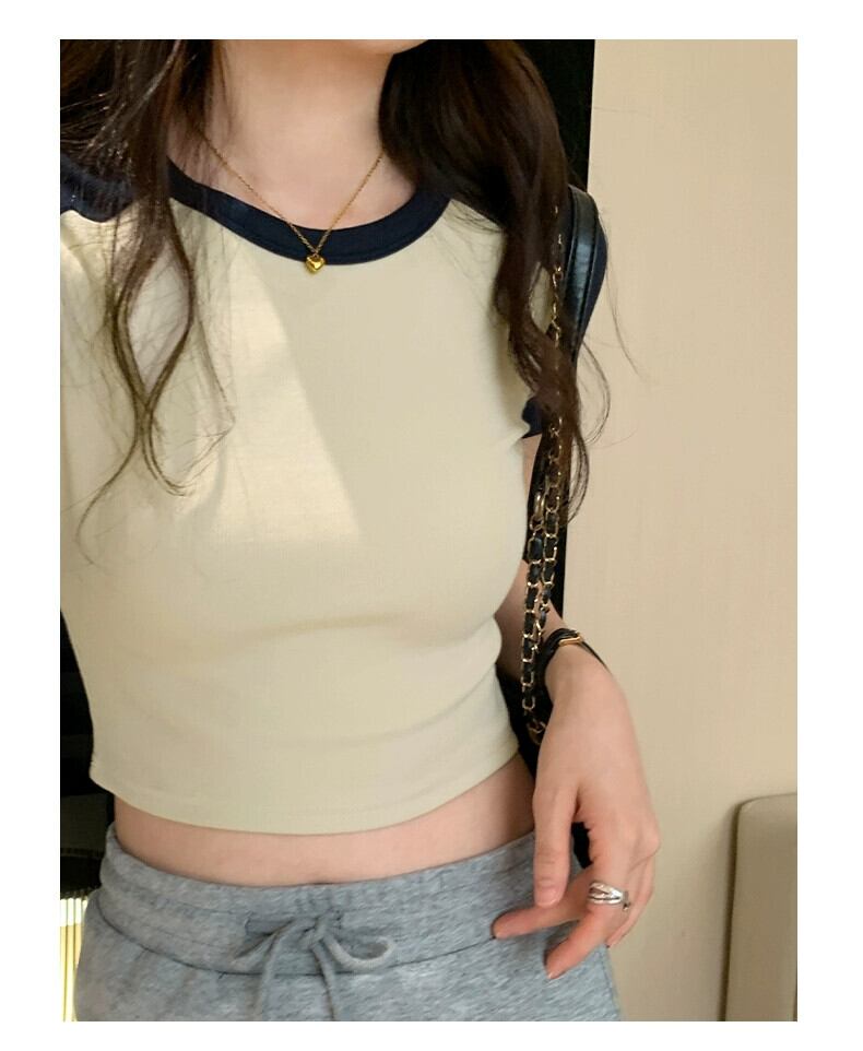 夏のアメリカのレトロなラグラン半袖 T シャツの女性、スリムでファッショナブルなおへそ出しハイウエスト ショート トップ トレンディです。 サマー 夏物 Tシャツ 7460037096213387 | framboise21