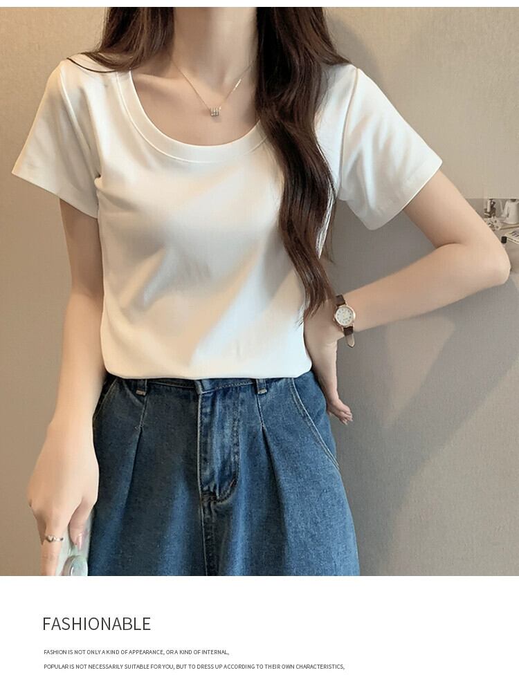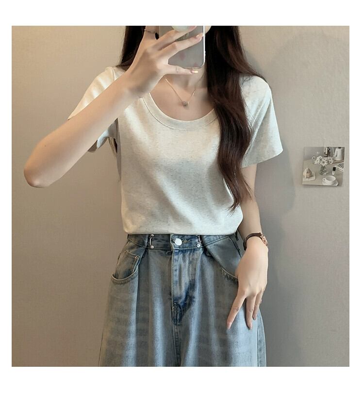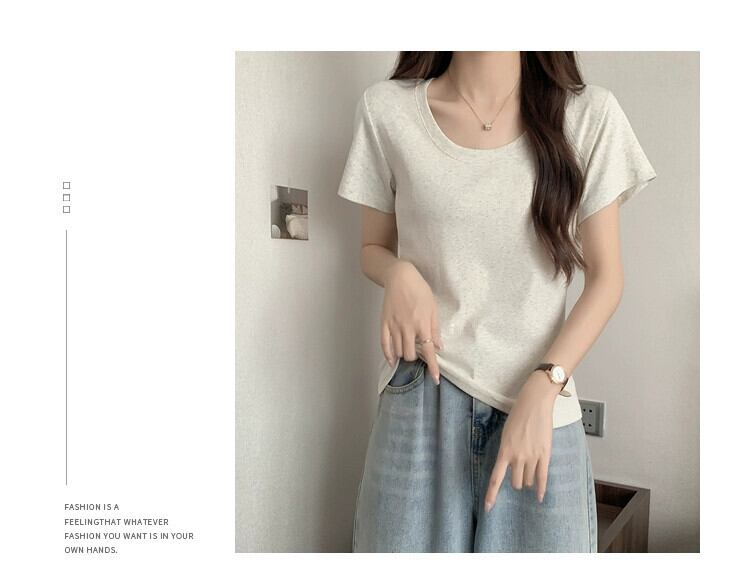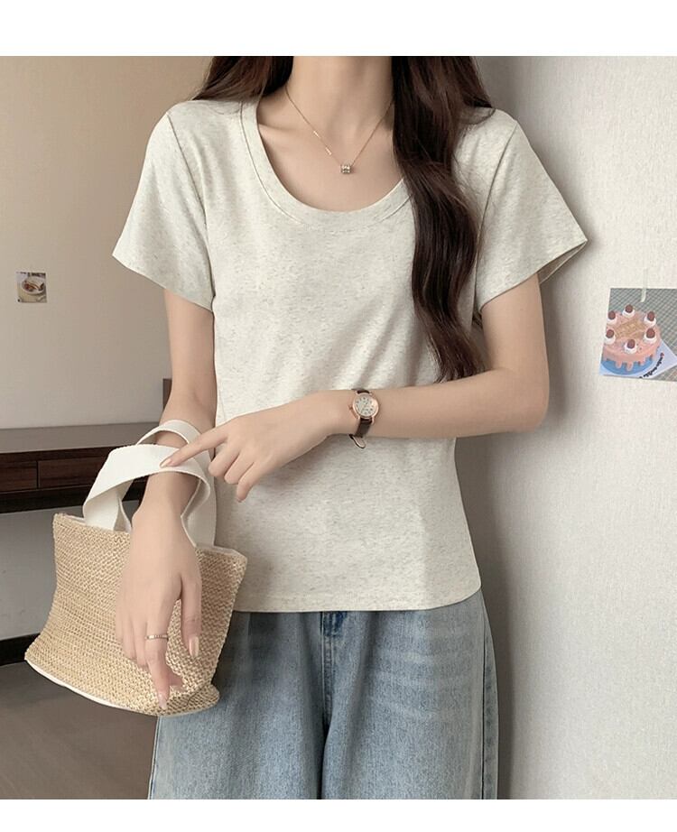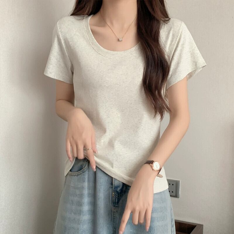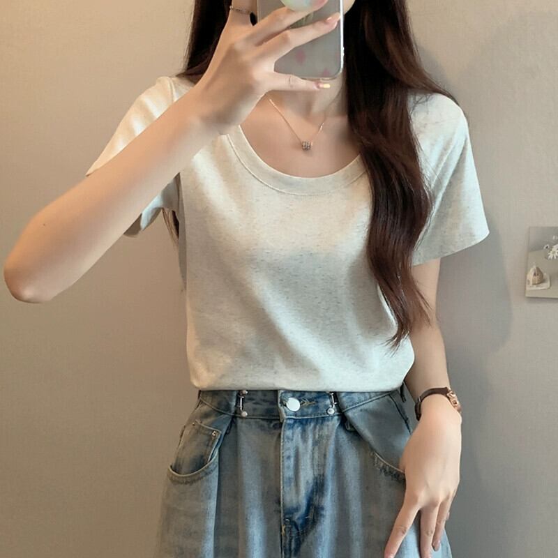 グレー右肩半袖 Tシャツ女性 2024 夏の新作スリムでファッショナブルで超見栄えの良いラウンドネックショートトップ サマー 夏物 Oネック 7460085567926833 | framboise21