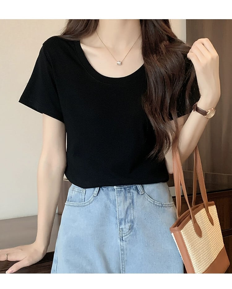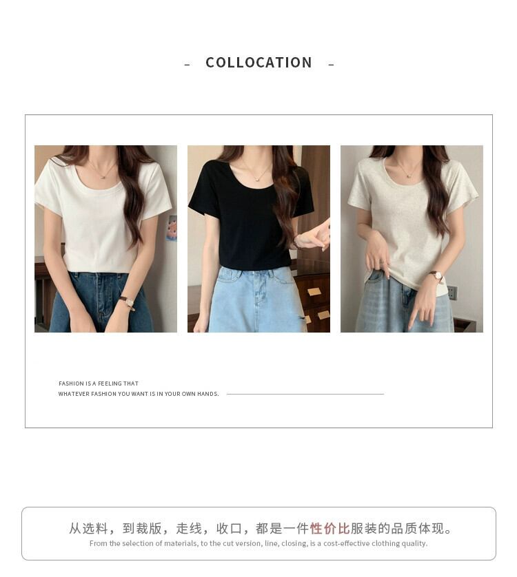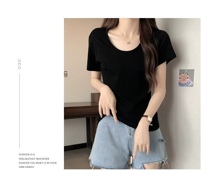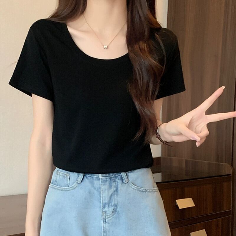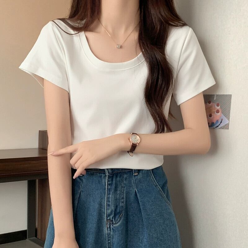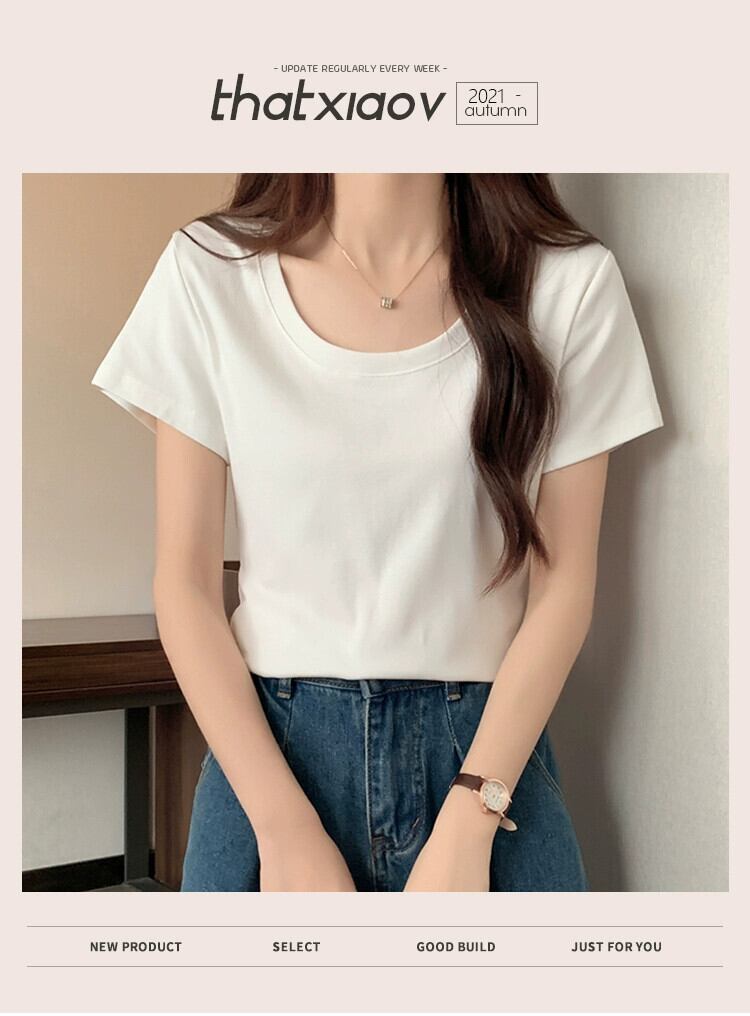 グレー右肩半袖 Tシャツ女性 2024 夏の新作スリムでファッショナブルで超見栄えの良いラウンドネックショートトップ サマー 夏物 Oネック 7460085567926833 | framboise21