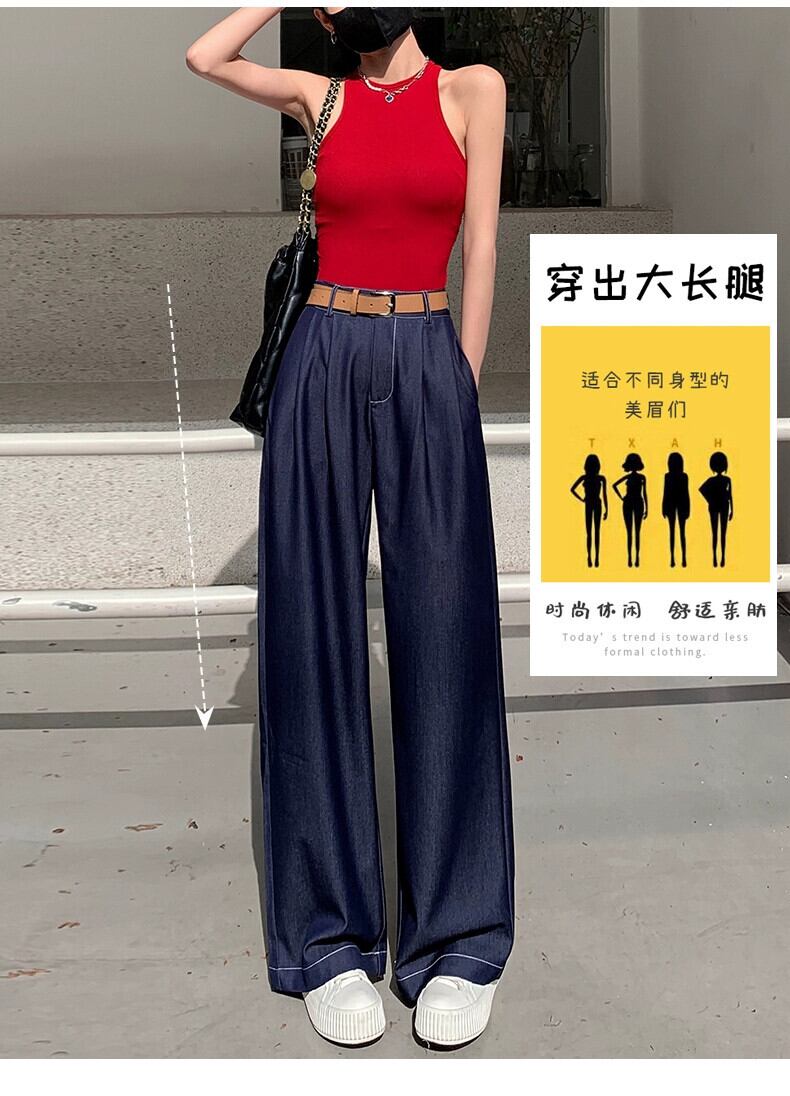 レトロ リヨセル テンセル ジーンズ レディース 夏 細いウエスト ドレープ ルーズ スリム ストレート 床拭き ワイドレッグ パンツ サマー 夏物 ワイドパンツ 7460093389264202 | framboise21