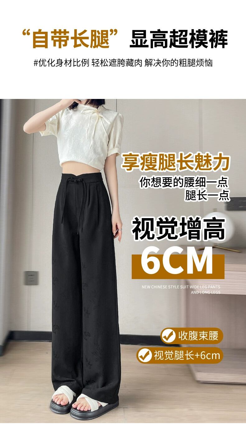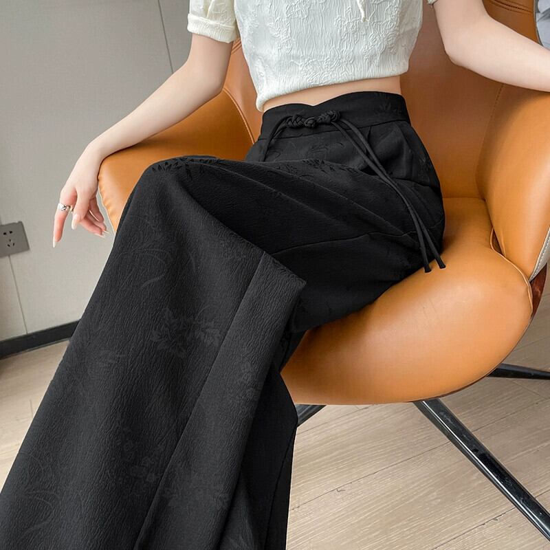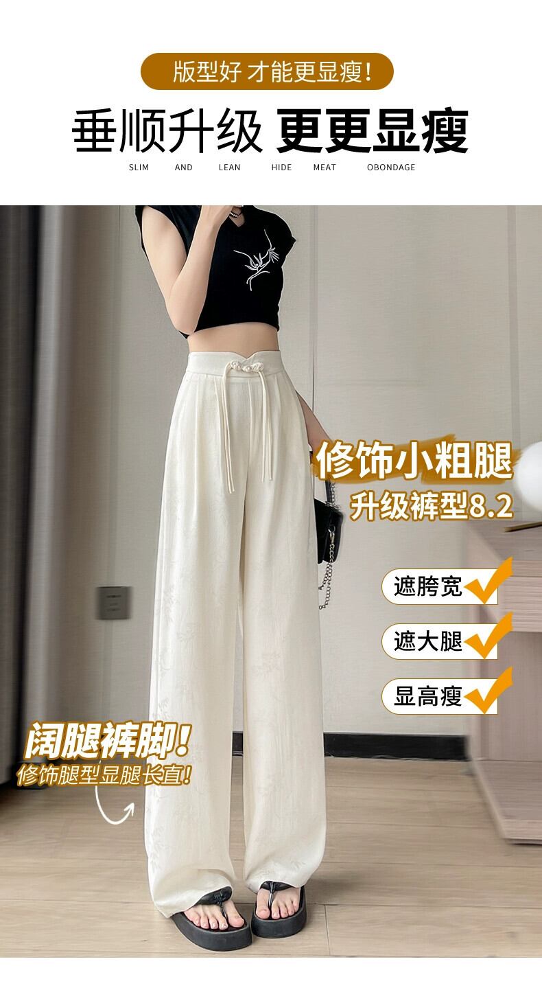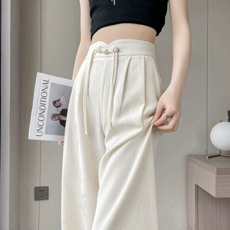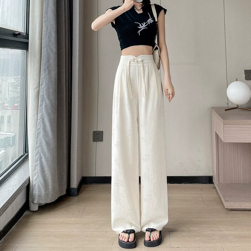 オフホワイトのジャカードサテンワイドレッグパンツ女性の夏の新しい中国風ライト国民風パンツストレートルーズカジュアルフロアモップパンツ サマー 夏物 7460052949809823 | framboise21
