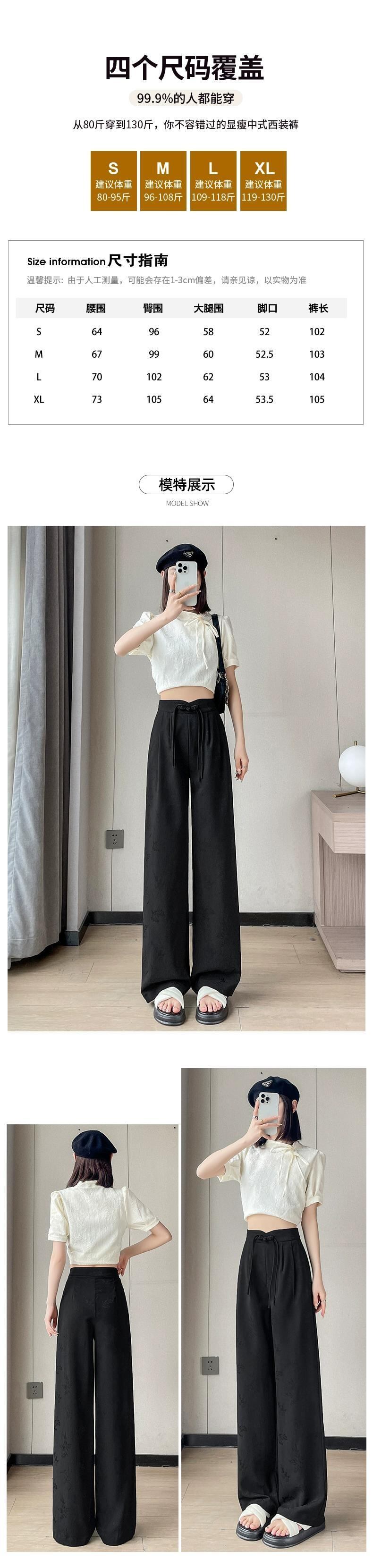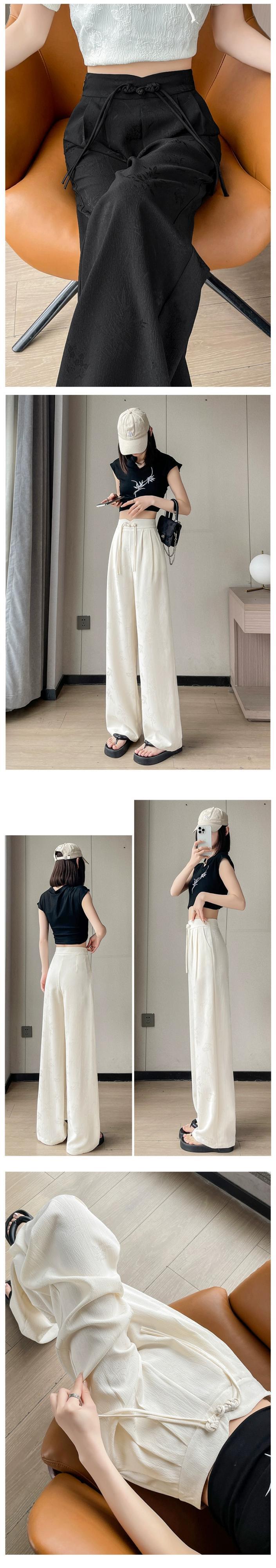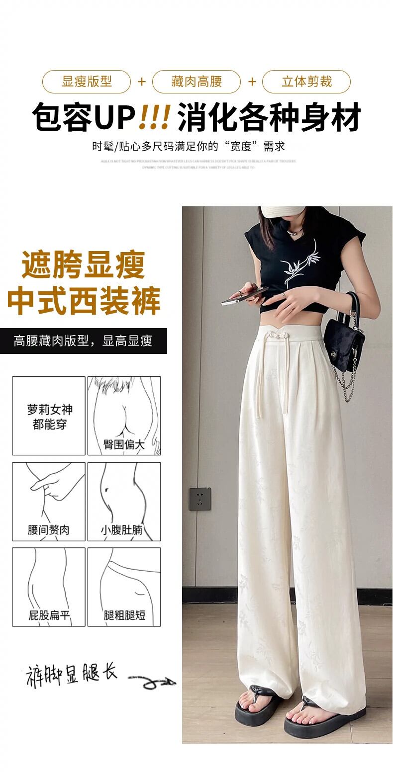 オフホワイトのジャカードサテンワイドレッグパンツ女性の夏の新しい中国風ライト国民風パンツストレートルーズカジュアルフロアモップパンツ サマー 夏物 7460052949809823 | framboise21