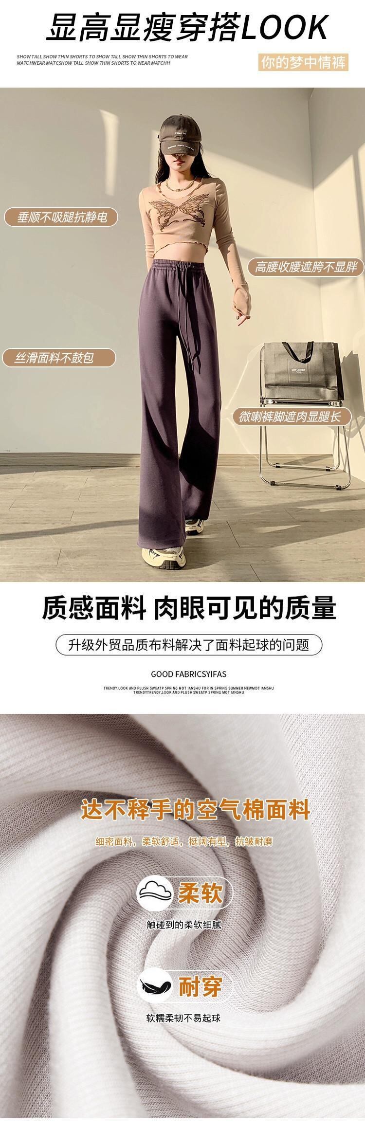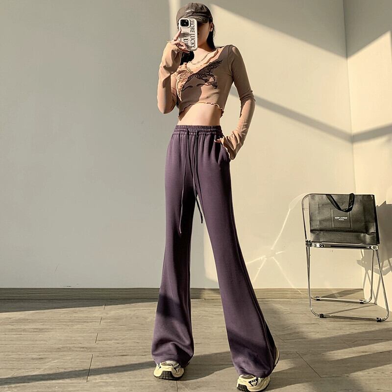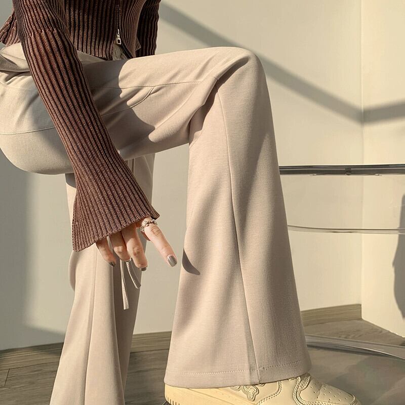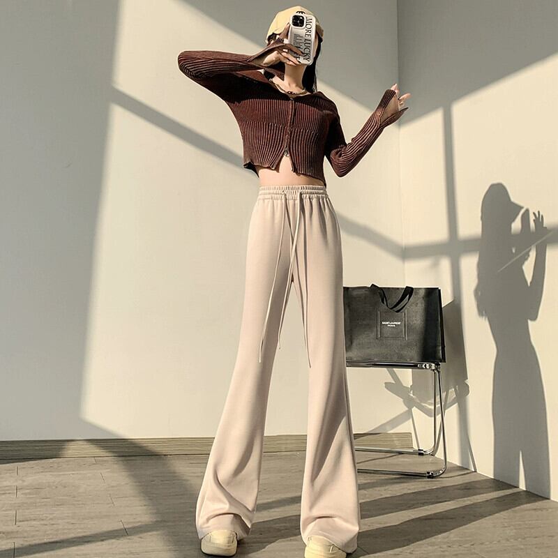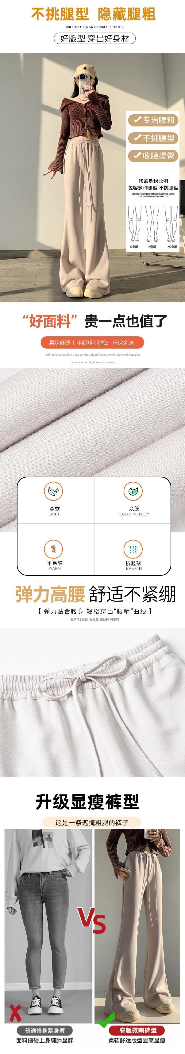 細身のワイドレッグパンツの女性、2024年春と秋の新しいハイウエストフレアパンツ、ドレープのあるフロアレングスのストレートカジュアルパンツ女性 レッド スプリング 春物 オータム 秋物 7460068314261163 | framboise21