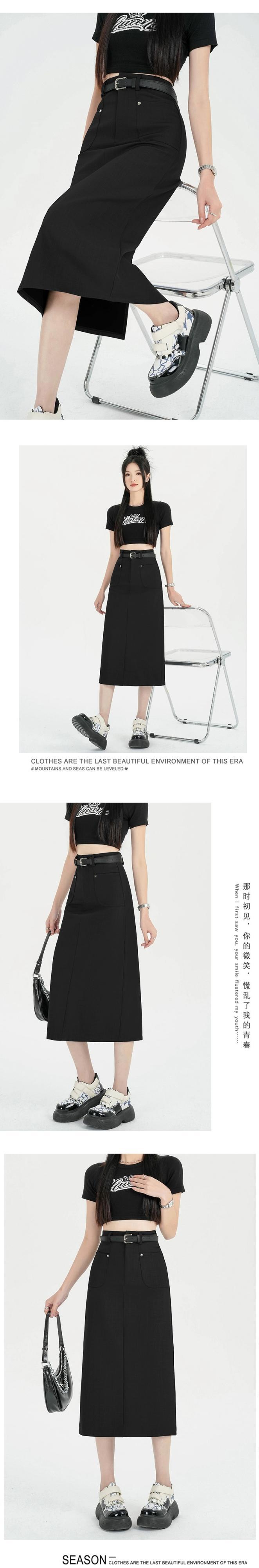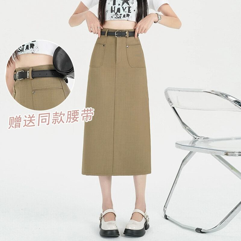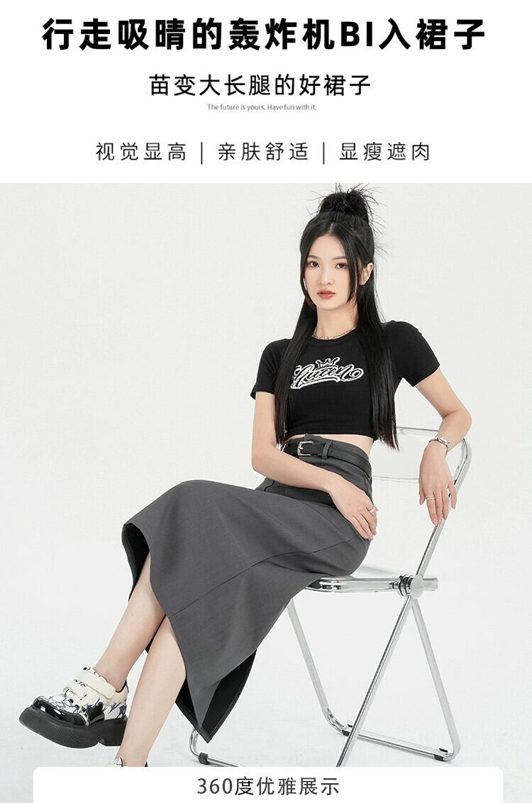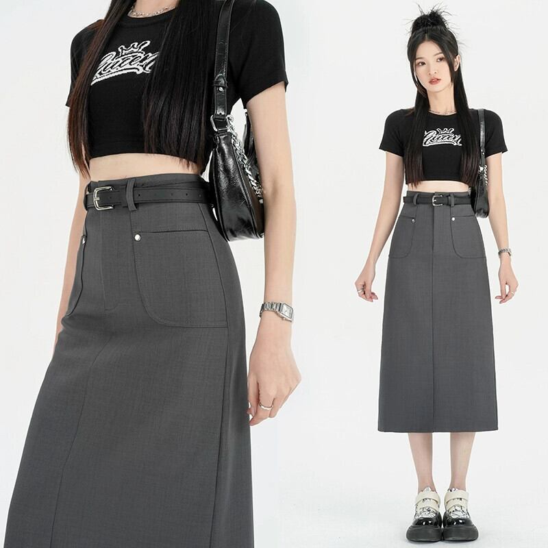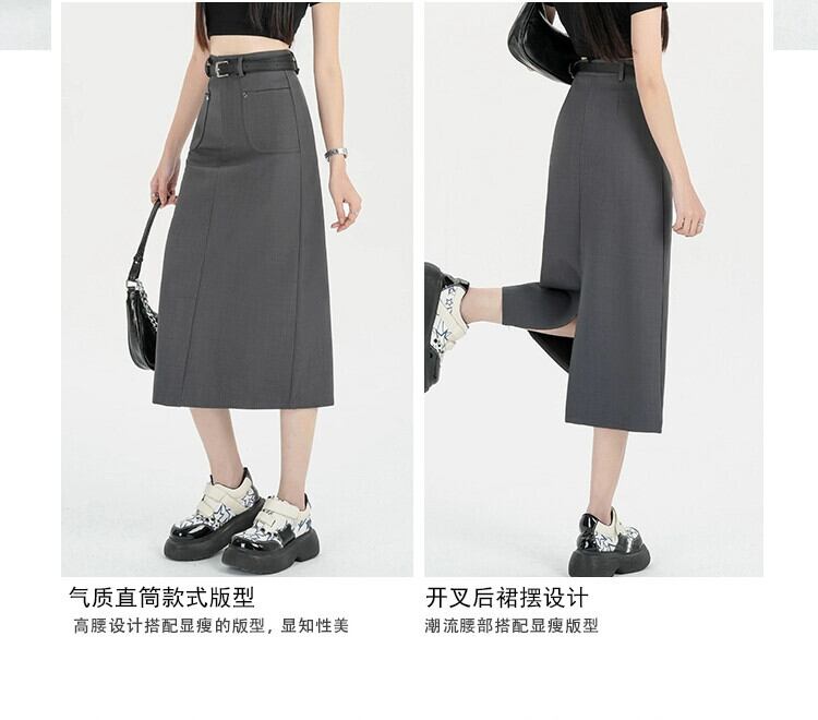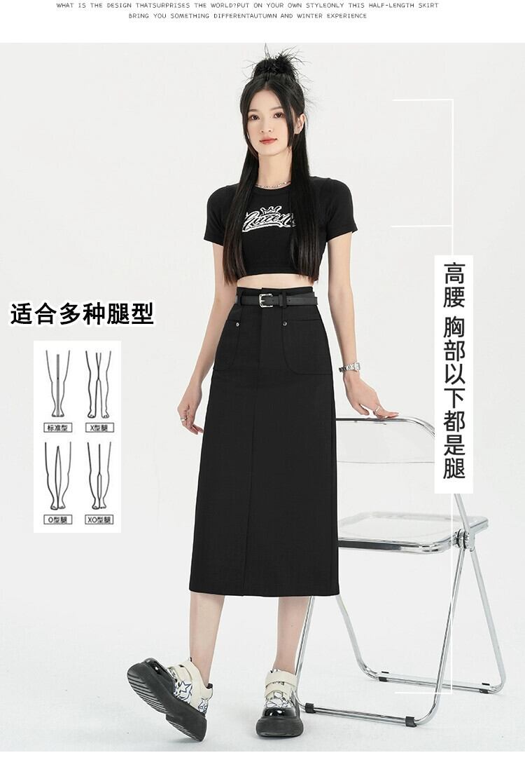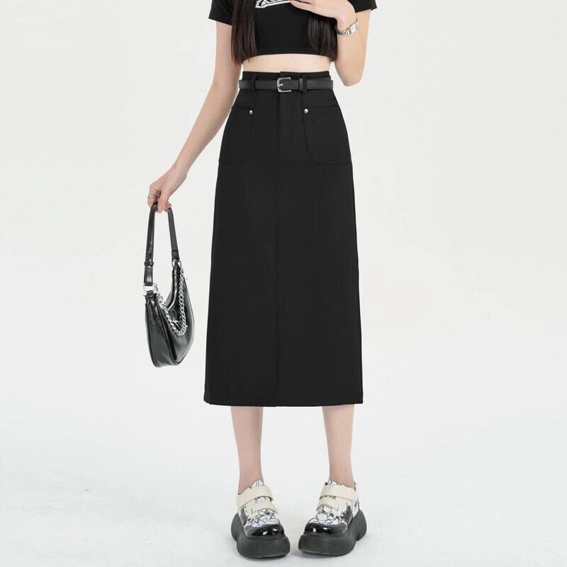 黒のハイウエストスーツスカート女性 2024 新しい夏のヒップカバーと痩身ミッドレングスストレートスリットヒップカバースカート ブラック サマー 夏物 7460023989661160 | framboise21