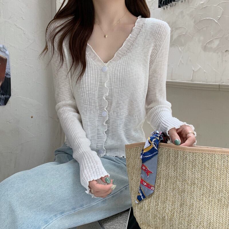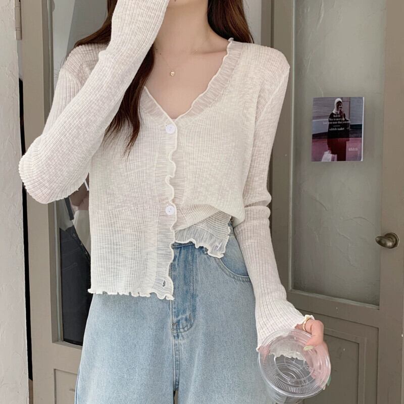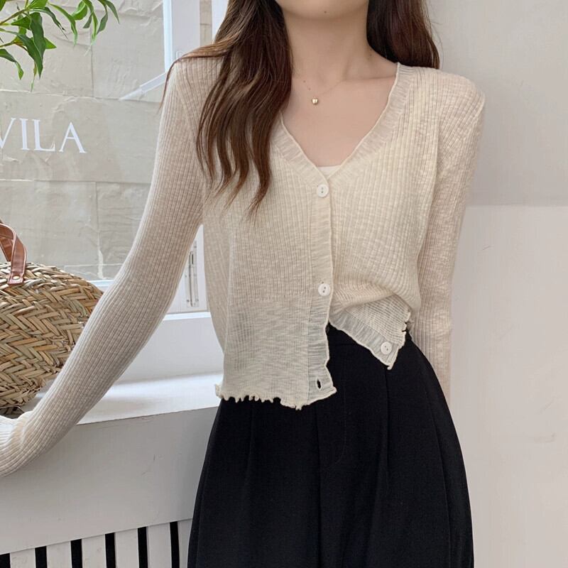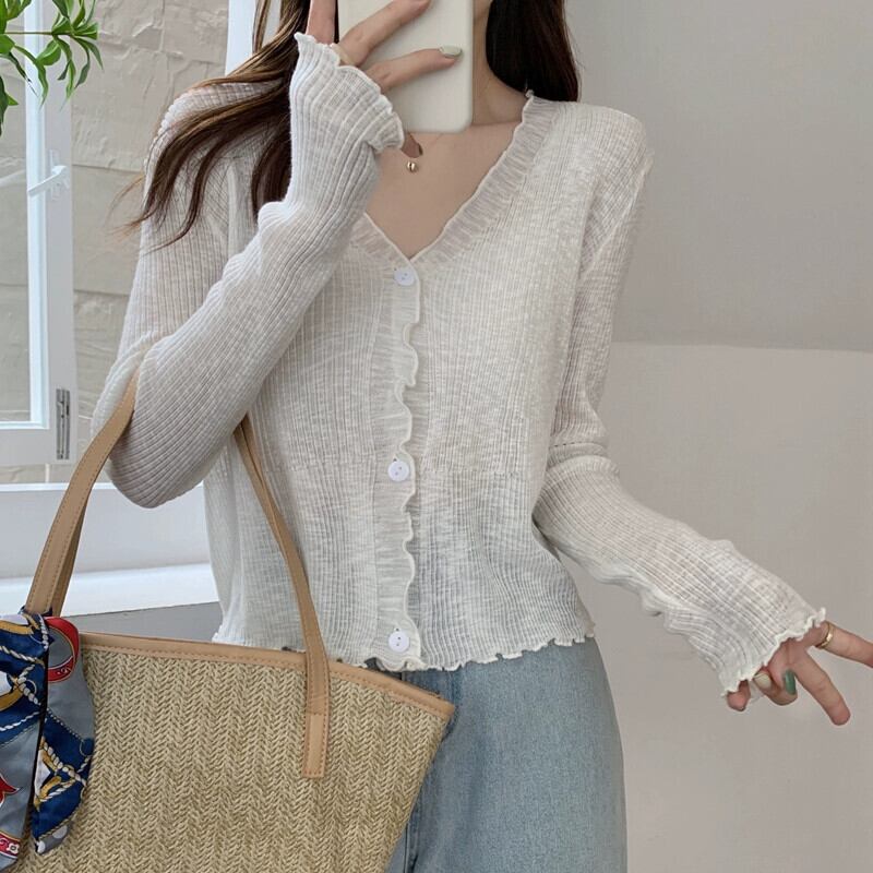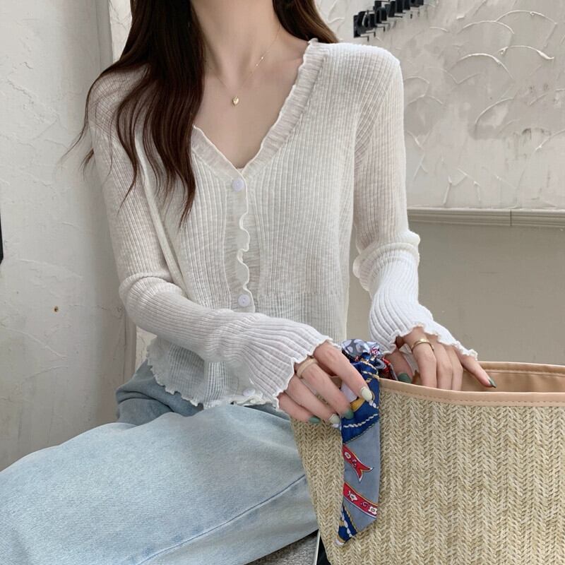 薄手のニットカーディガンジャケットの女性、夏のデザイン、エアコン、海辺の日焼け止めシャツ、ショートシースルートップ、トレンディ サマー 夏物 7460022542340007 | framboise21