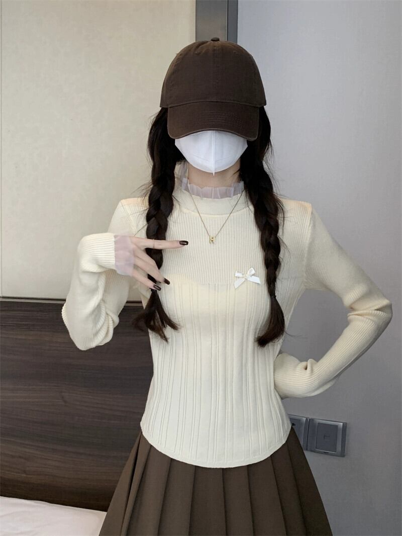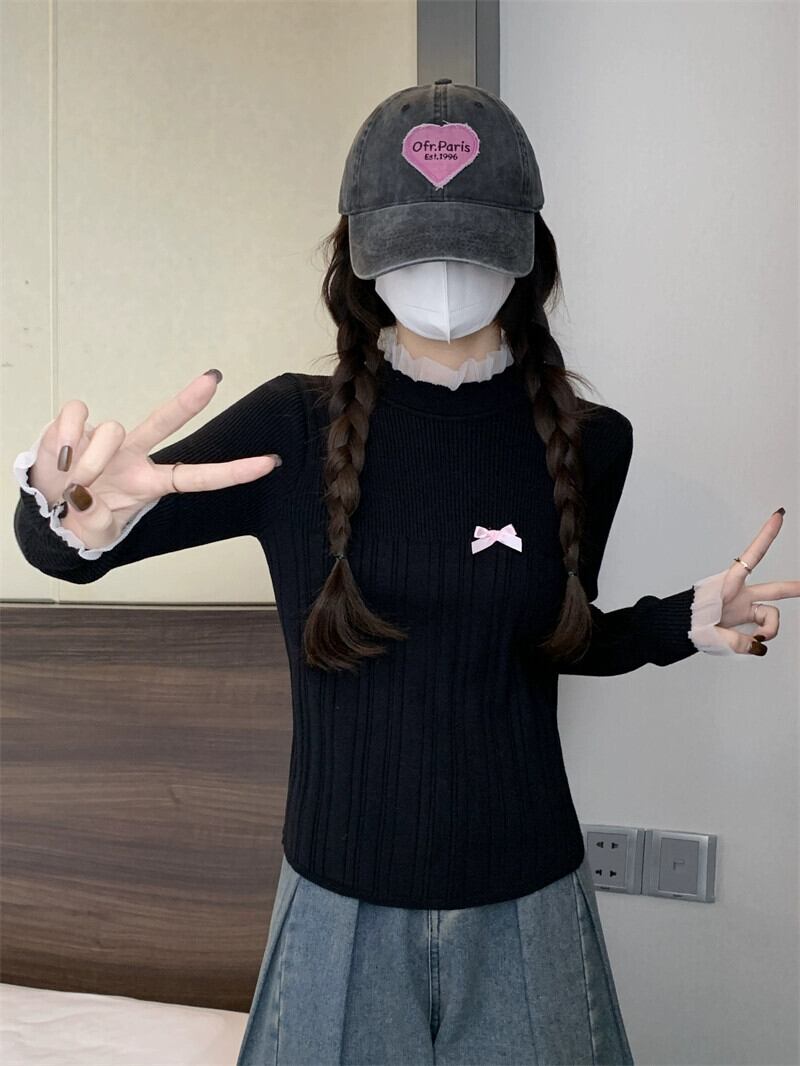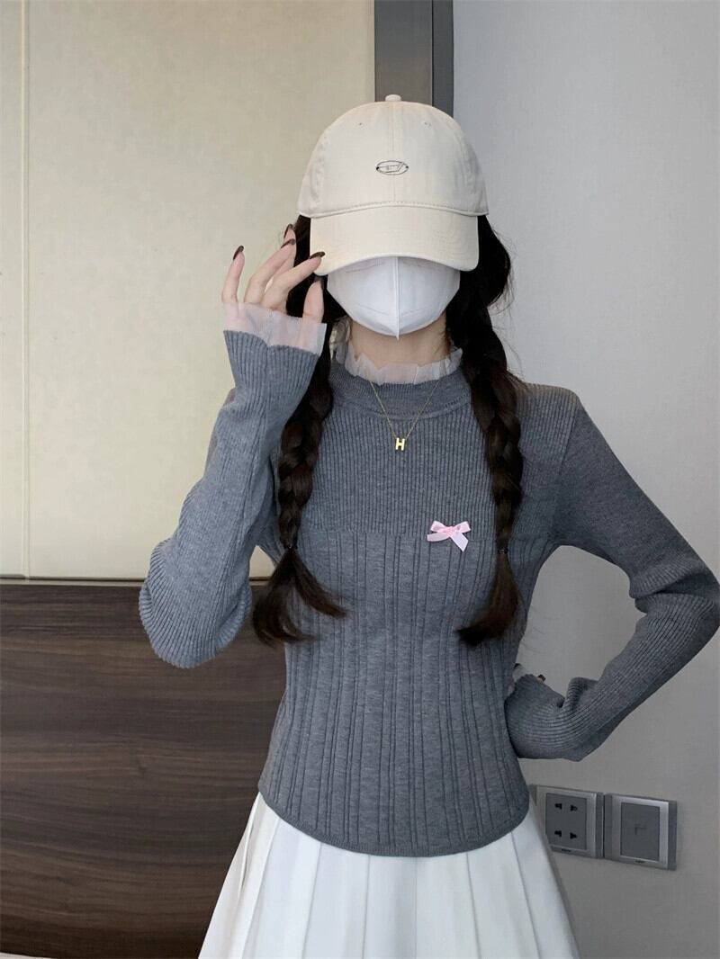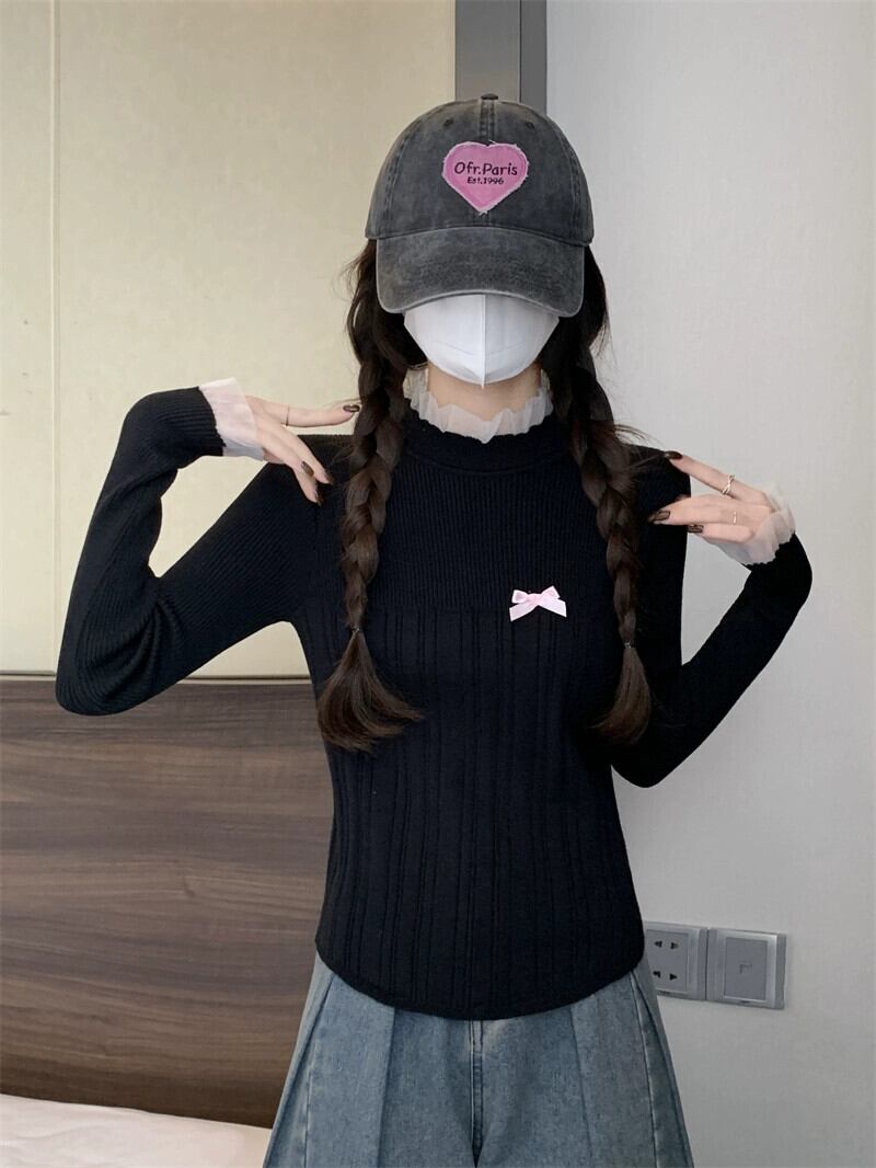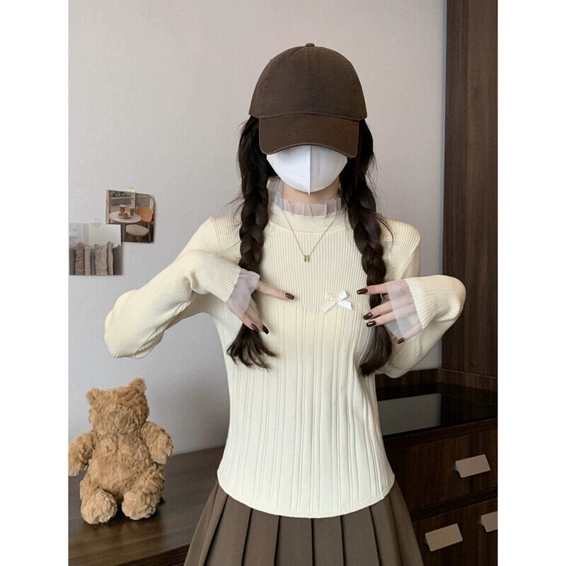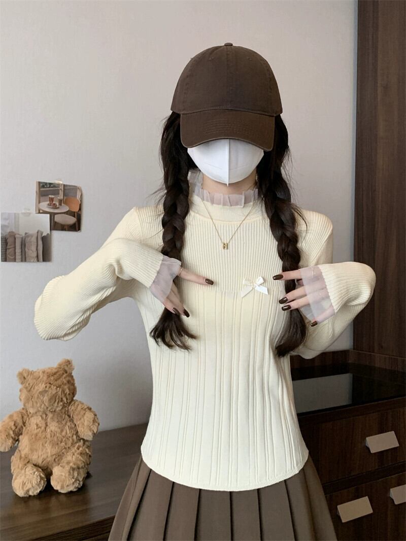 レースハーフタートルネックボトミングセーター女性春と秋 2024 新デザインスリムフィットインナーウェアミッドカラーセーター スプリング 春物 オータム 秋物 7460087314209834 | framboise21