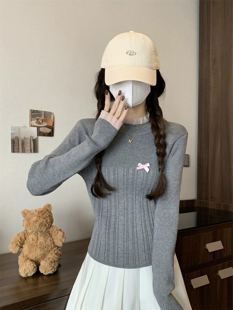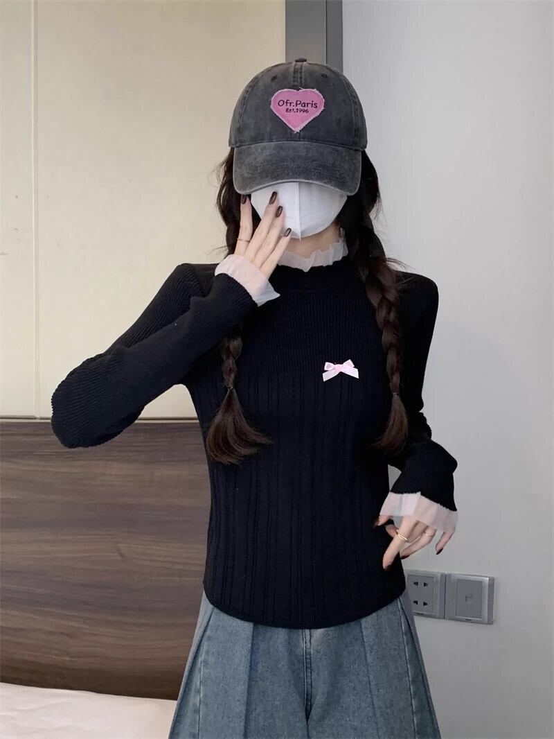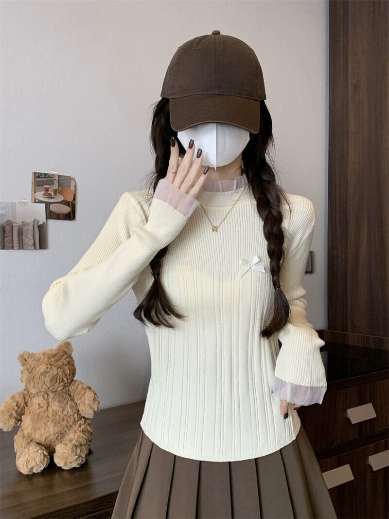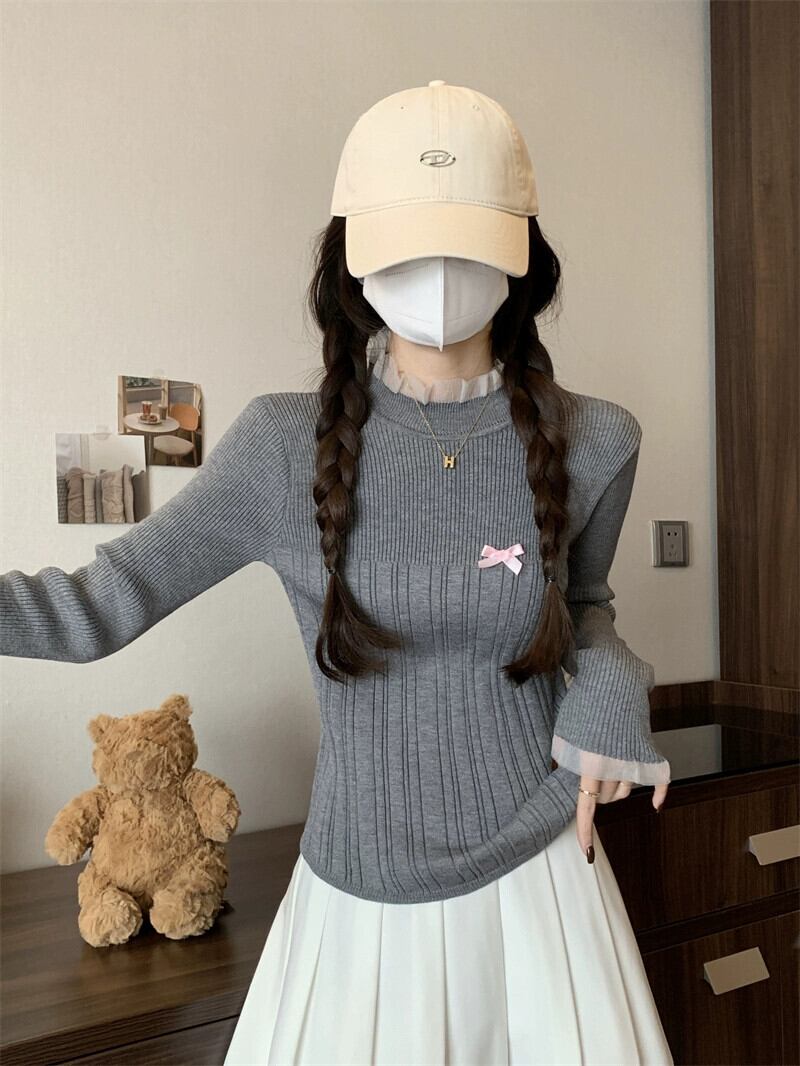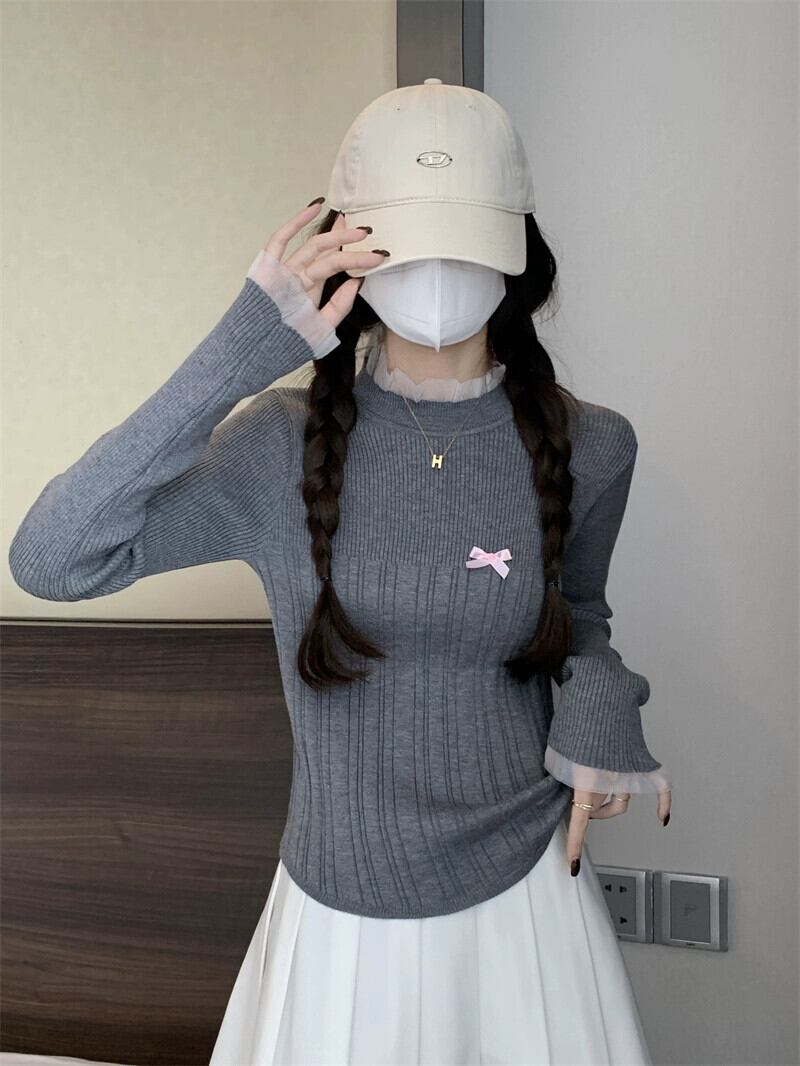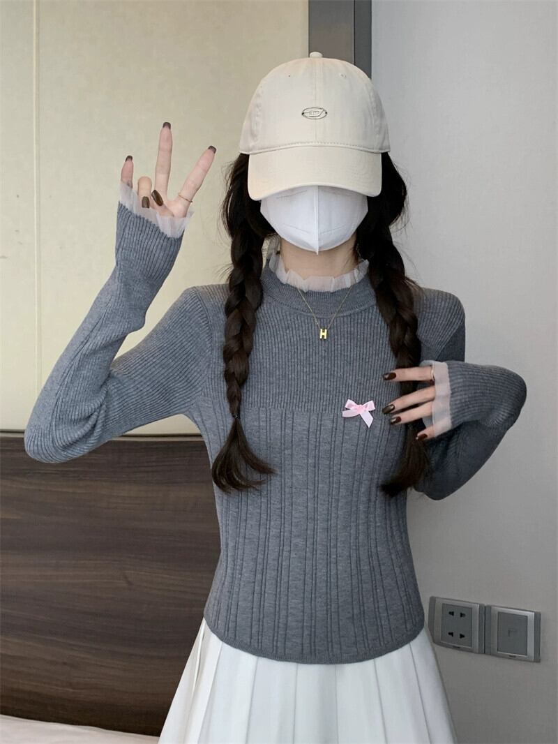 レースハーフタートルネックボトミングセーター女性春と秋 2024 新デザインスリムフィットインナーウェアミッドカラーセーター スプリング 春物 オータム 秋物 7460087314209834 | framboise21