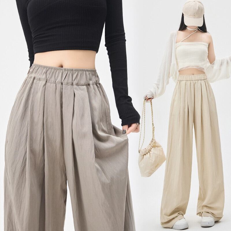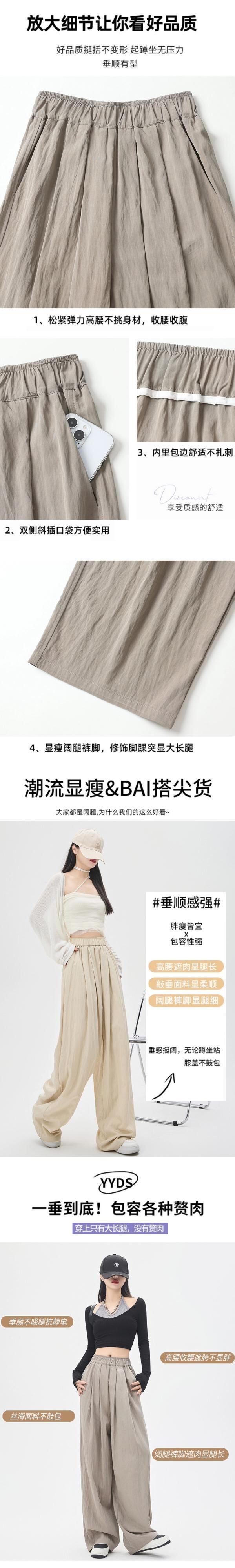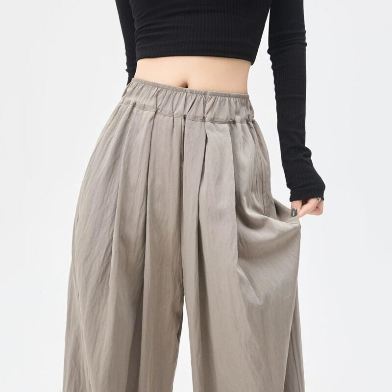 カーキプリーツテクスチャードワイドレッグパンツレディース、春と秋のハイウエスト、ルーズ、スリム、フロアレングスストレートカジュアルパンツ レッド スプリング 春物 オータム 秋物 746008361848676 | framboise21