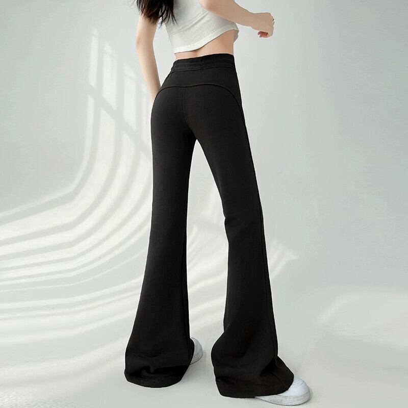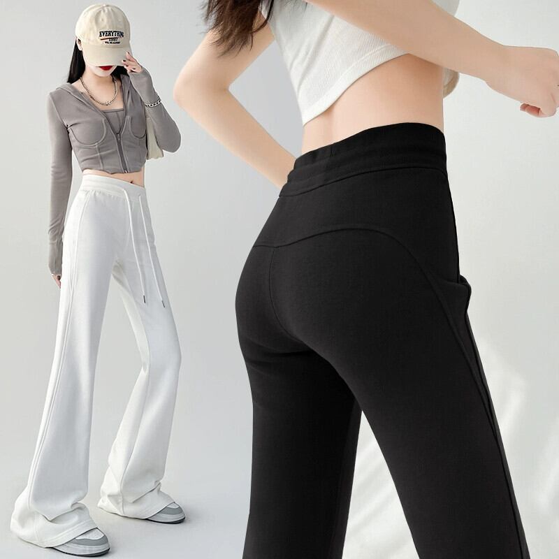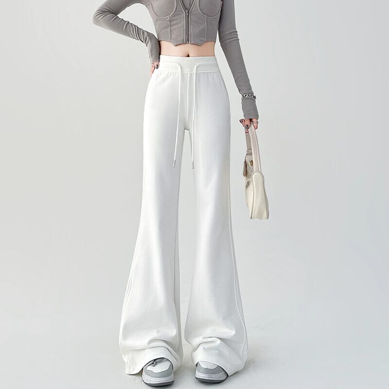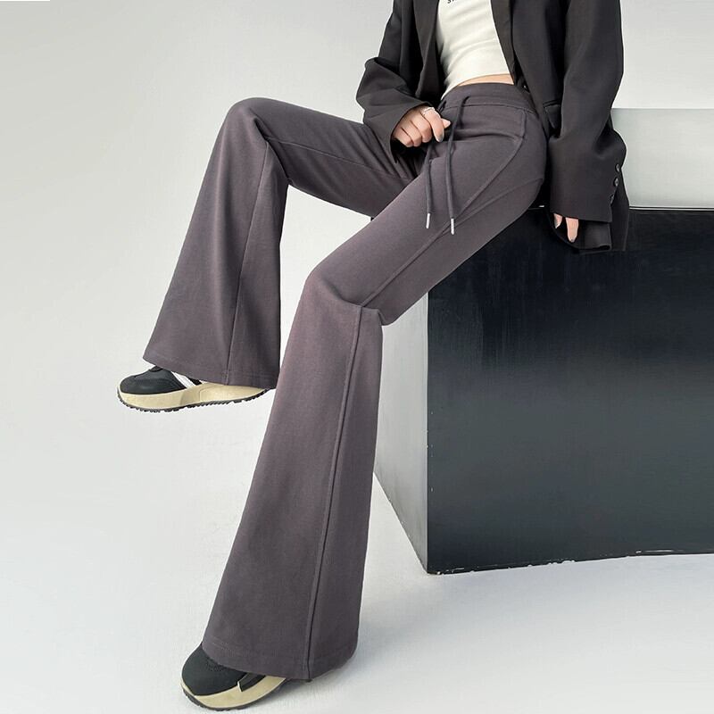 アメリカングレーのマイクロフレアパンツレディース、春と秋のストレートレッグスウェットパンツ、ハイウエスト、スリムでドレープ、ワイドレッグ、フロアレングスカジュアルパンツレディース スプリング 春物 オータム 秋物 7460013902189504 | framboise21